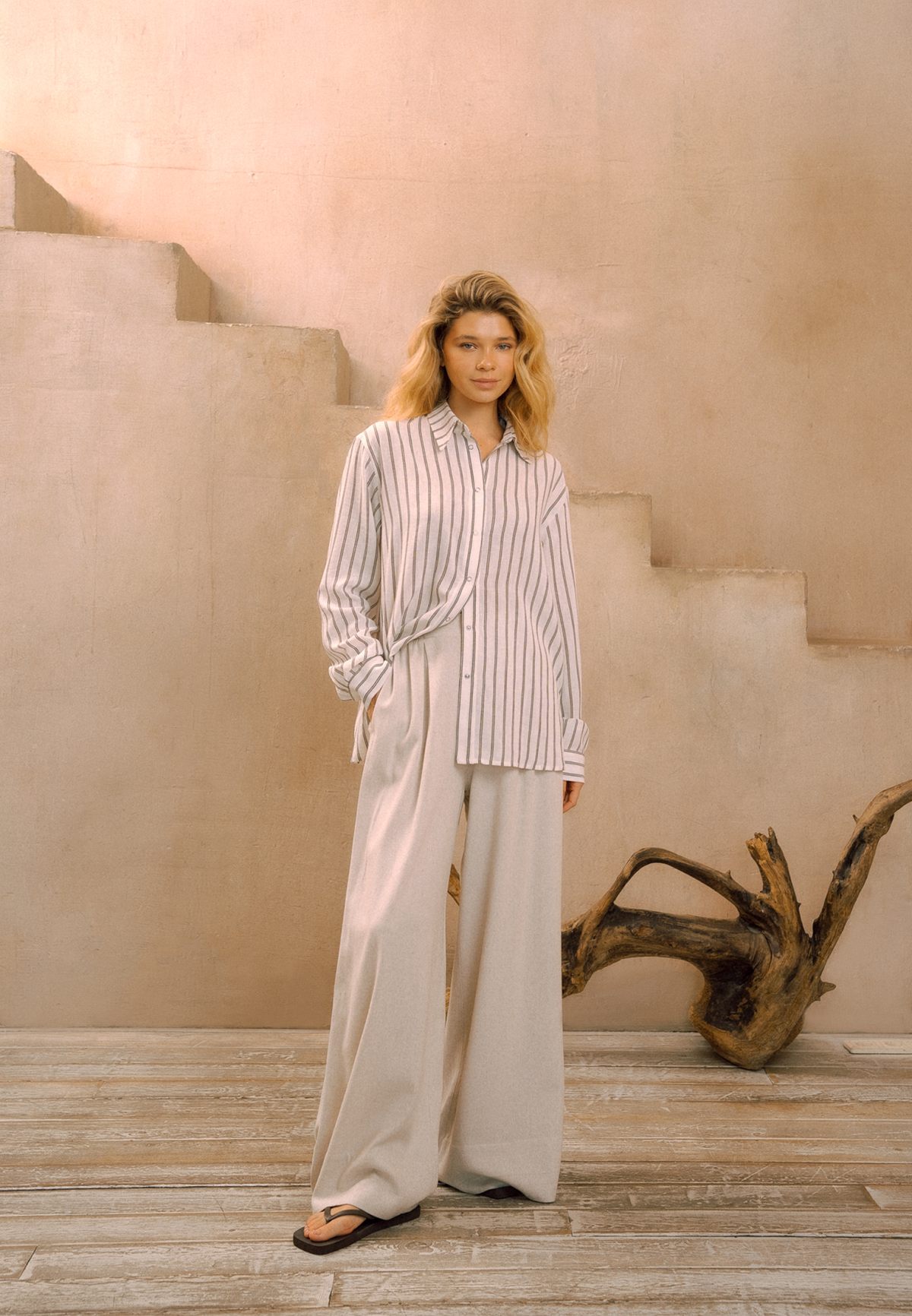 Softwear SS25 – это побег из урбанистической суеты в бесконечное лето: свободные рубашки, струящиеся кимоно и брюки с мягкими складками словно созданы для того, чтобы, сбросив пиджак, сразу окунуться в тепло морского бриза или шелест полевых трав. Наша льняная капсула вдохновлена духом путешествий и теплым марокканским летом.