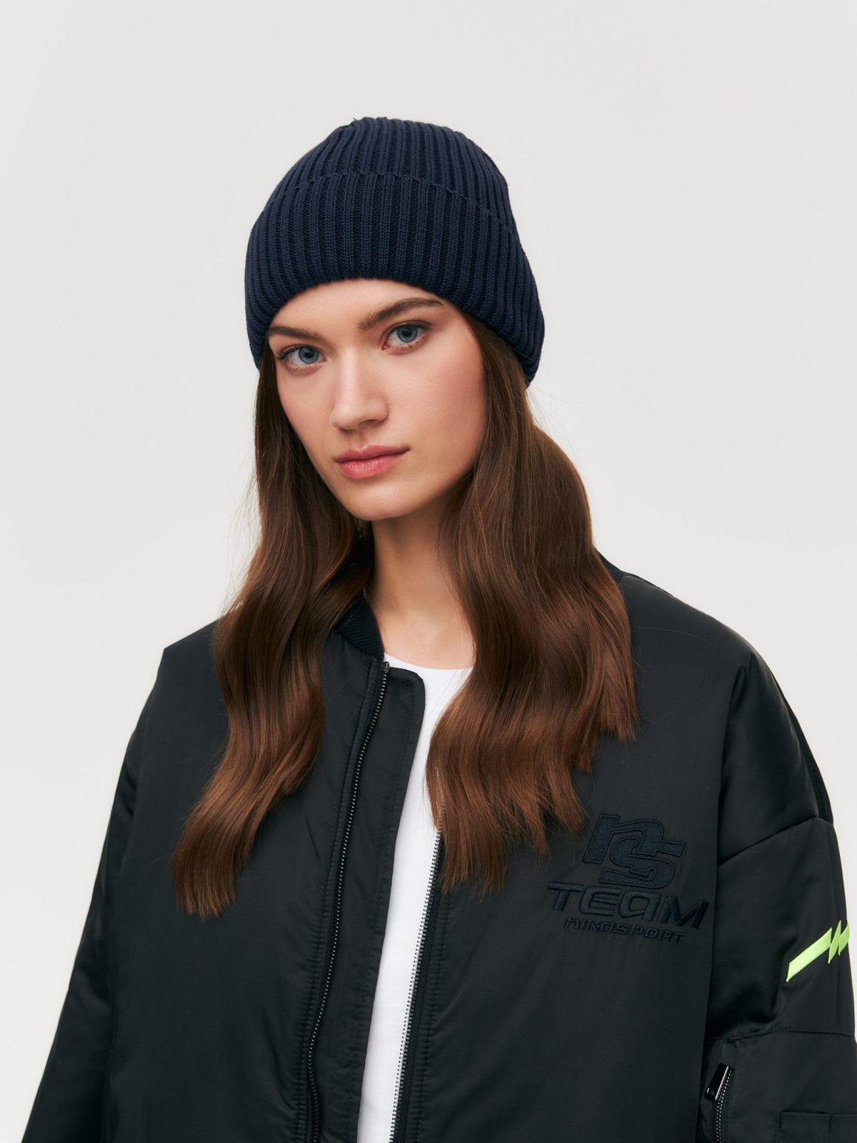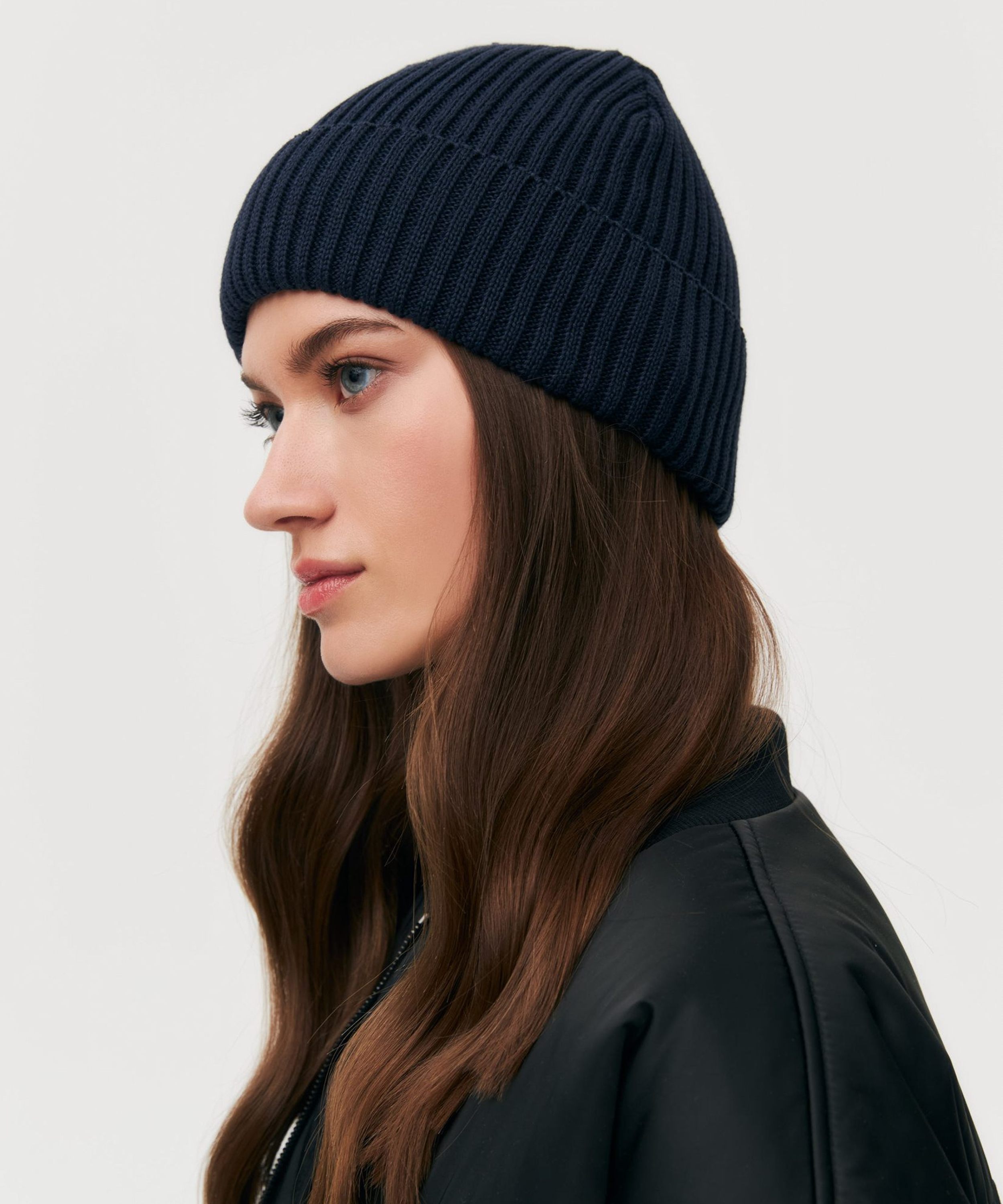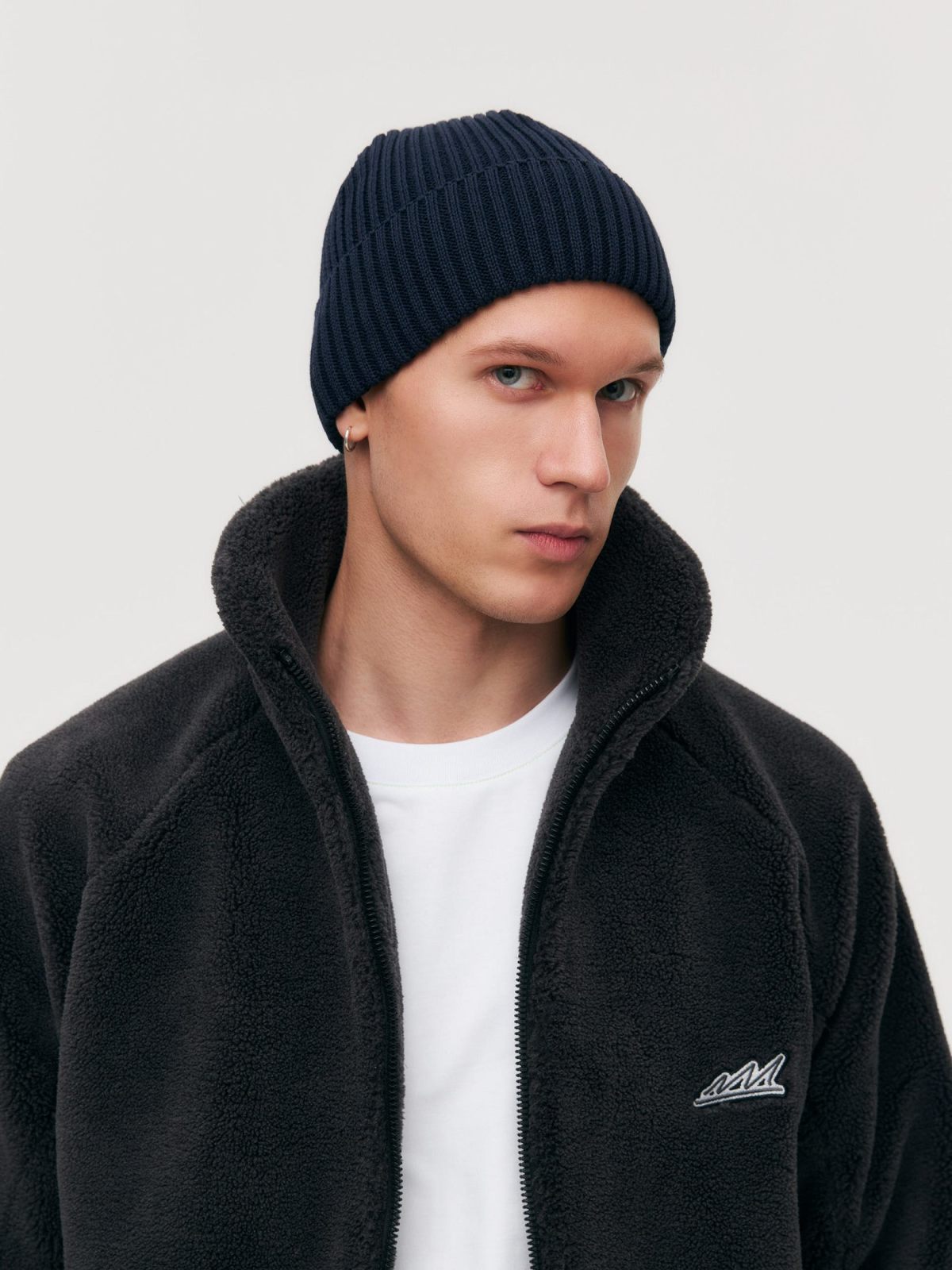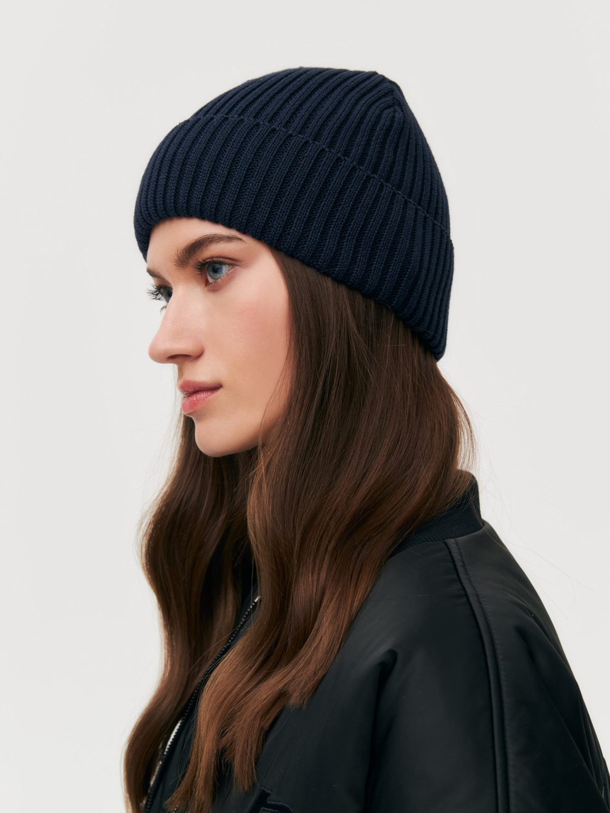 Классическая шапка с подворотом, при посадке полностью повторяет форму головы. Состав: 50% хлопок 50% акрил. Шапка представлена в двух цветах: темно-синий и черный.