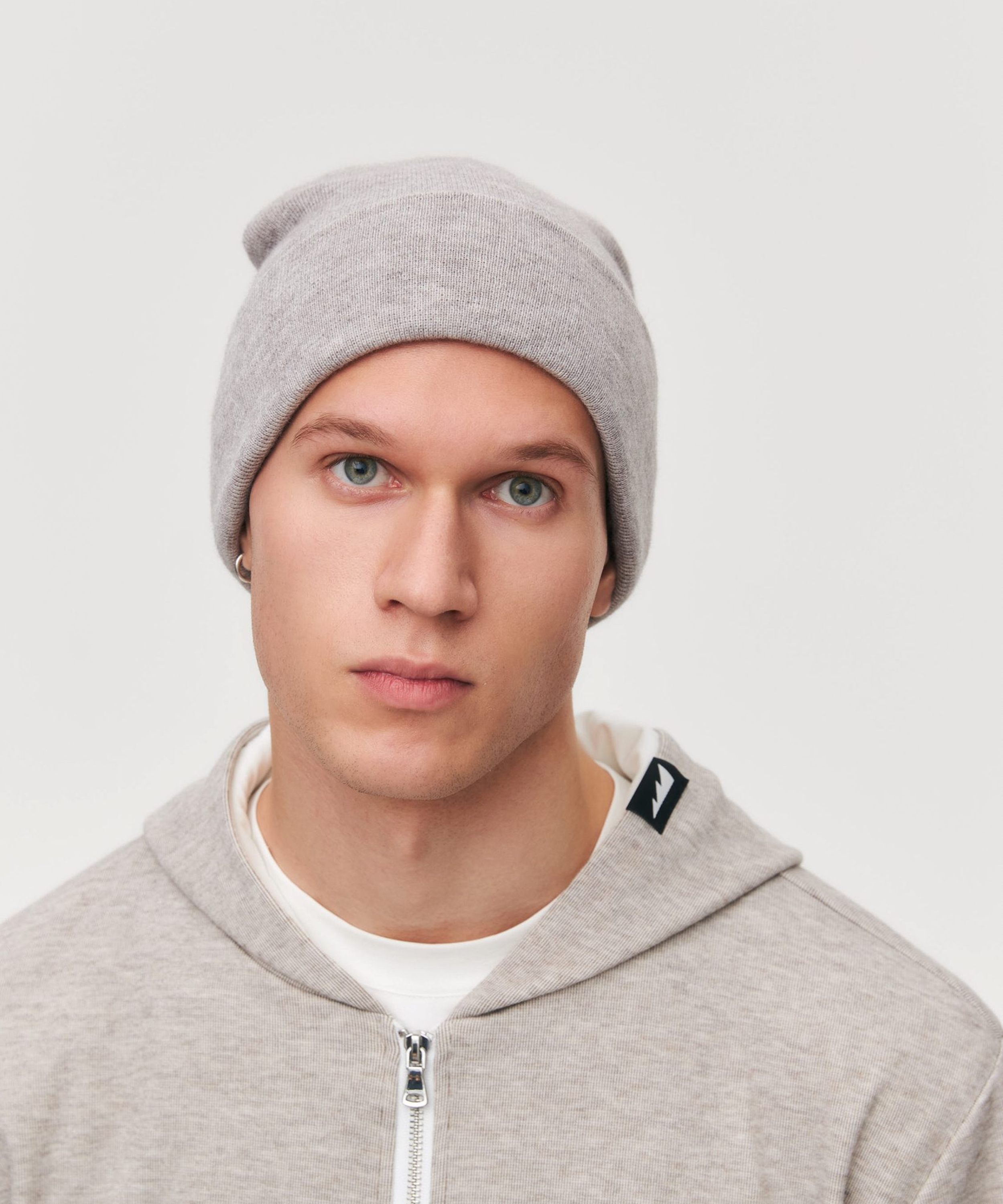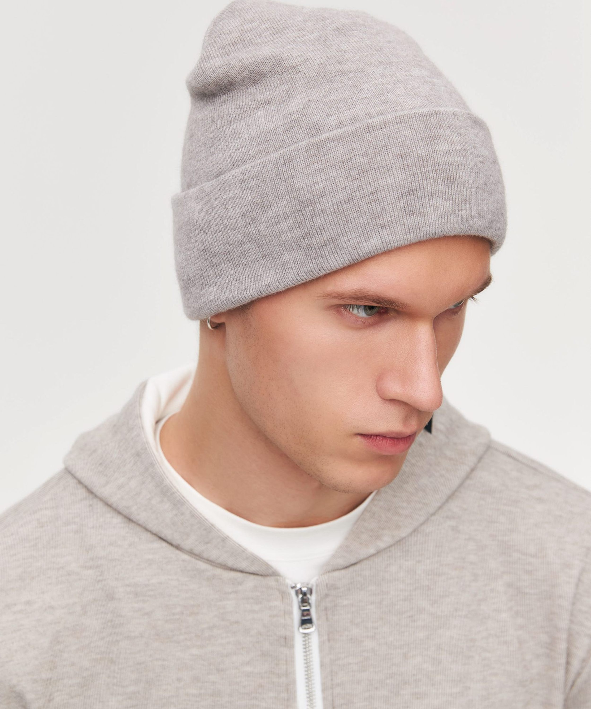 Удлиненная шапка с подворотом. Состав: 50% хлопок 50% акрил. Шапка представлена в трех цветах: черный, темно-синий и бежевый.