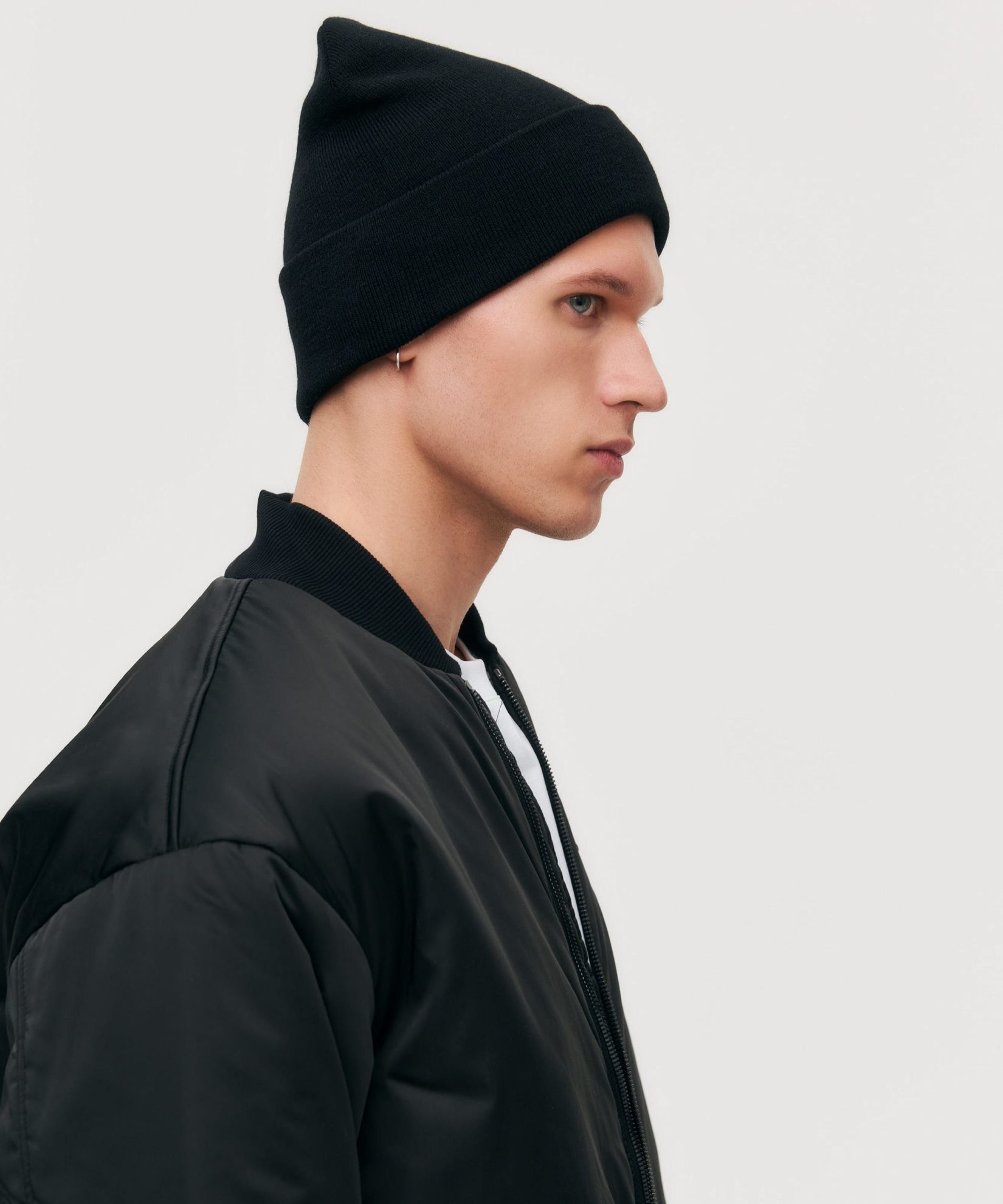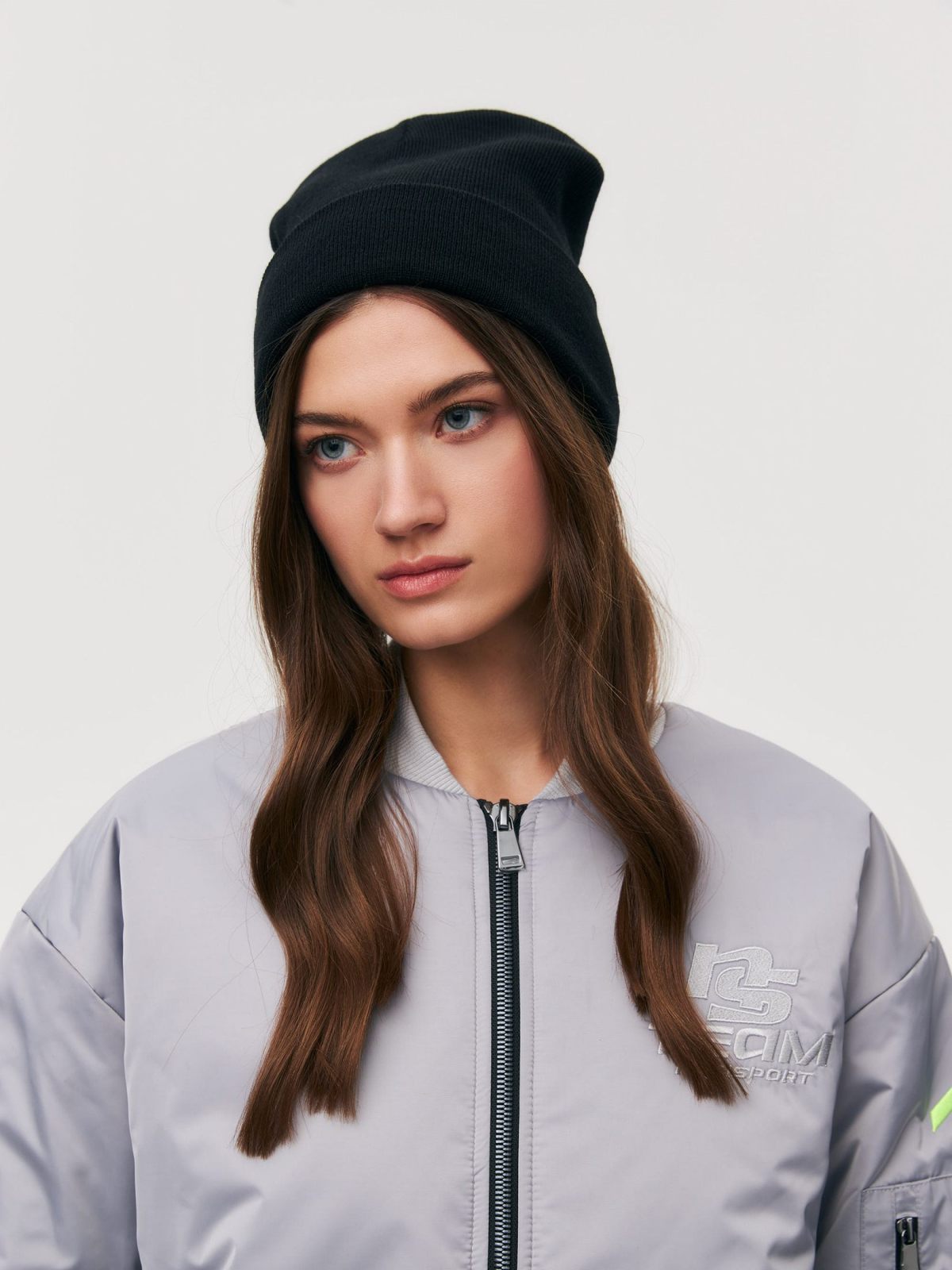 Удлиненная шапка с подворотом. Состав: 50% хлопок 50% акрил. Шапка представлена в трех цветах: черный, темно-синий и бежевый.