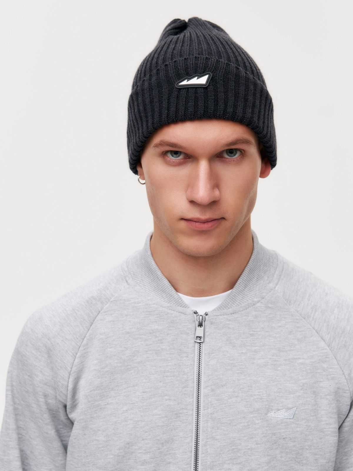 Классическая удлиненная шапка с подворотом. Состав:30% шерсть, 70% акрил. Фирменная деталь - силиконовый патч с логотипом бренда. Шапка представлена в четырех цветах: голубой, красный, бежевый и графит.