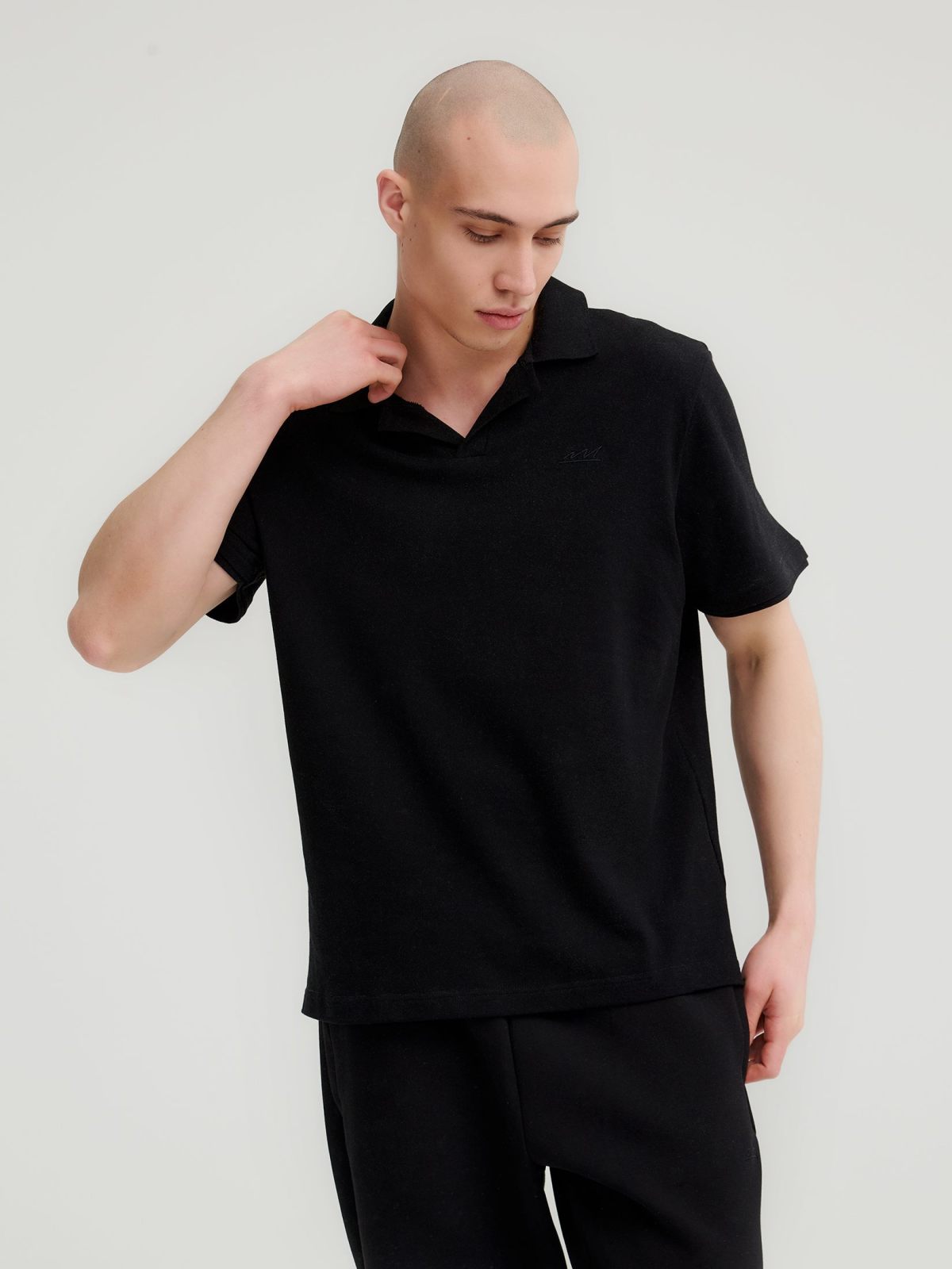 Мужское классическое поло прямого кроя в спортивном стиле с V-вырезом выполнено из материала, в составе которого 95% хлопка и 5% эластана, что обеспечивает отличную посадку и долговечность изделия. На груди расположена лаконичная вышивка с логотипом бренда. Поло представлено в двух классических цветах: черный и серый меланж. Поло отлично сочетается как со спортивными вещами, так и с классическими брюками и пиджаками.