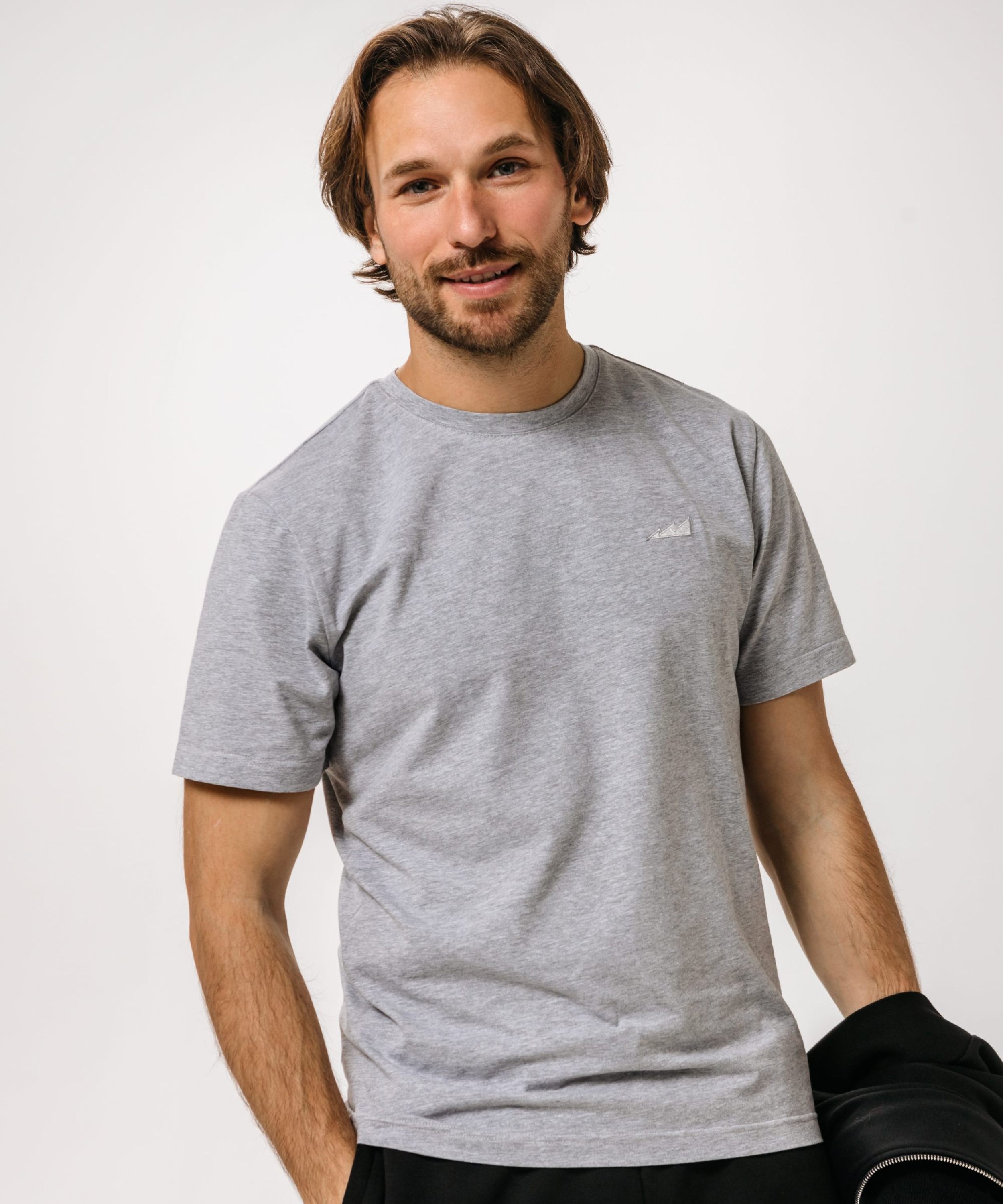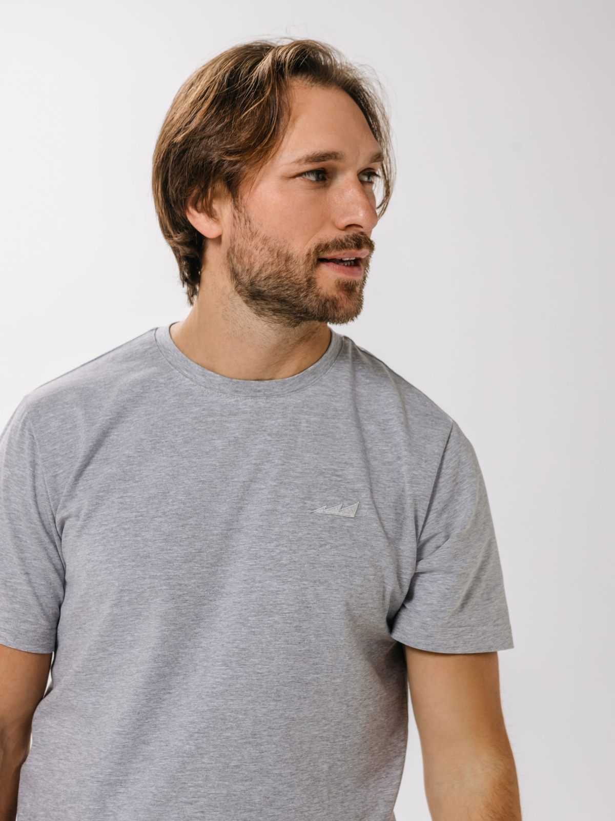 Мужская футболка классического силуэта Regular. Выполнена из материала, в составе которого 90% хлопка и 10% эластана, за счет чего футболка лучше держит форму. На груди расположена стильная вышивка-логотип. Модель представлена в 3 цветах - базовый белый, темно-синий и серый меланж. Легко сочетается как со спортивной так и с повседневной одеждой как база для ваших образов.