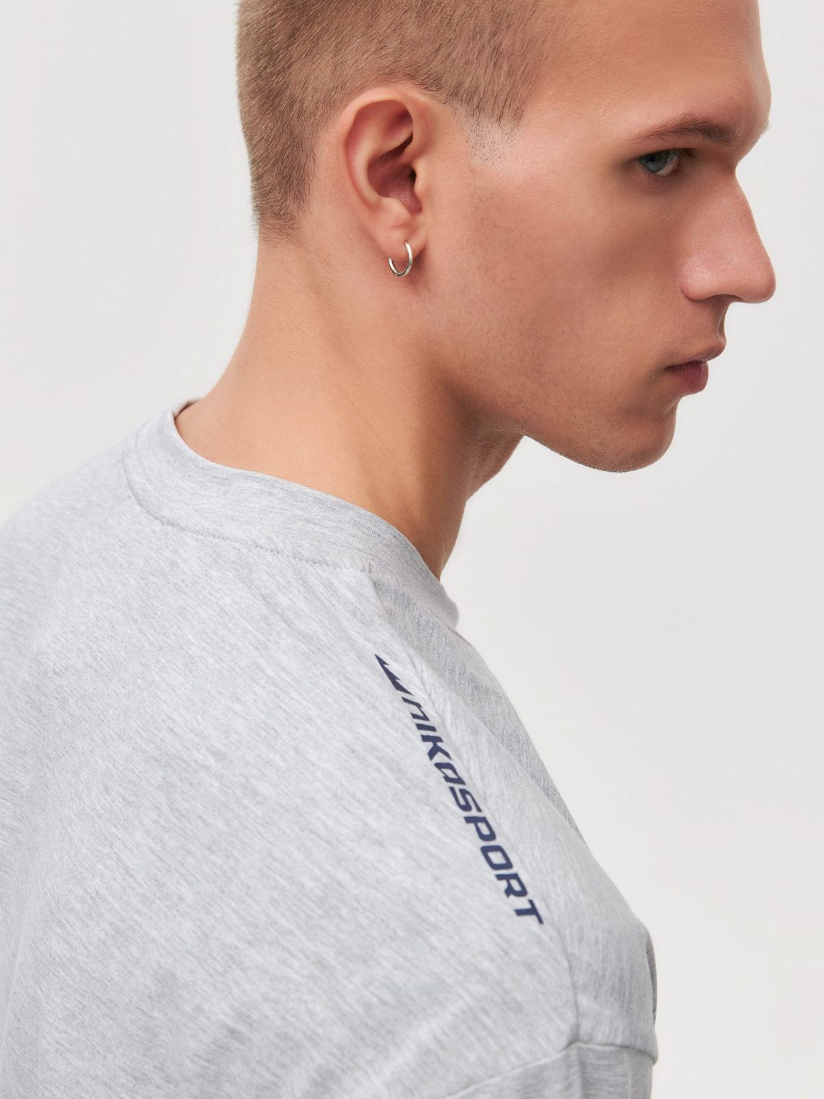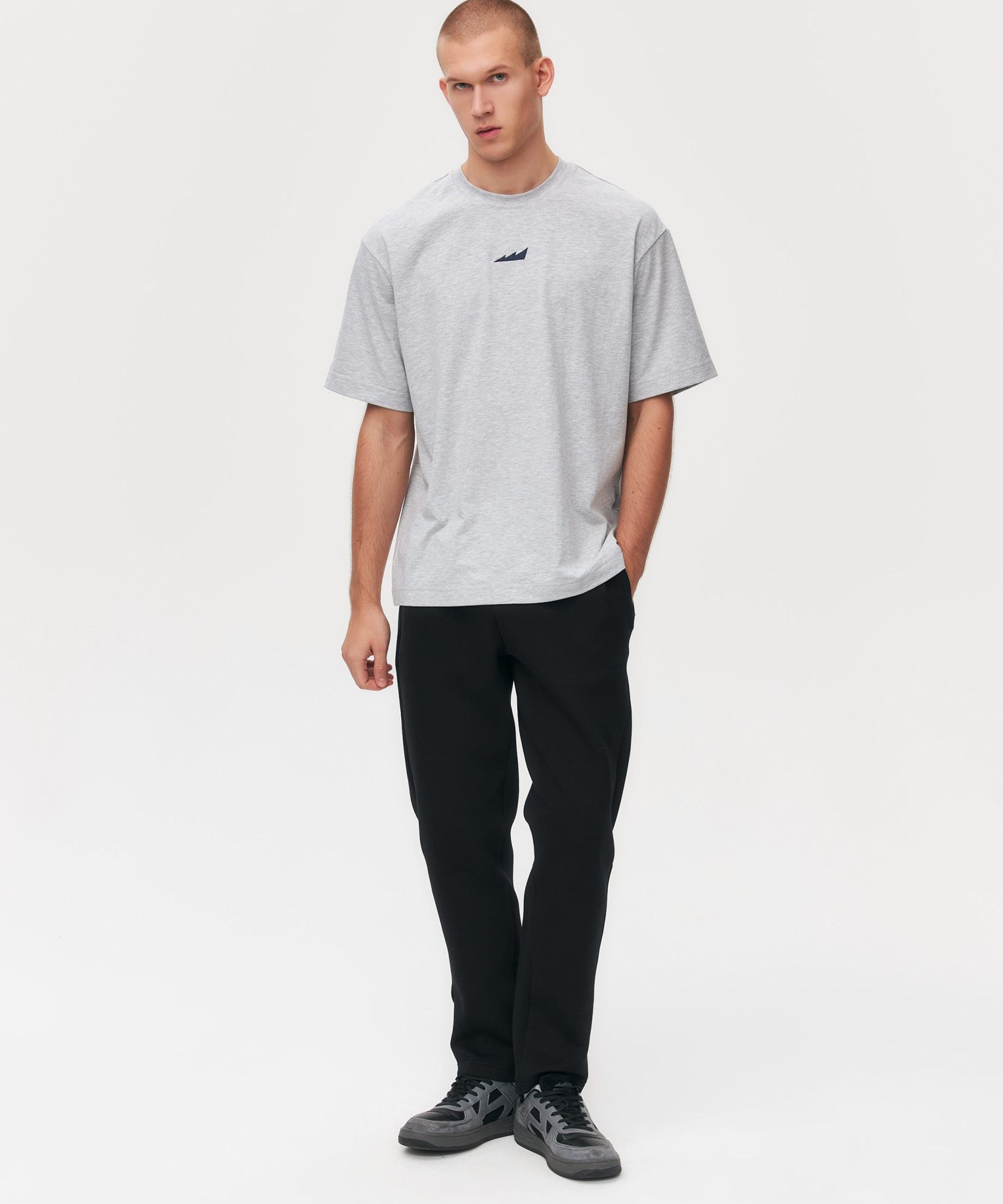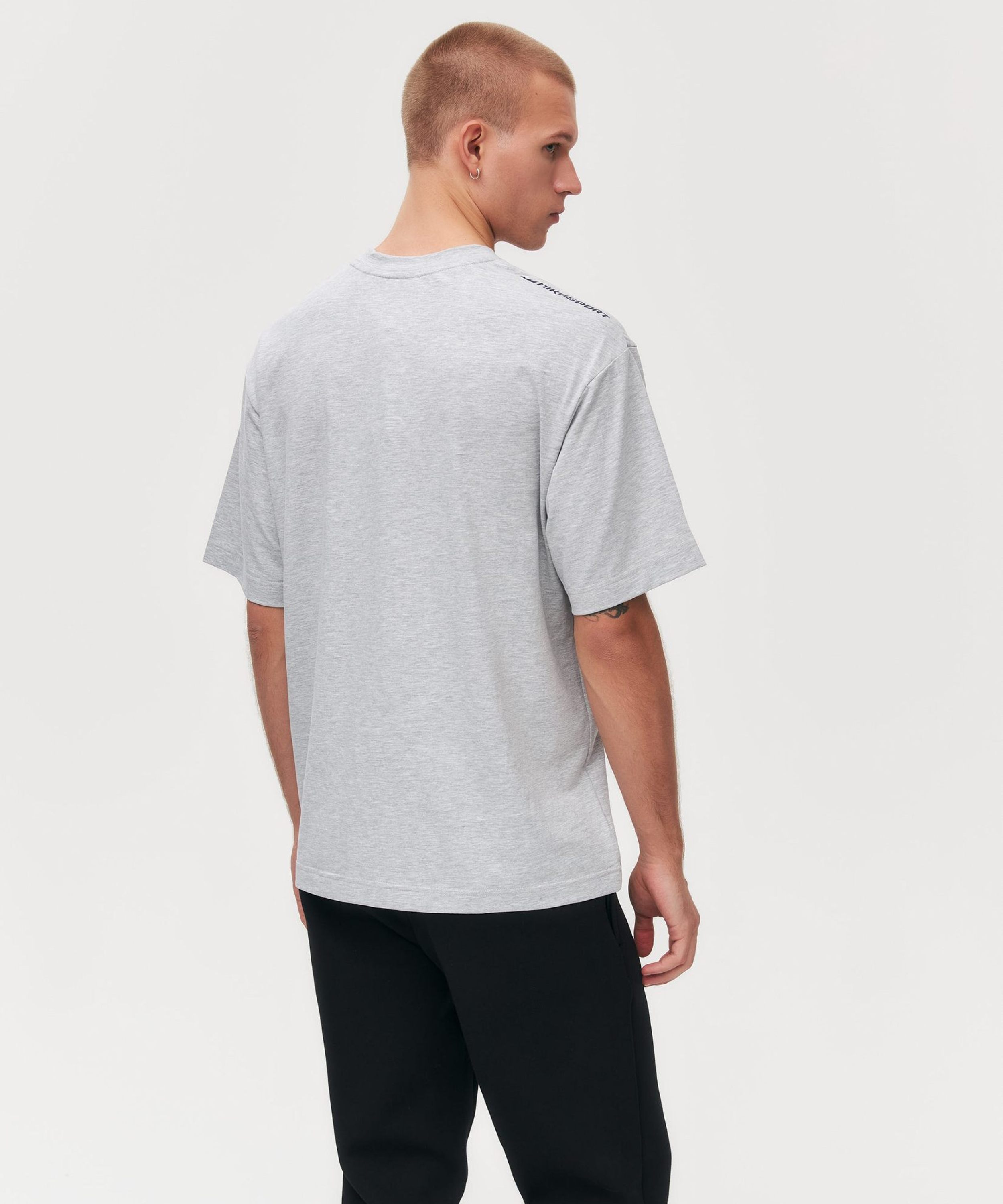 Мужская футболка oversize силуэта. Выполнена из материала, в составе которого 95% хлопка и 5% эластана, за счет чего футболка лучше держит форму. На груди расположена тональная вышивка с логотипом бренда, на плече - принт. Футболка легко сочетается как со спортивной так и с повседневной одеждой, и является незаменимой в вашем базовом гардеробе.