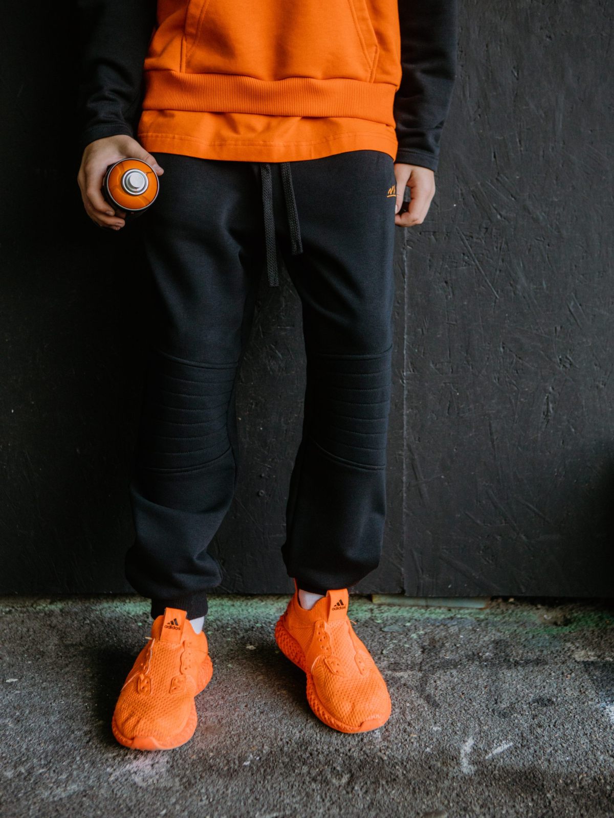 Детские брюки-джоггеры прямого силуэта из коллекции Smart Boys Gang - стиль дерзости и бунтарства для целеустремленных парней! Выполнены из материала, в составе которого 80% хлопка и 20% полиэстера, что обеспечивает долговечность изделия. Особенностями модели являются плотный и мягкий материал, усиленные вставки на коленях, шнур в поясе для регулировки посадки и контрастная вышивка-логотип на левой ноге. Представлены в 2 цветах: классическом черном и ярком оранжевом. Все что нужно для комфортного и запоминающегося образа.