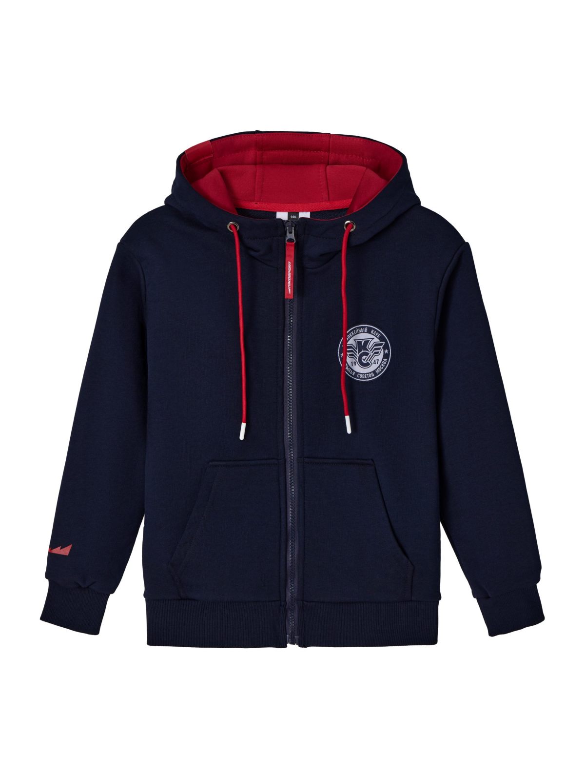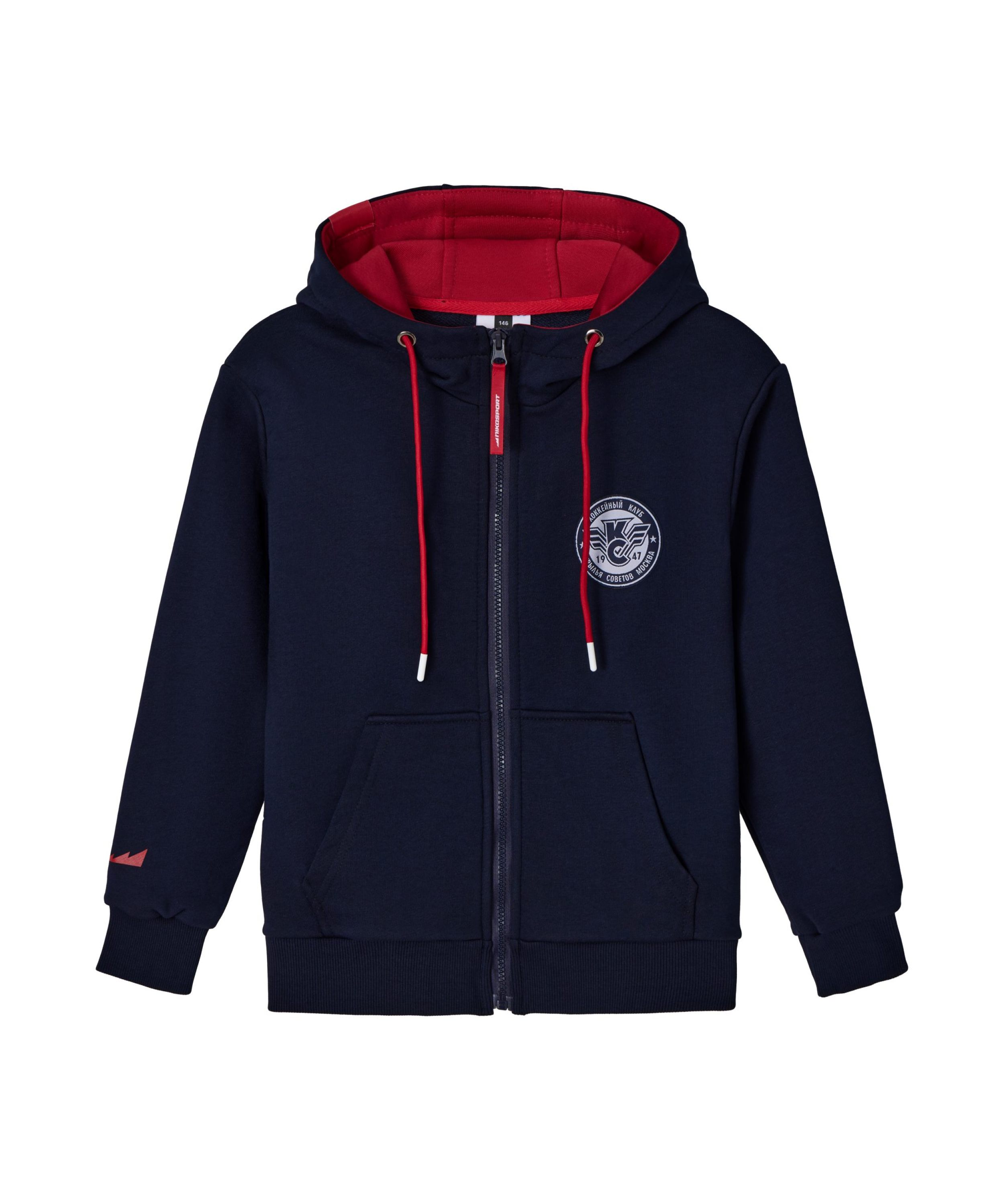 Детская толстовка прямого силуэта Regular лимитированной коллекции "Крылья Советов". Выполнена из материала, в составе которого 85% хлопка и 15% полиэстера, что обеспечивает отличную посадку и долговечность изделия. Мягкий и плотный материал, два глубоких кармана для личных вещей, капюшон на утяжках контрастного цвета для защиты от непогоды, эмблема-вышивка клуба на груди и яркий принт-логотип на правой руке - все что нужно для комфорта и запоминающегося образа настоящих фанатов!