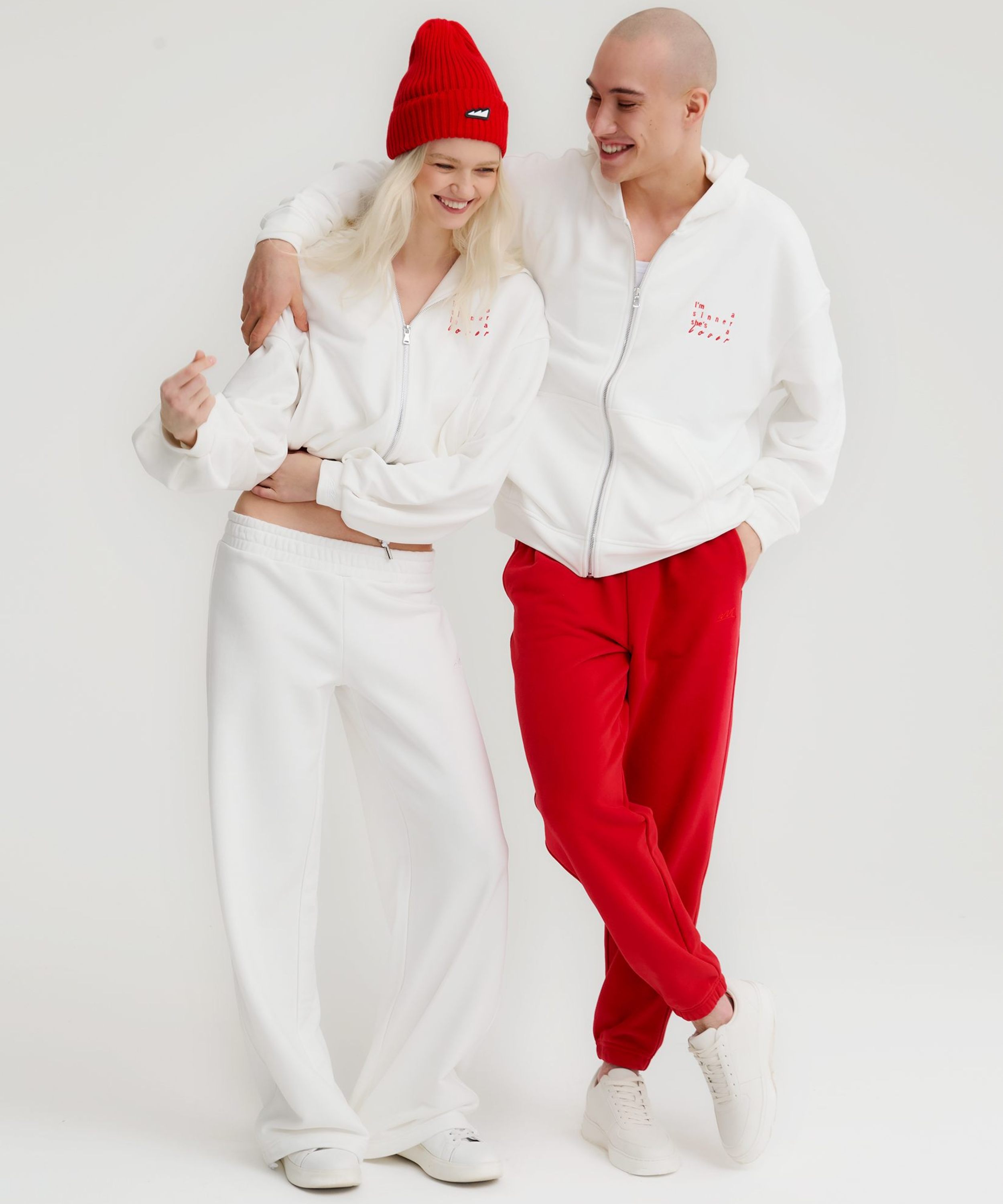Мужские широкие брюки джоггеры из лимитированного дропа Valentine's выполнены из материала с эффектом peach, в составе которого 90% хлопка 10% полиэстера, что обеспечивает отличную посадку и долговечность изделия. Материал очень мягкий и приятный к телу. Брюки имеют внутренний шнурок в поясе для утяжки и регулировки посадки. На левой ноге расположена тональная вышивка с логотипом бренда.