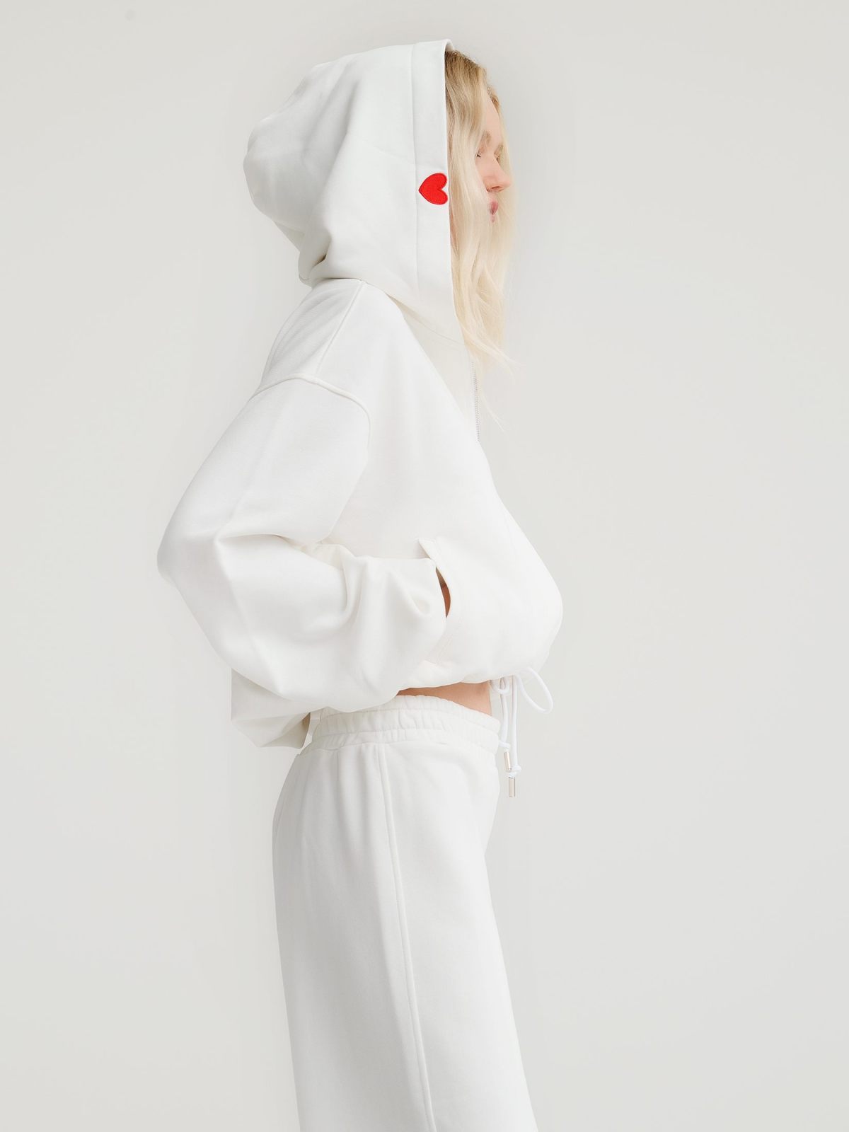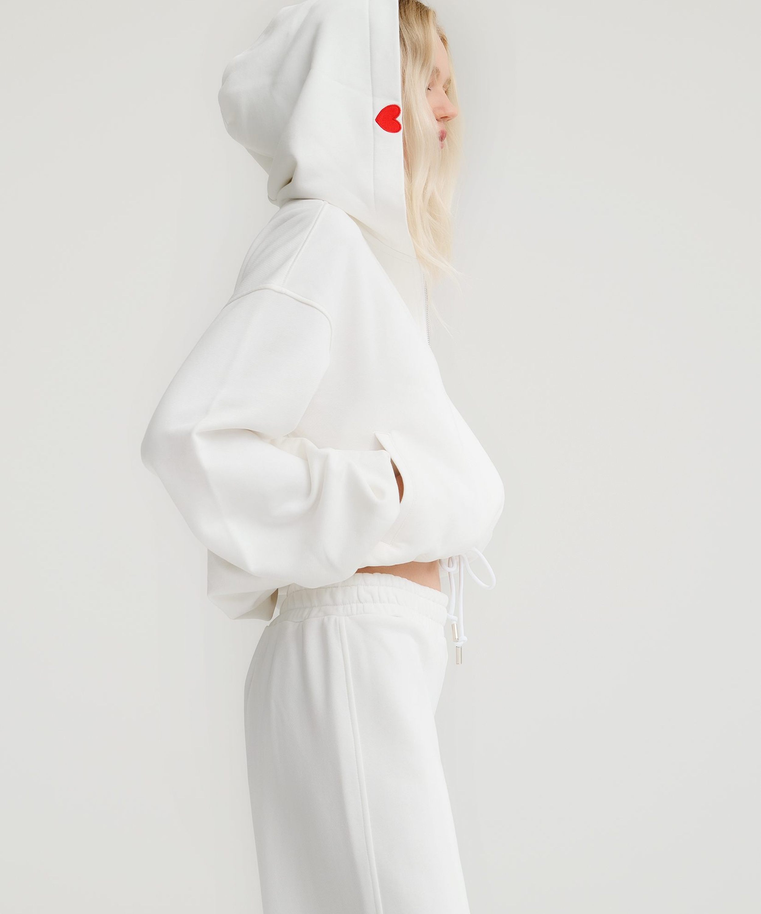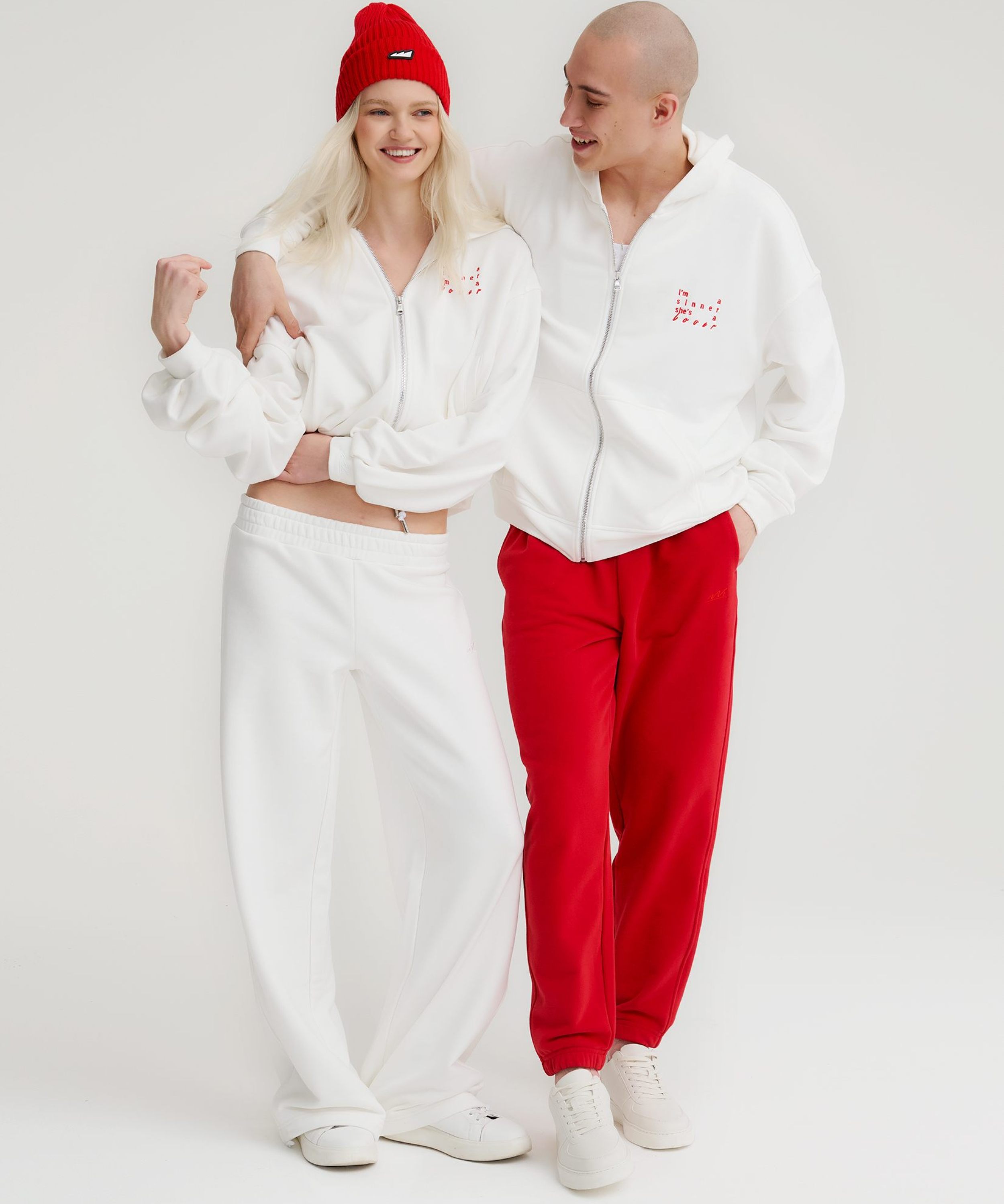 Корд-система внизу позволит вам регулировать посадку брюк, интересный крой и свободный силуэт помогут создать романтичный игривый образ в спортивном стиле. На левой ноге расположена тональная вышивка с логотипом бренда. В комплекте к брюкам в ассортименте представлен худи "Джек" W2VD34-ECR.