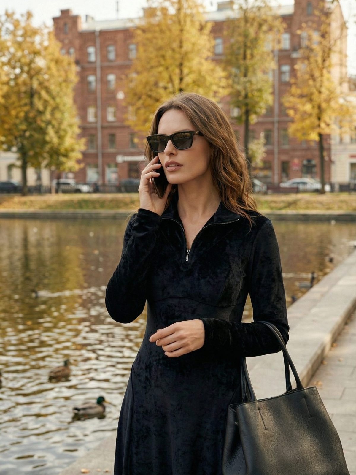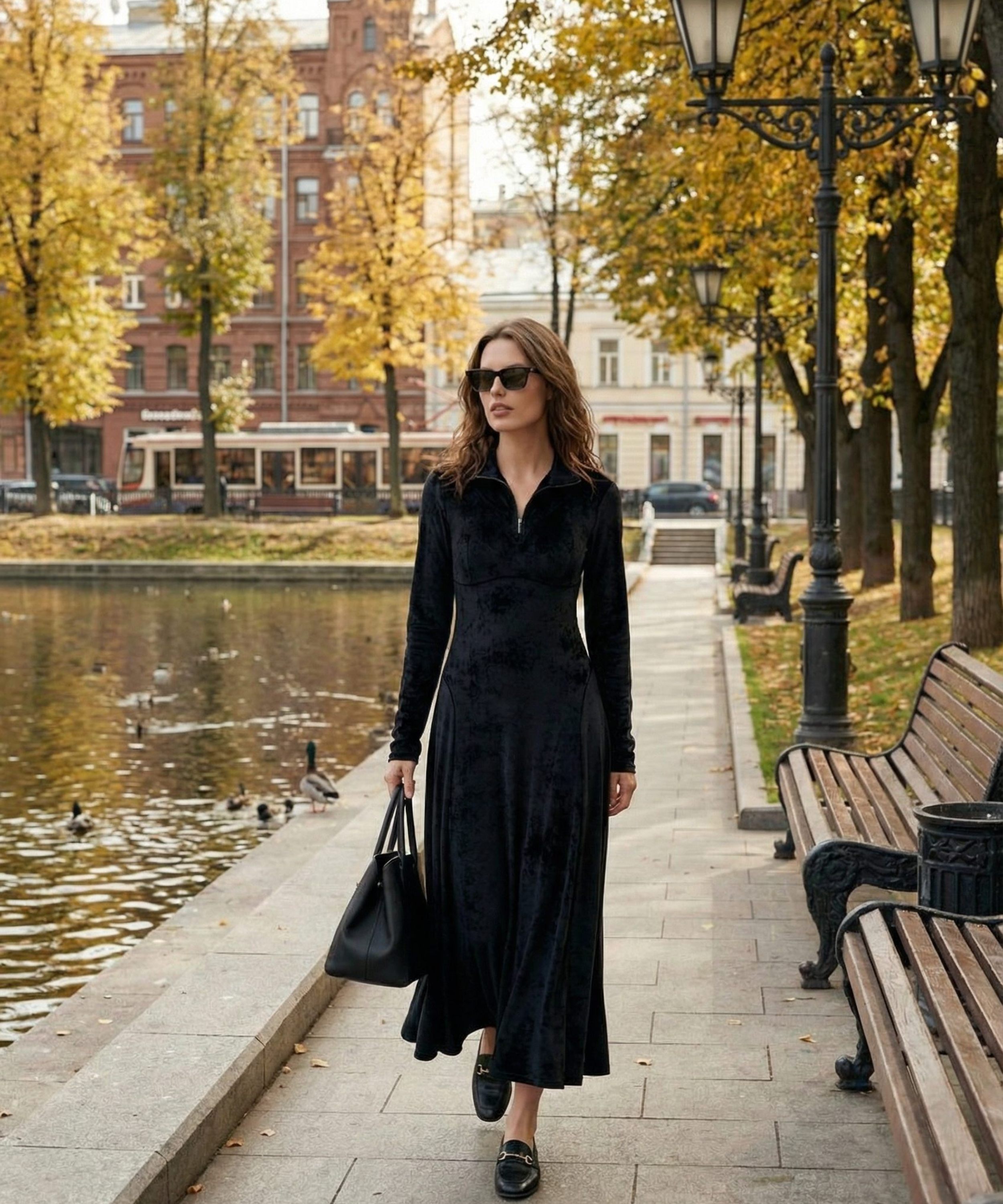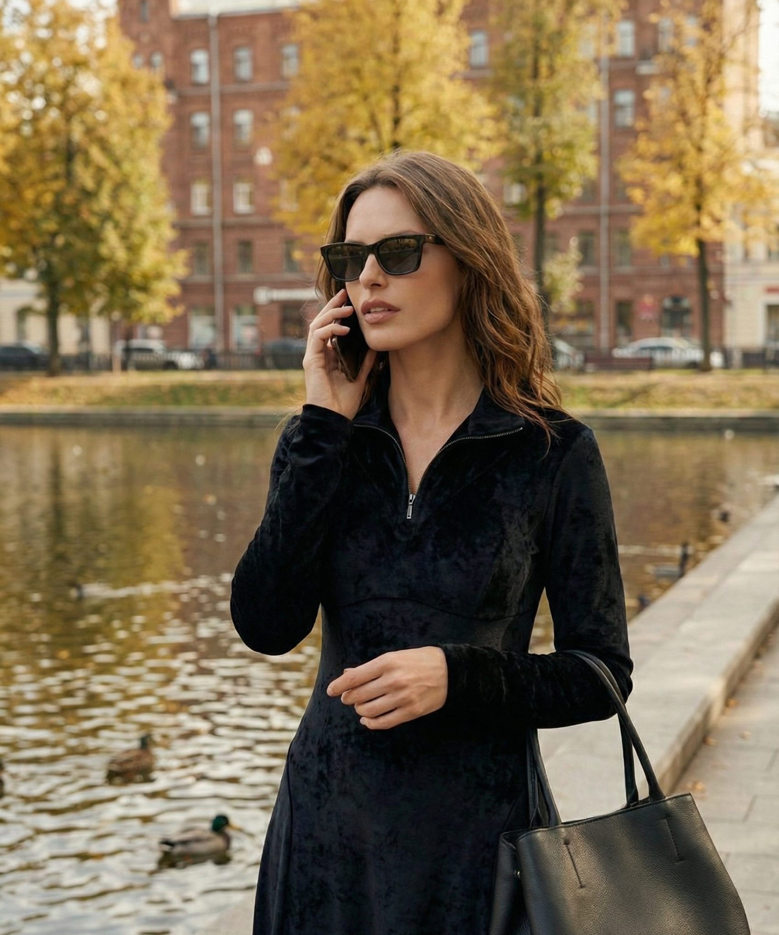 Ключевая модель лимитированного дропа Villains Academy - платье "Готика", выполнено из материала велюр, в составе которого 92% полиэстера 8% спандекса. Материал тянущийся, очень приятный к телу и отлично садится по фигуре. Платье имеет фигурные швы в области талии и груди, высокое горло и молнию, которая дает возможность регулировать горловину.