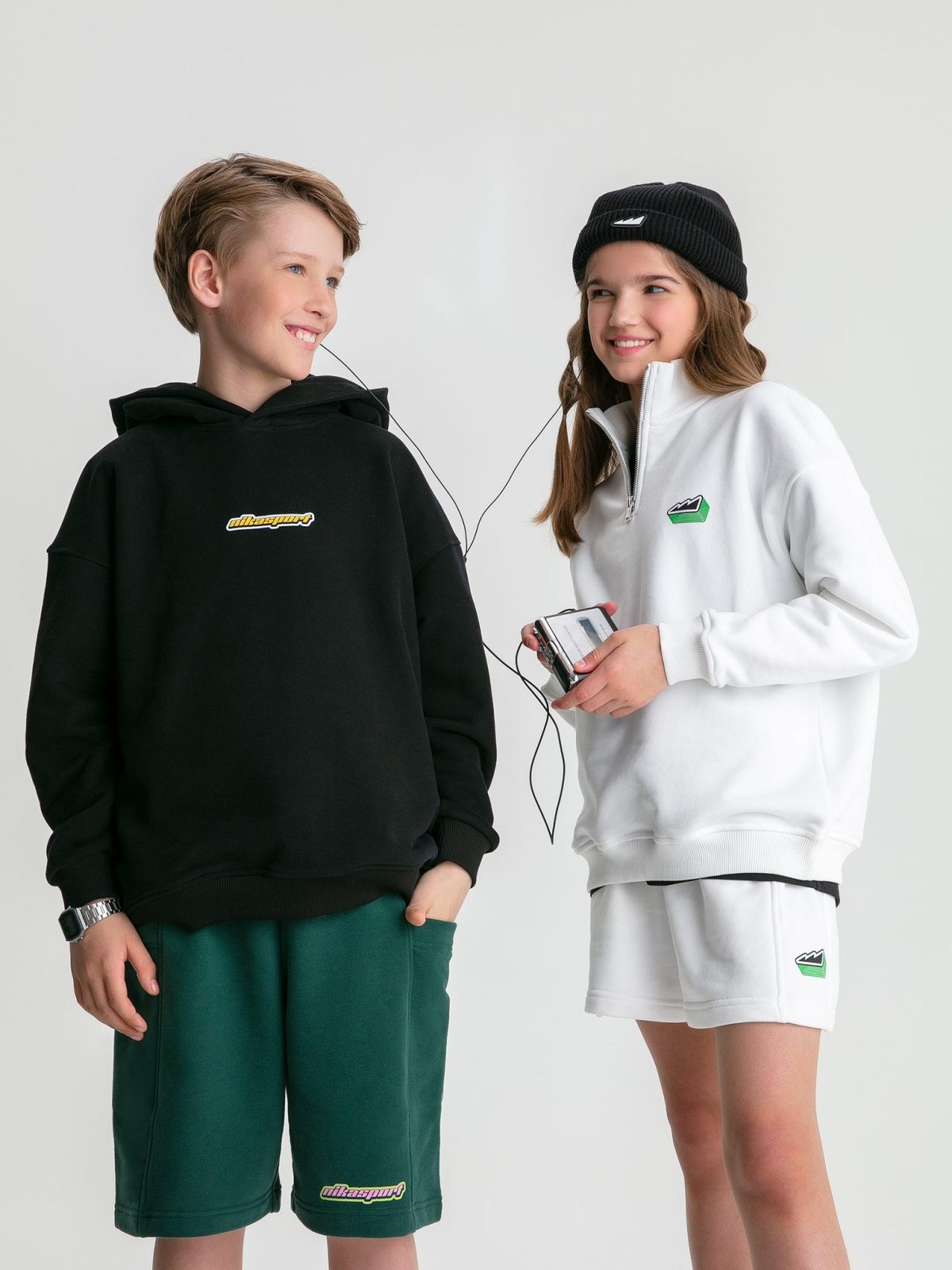 Детское худи "Рони" из коллекции Legendary Drop, вдохновленной эпохой Y2K, выполнено из материала с эффектом peach, в составе которого 90% хлопка 10% полиэстера, что обеспечивает отличную посадку и долговечность изделия. Худи невероятно мягкое и приятное на ощупь. Свободный силуэт, лаконичные карманы сбоку и объемный капюшон позволят вам создать стильный расслабленный спортивный образ. На спине расположен один из ключевых слоганов дропа "New loot on me" и принт с логотипом бренда на груди.