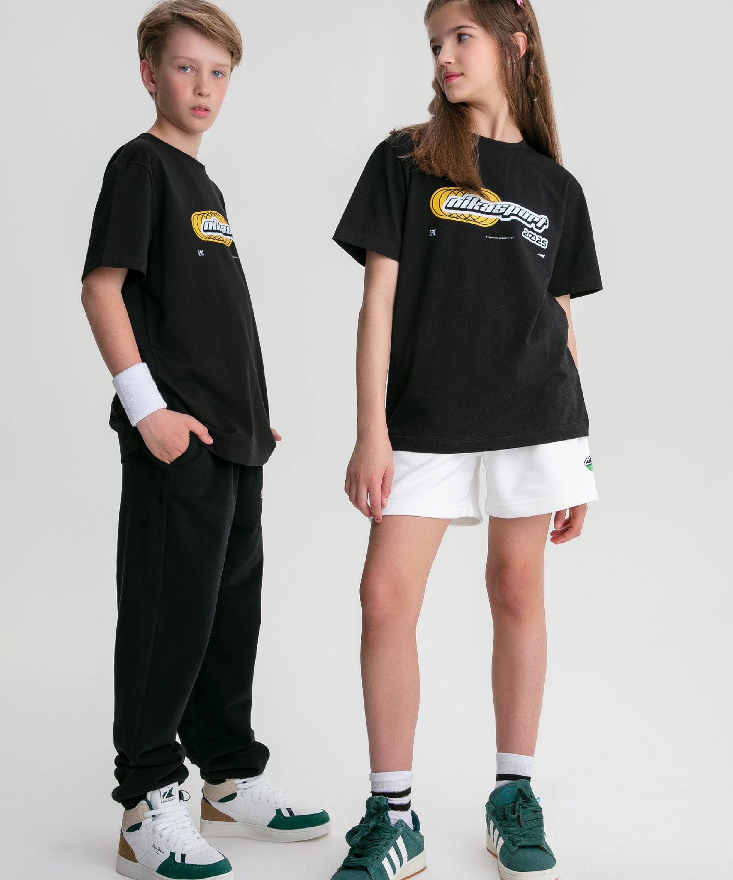 Детская Oversize футболка "Рони" из коллеции Legendary Drop, вдохновленной эпохой Y2K, выполнена из материала с эффектом peach, в составе которого 92% хлопка 8% эластана, материал отлично держит форму и делает футболки невероятно мягкими и приятными на ощупь. Спущенное плечо, свободный крой и стильный принт с логотипом бренда помогут вам создать стильный расслабленный спортивный образ.