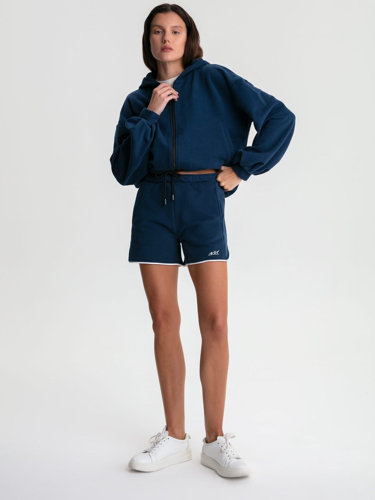 Укороченные шорты "Ева" из коллекции Villains Academy, выполнены из материала с эффектом peach, в составе которого 90% хлопка 10% полиэстера, что обеспечивает отличную посадку и долговечность изделия. Шорты невероятно мягкие и приятные на ощупь. Посадка - regular, трендовый цвет, два боковых кармана, контрастный кант и фирменная вышивка - отличный выбор для яркого летнего образа в спортивном стиле. Пояс на эластичной резинке обеспечивает комфортную посадку. Шорты можно сочетать с худи W3VA34-BLU, а так же с белыми майками и футболками из коллекции Classic.