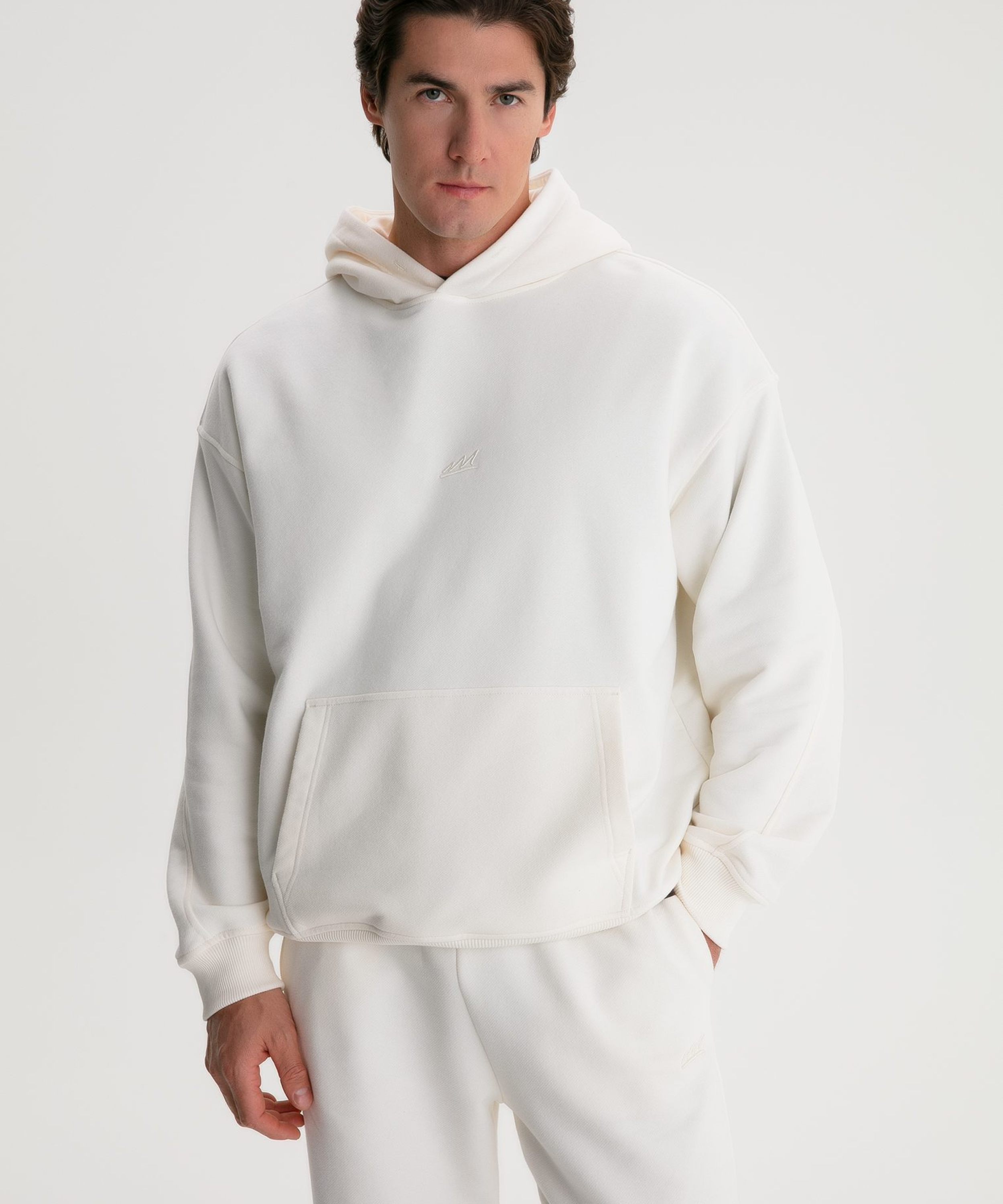 Худи "Сеул" свободного кроя из коллекции Classic выполнено из материала с эффектом peach, в состав которого входит 90% хлопка 10% полиэстра, за счет чего худи отлично держит форму и долговечно в носке. Материал невероятно мягкий и приятный на ощупь. Уникальный крой отлично подчеркивает любую форму плеч. Худи имеет карман-кенгуру и 3D вышивку с логотипом бренда на груди. В ассортименте к худи представлены брюки M5CLP83-ECR. Уютный мягкий костюм на прохладную летнюю погоду.