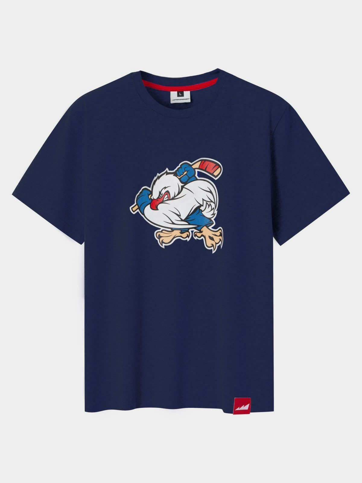 Мужская футболка классического силуэта Regular лимитированной коллекции "Крылья Советов". Выполнена из материала, в составе которого 95% хлопка и 5% эластана, за счет чего футболка лучше держит форму. На груди расположен стильный принт-эмблема легендарного хоккейного клуба. Модель представлена в 3 базовых цветах - белый, серый и темно-синий. Качество и стиль для настоящих фанатов!