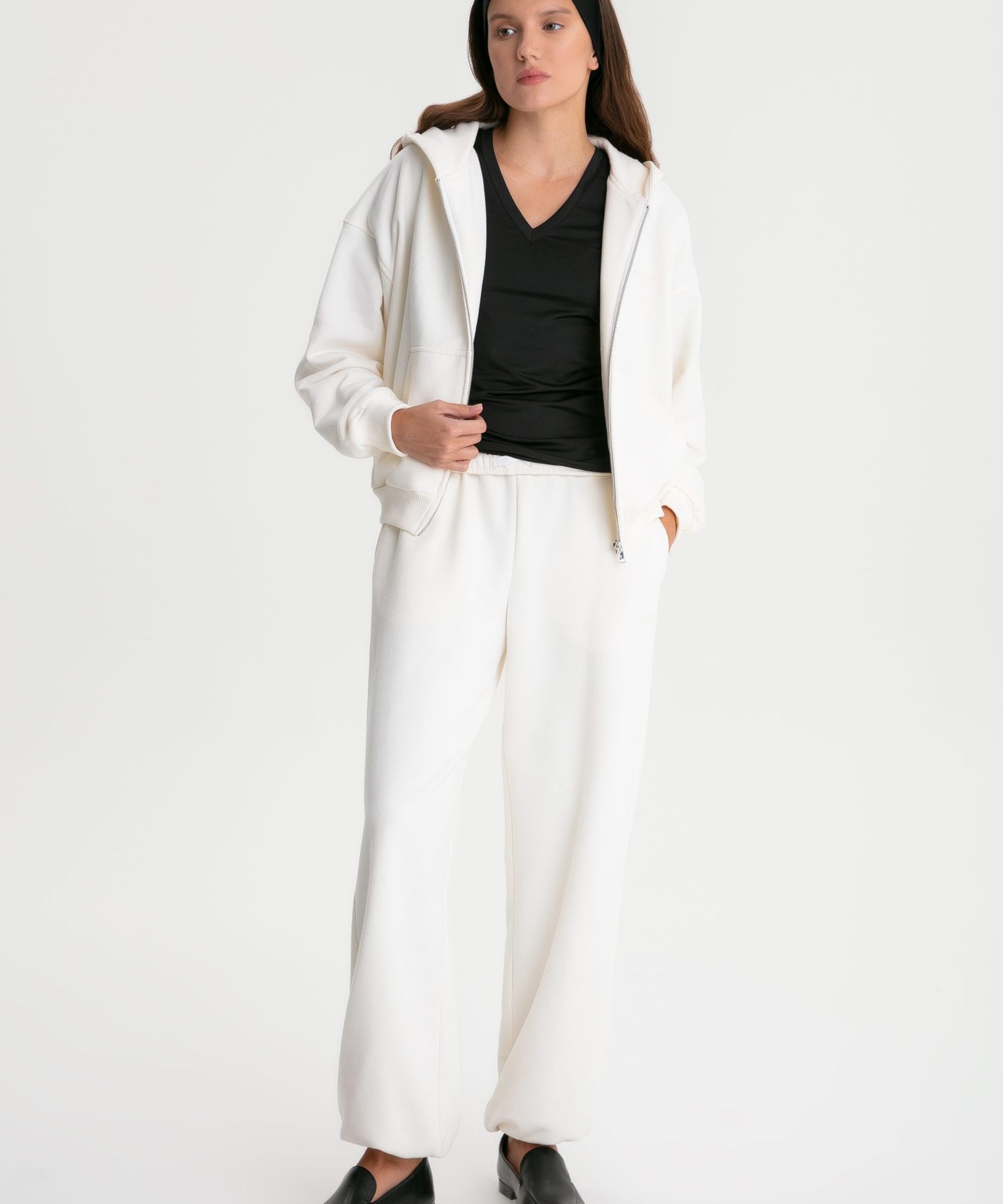 Брюки-джоггеры "Ева" свободного кроя из коллекции Classic выполнены из материала с эффектом peach, в состав которого входит 90% хлопка 10% полиэстра, за счет чего брюки отлично держат форму и долговечны в носке. Материал невероятно мягкий и приятный на ощупь. Брюки имеют два боковых кармана, хлопковый шнурок внутри для регулировки посадки и вышивку с логотипом бренда на левой ноге. В ассортименте к брюкам представлено худи "Ева" W5CLP34-ECR. Уютный мягкий костюм на прохладную летнюю погоду.