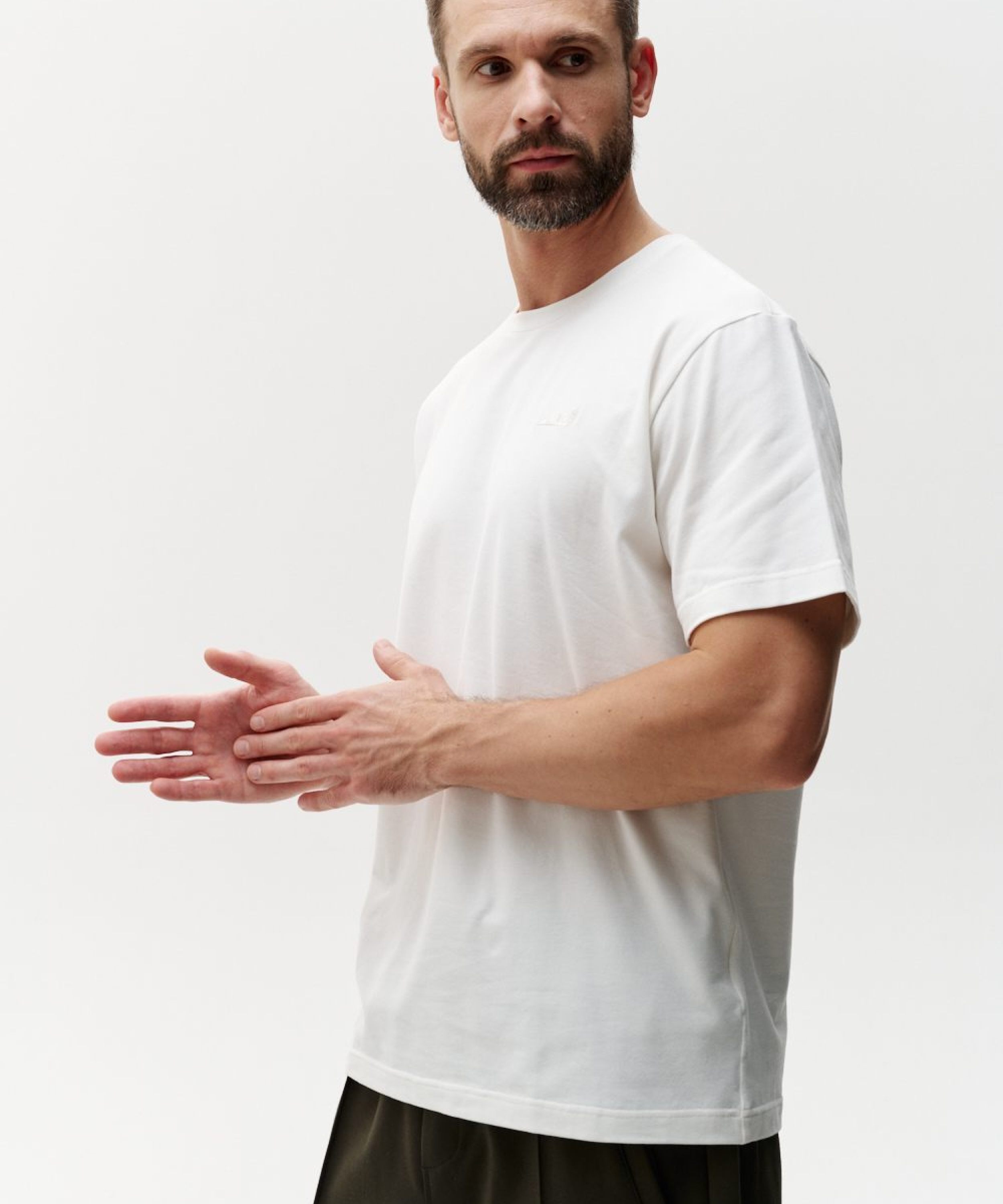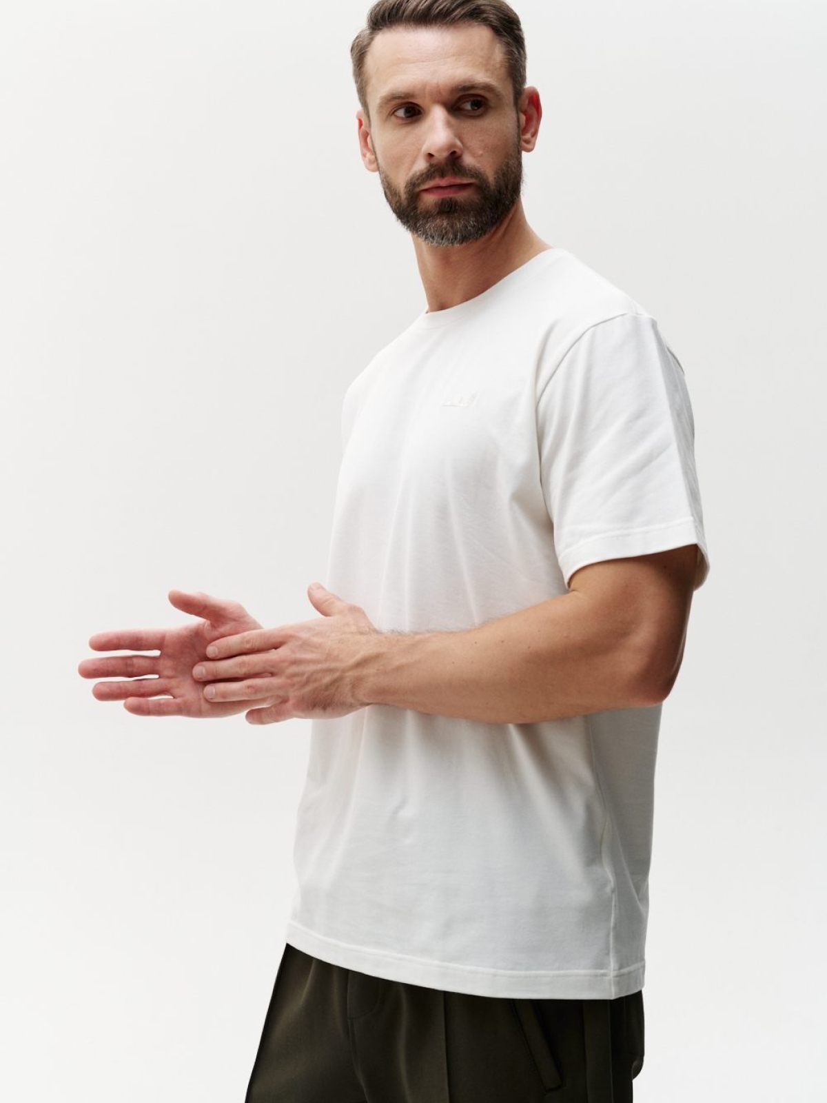 Мужская футболка классического прямого кроя выполнена из материала, в состав которого входит 92% хлопка и 8% эластана, за счет чего футболка более эластичная и лучше держит форму. На груди расположена тональная вышивка-логотип. Модель представлена в классических цветах: серый меланж, темно-синий, экрю, ваниль и черный. Футболка легко сочетается как со спортивной так и с повседневной одеждой, и является незаменимой в вашем базовом гардеробе.
