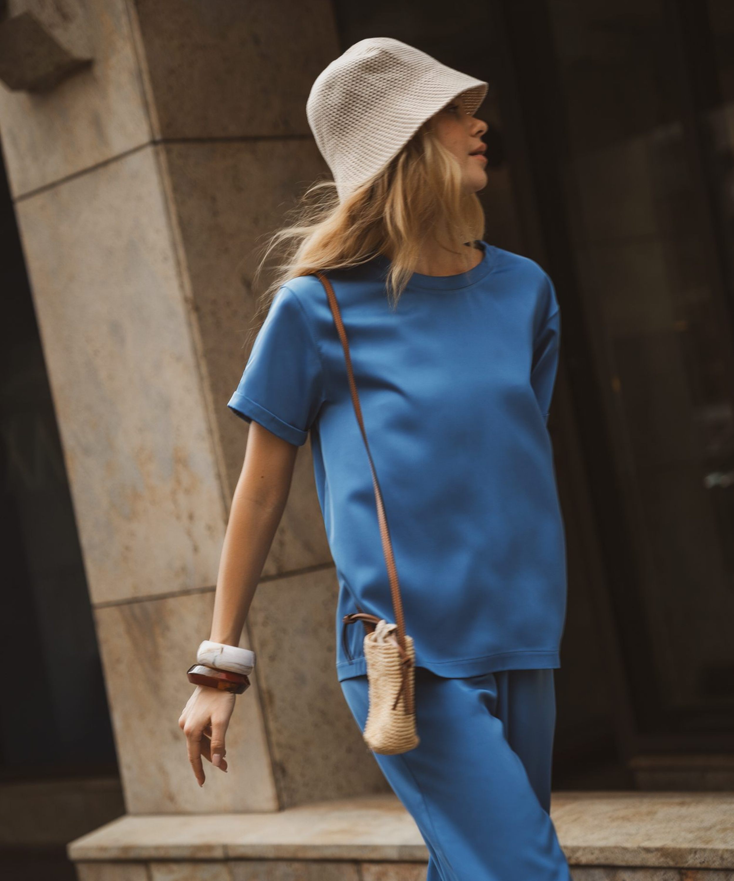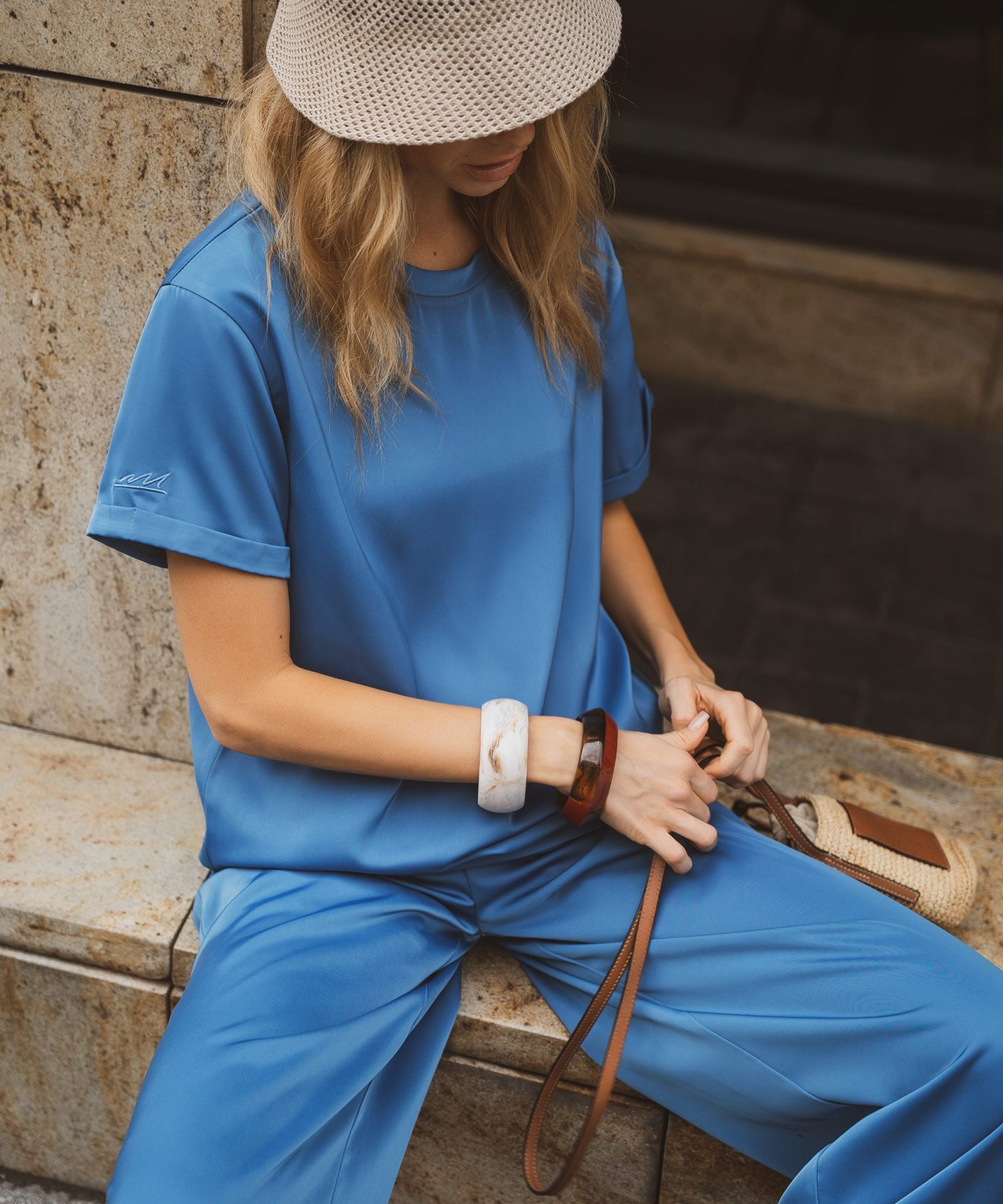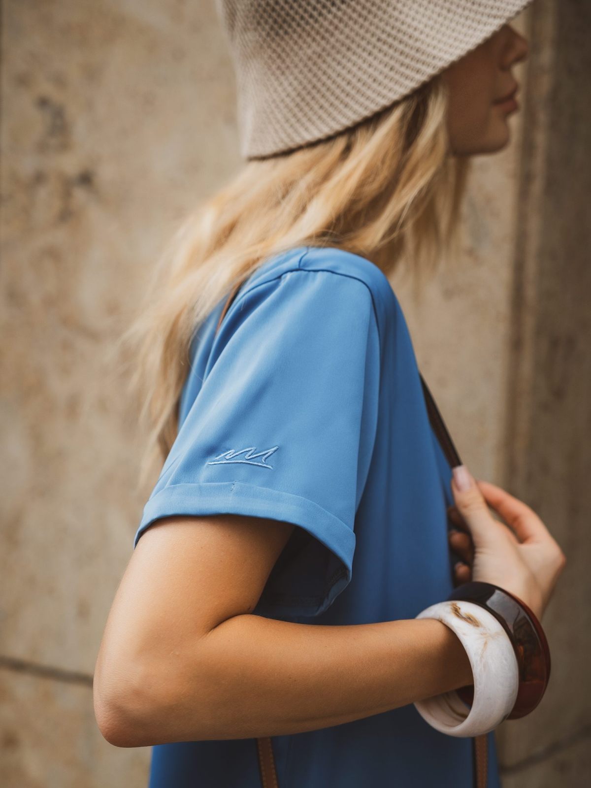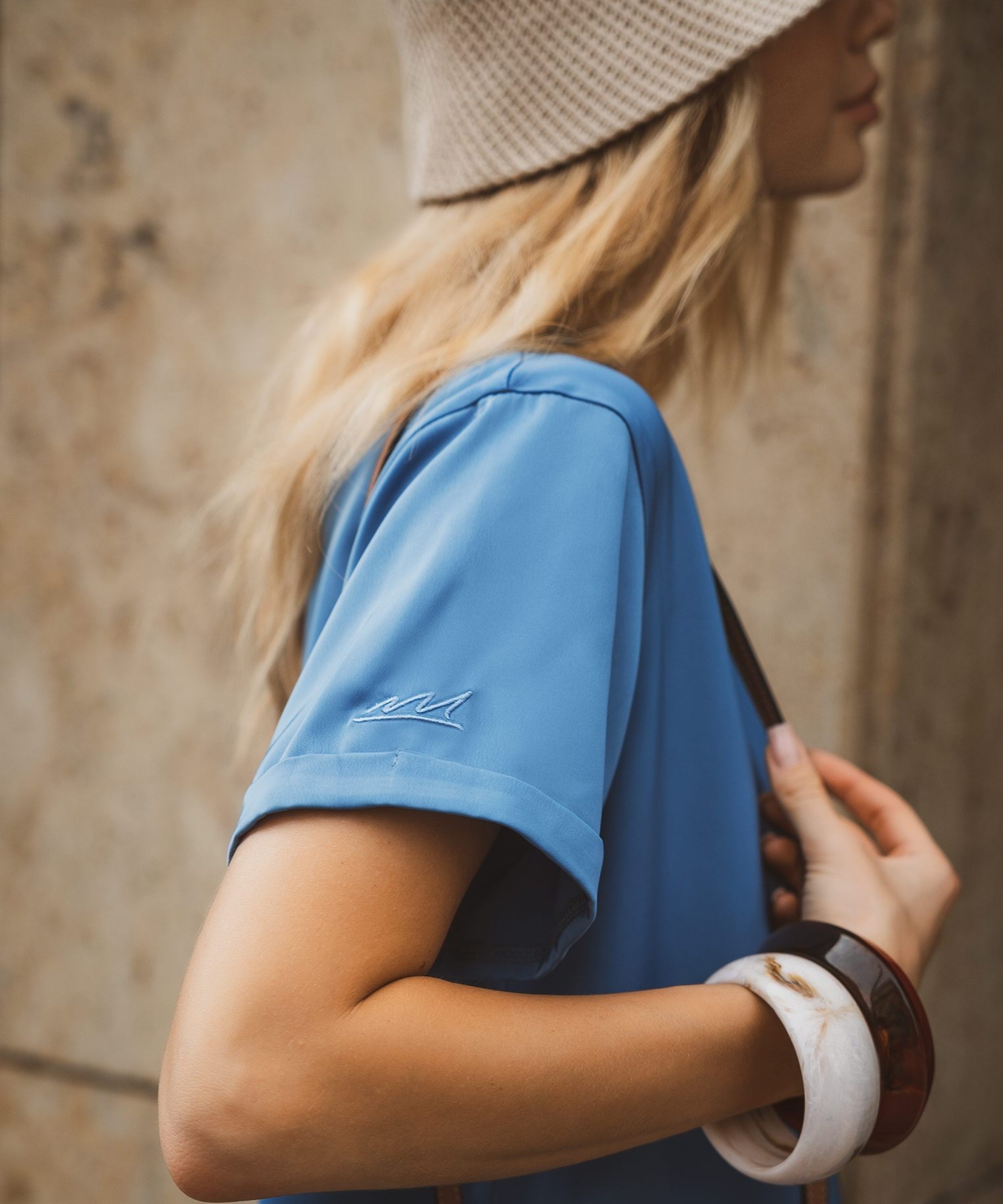 Легкая блузка с эффектом шелка из коллекции Gardenika. Материал очень приятный к телу и имеет эффект охлаждения. На правом рукаве расположена лаконичная тональная вышивка с логотипом бренда. К блузке в ассортименте представлены брюки W3GN84. Костюм отлично подойдет на жаркую летнюю погоду.
