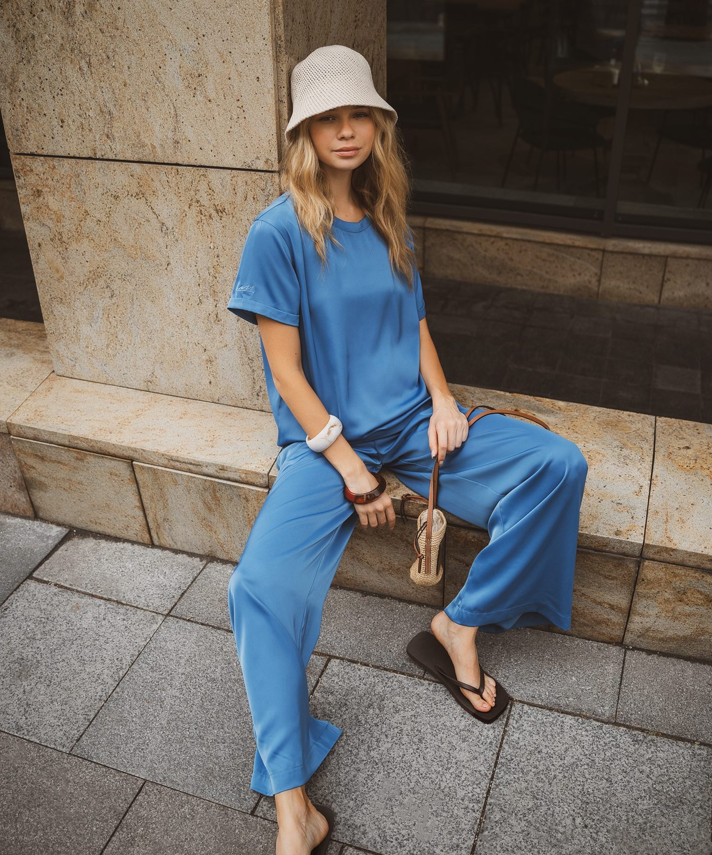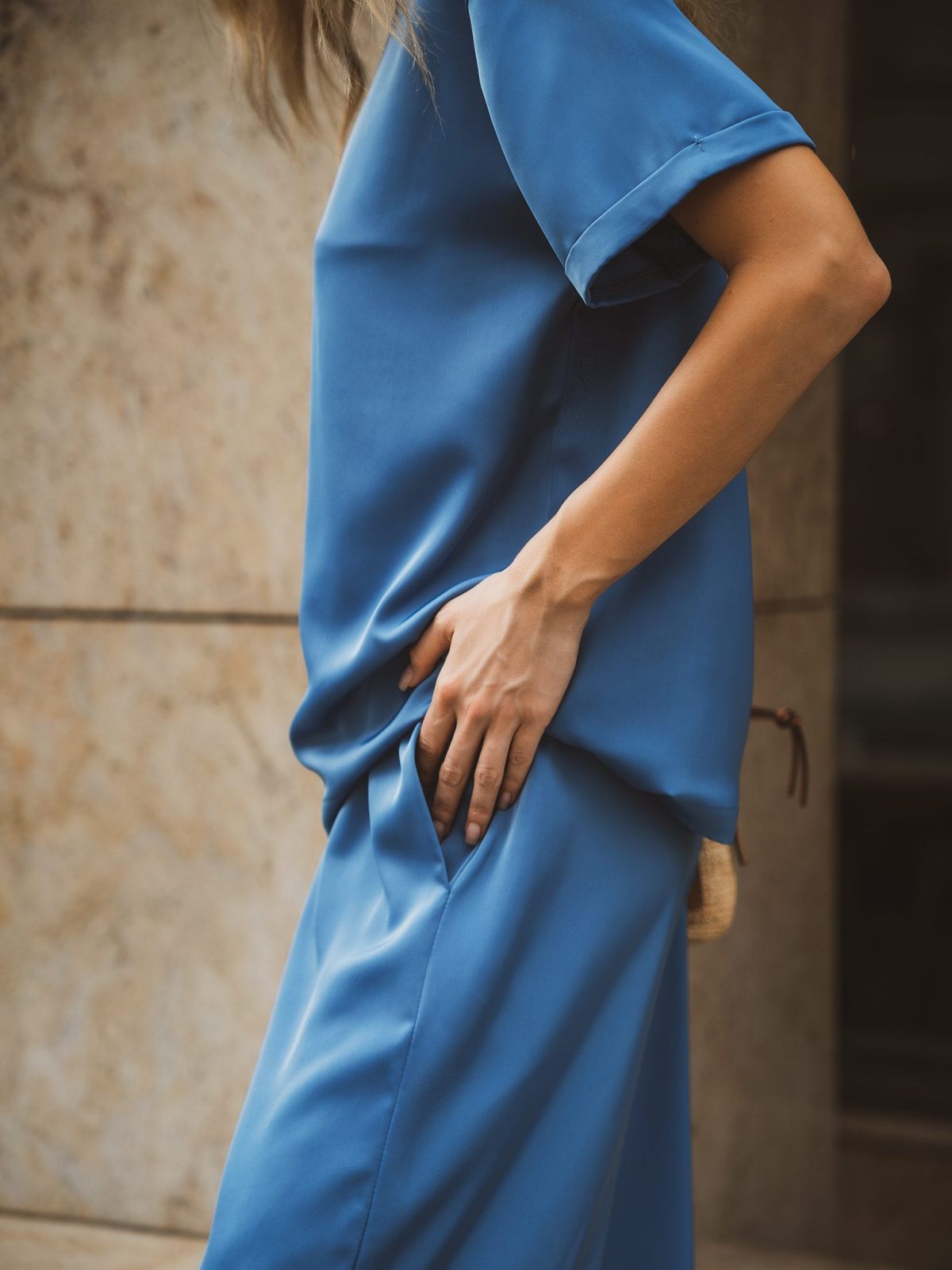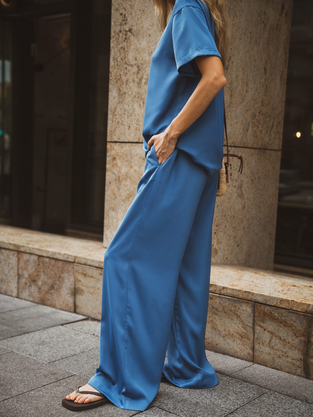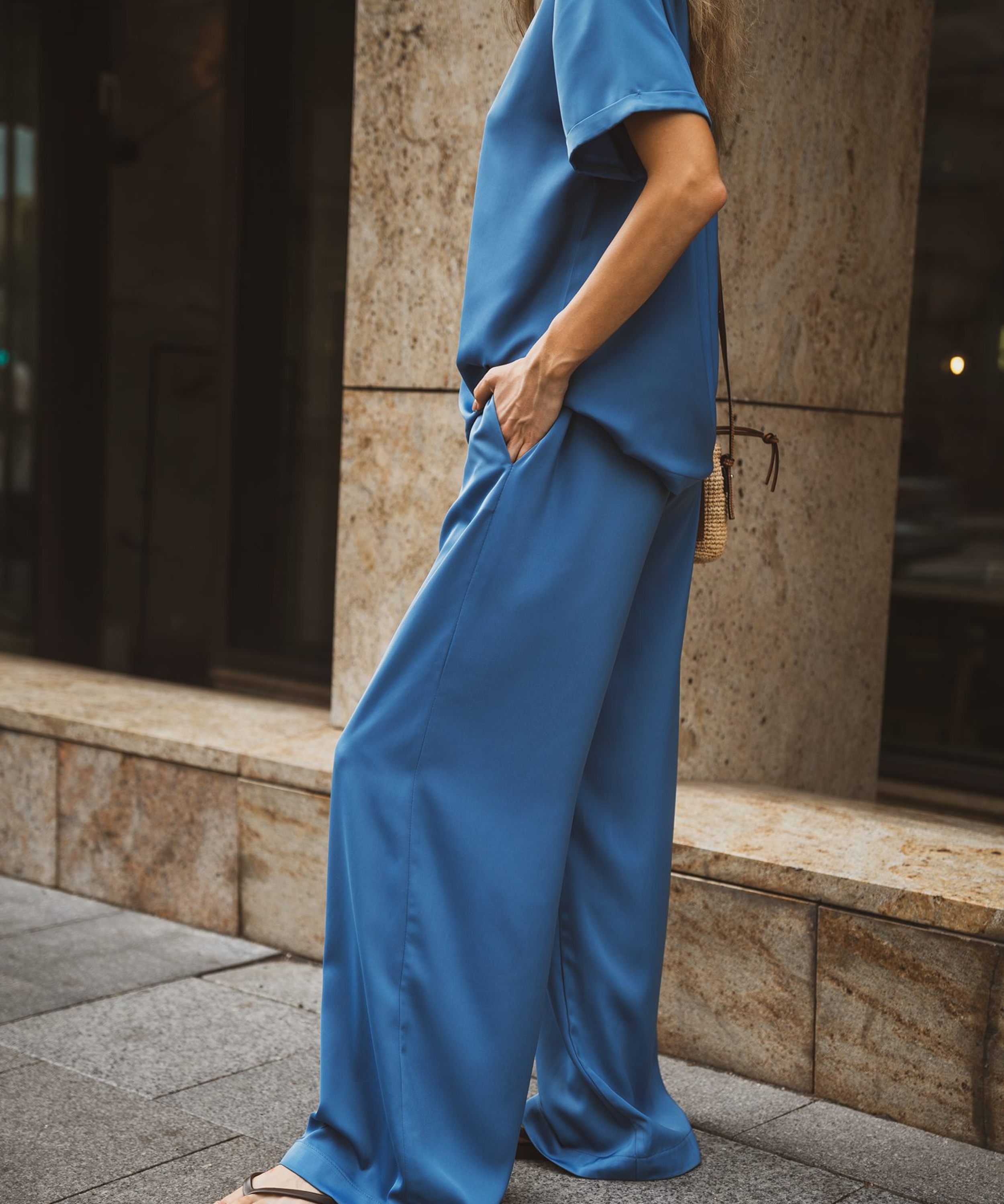 Легкие широкие брюки с эффектом шелка из коллекции Gardenika. Материал очень приятный к телу и имеет эффект охлаждения. К брюкам в ассортименте представлена блузка W3GN55. Костюм отлично подойдет на жаркую летнюю погоду.