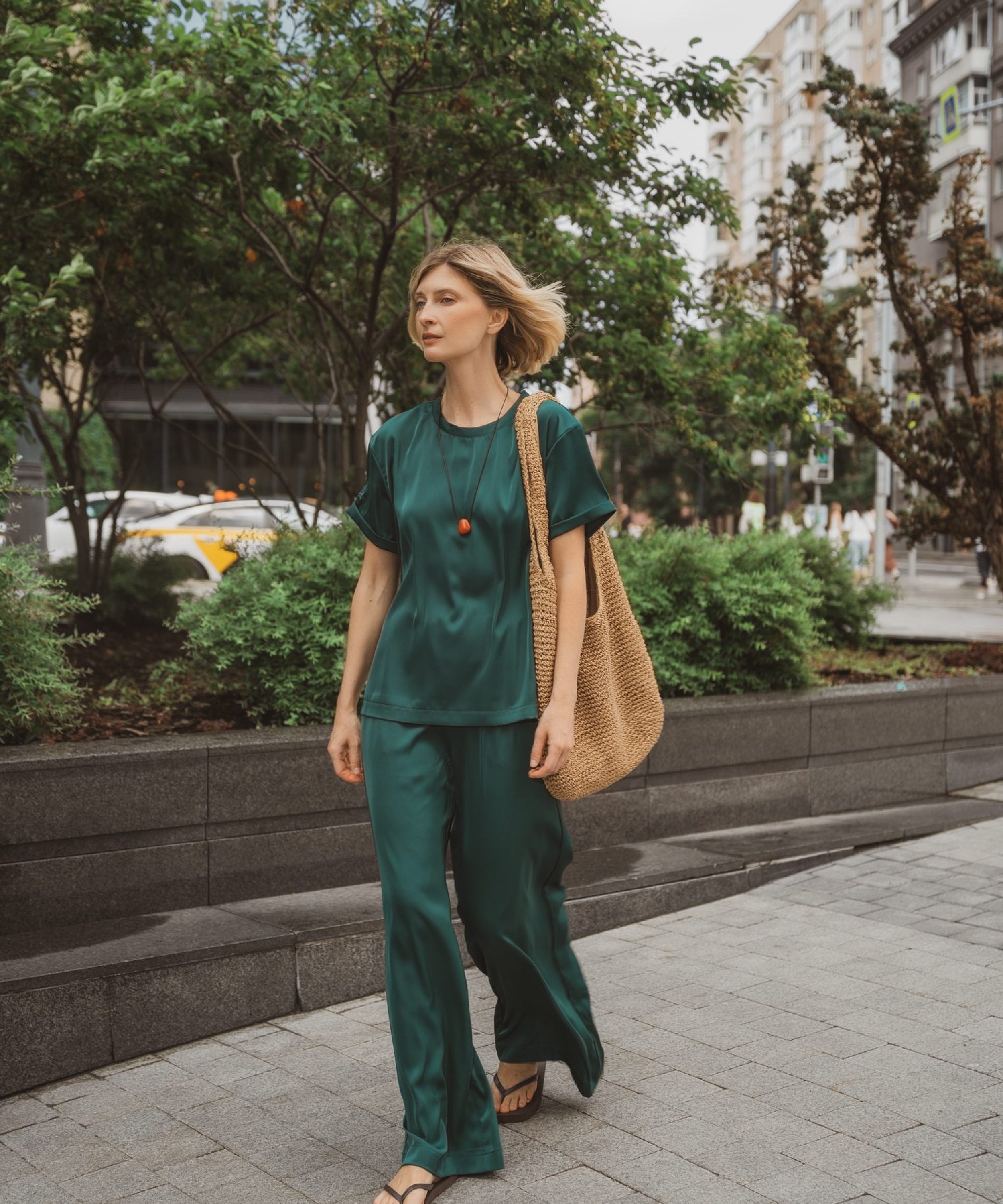 Легкие широкие брюки с эффектом шелка из коллекции Gardenika. Материал очень приятный к телу и имеет эффект охлаждения. К брюкам в ассортименте представлена блузка W3GN55. Костюм отлично подойдет на жаркую летнюю погоду.