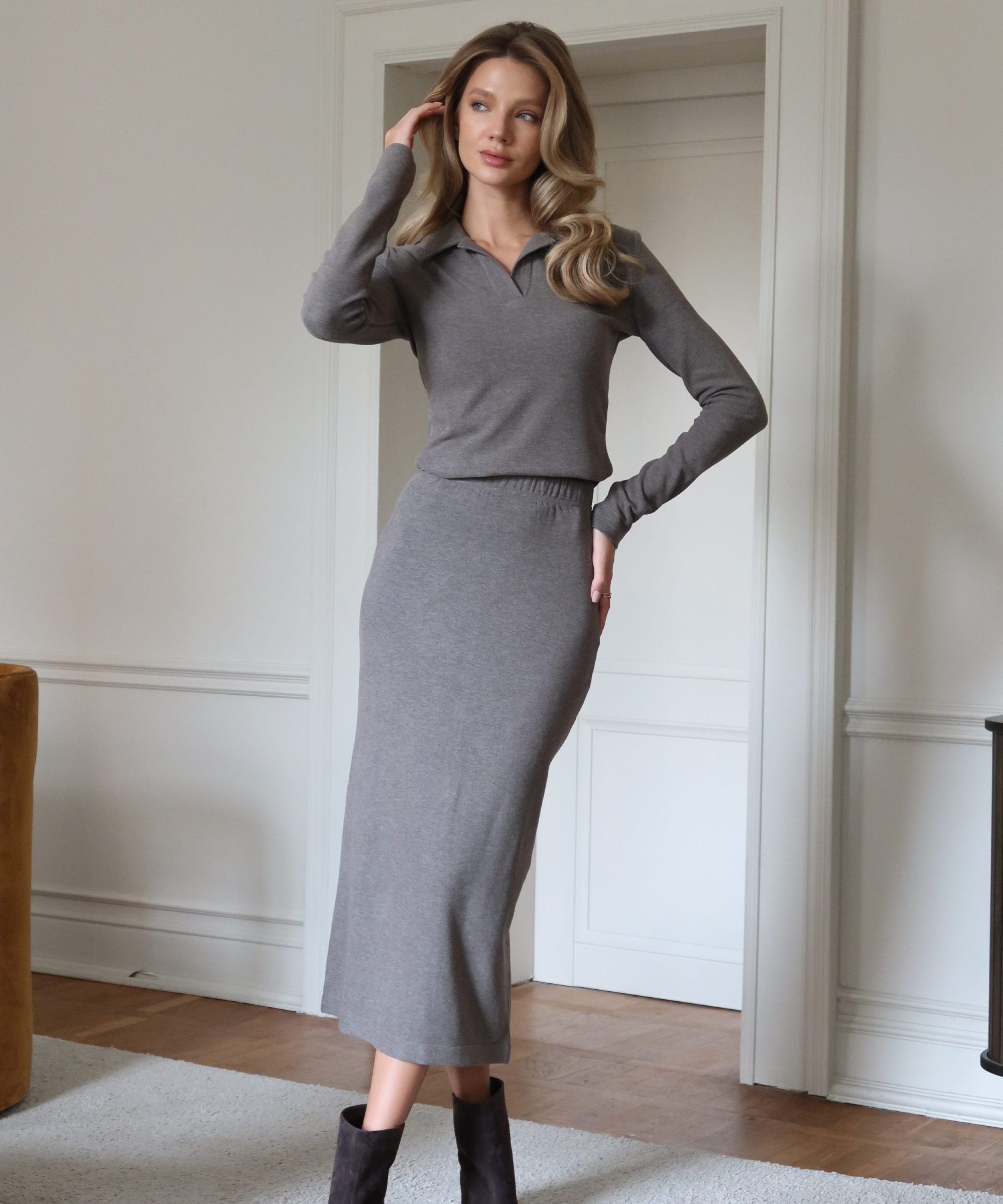Удлиненная юбка-карандаш "Габриэль" из коллекции Office Core выполнена из мягкого материала с вискозой и хлопком. Материал очень приятный к телу. Сзади имеется лаконичный разрез, что добавляет комфорта при ходьбе. В комплекте к юбке в ассортименте представлен лонгслив-поло 1W2OC48E1-25CAP68. Улавливая тренды этой осени, мы создали удобный костюм в стиле Office Core, который можно сочетать с разной обувью и пиджаками oversize. В костюме "Габриэль" можно пойти в офис, сочетая его с туфлями, а после работы, сменив обувь на кеды, встретиться с подругой в кафе и при этом оставаться в тренде и комфорте.