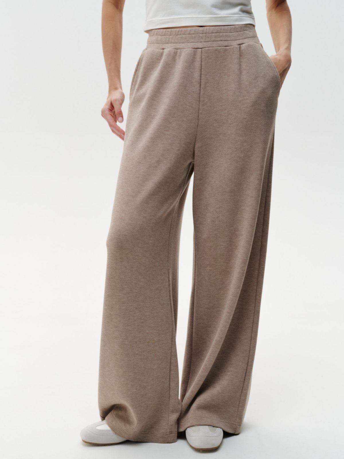 Брюки-палаццо "Герда" из коллекции Softwear выполнены из мягкого материала, в составе которого, преимущественно, вискоза, за счет чего материал имеет гладкую структуру. Брюки имеют два боковых кармана и внутренний шнурок для регулировки посадки. Незаменимый классический бежевый меланж в новом исполнении. К брюкам в ассортименте представлен джемпер 2W4SW314E1-25BGE/MLG67.