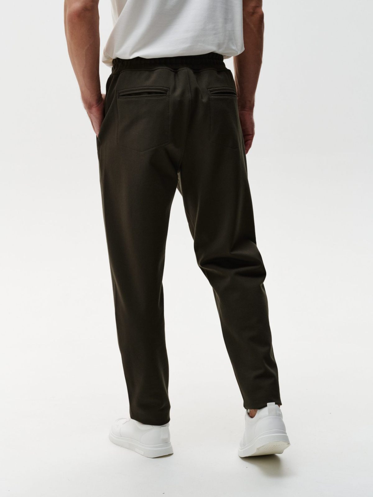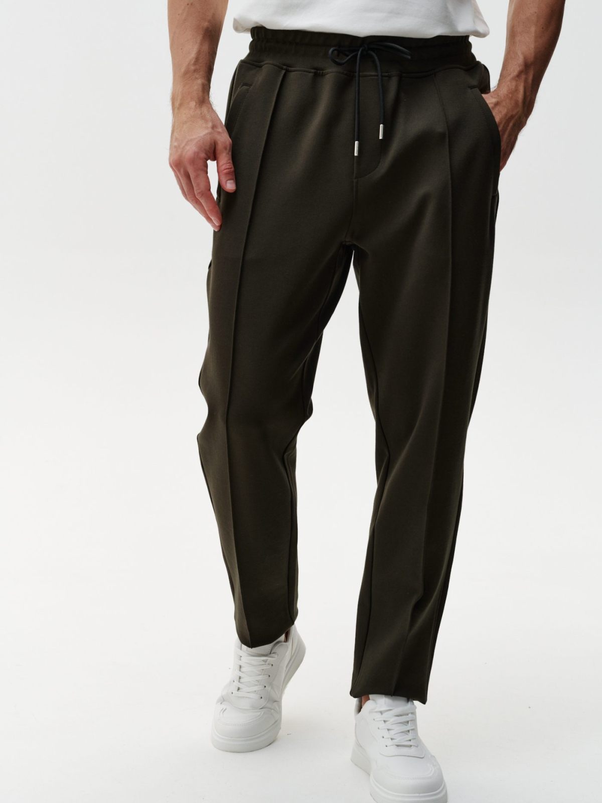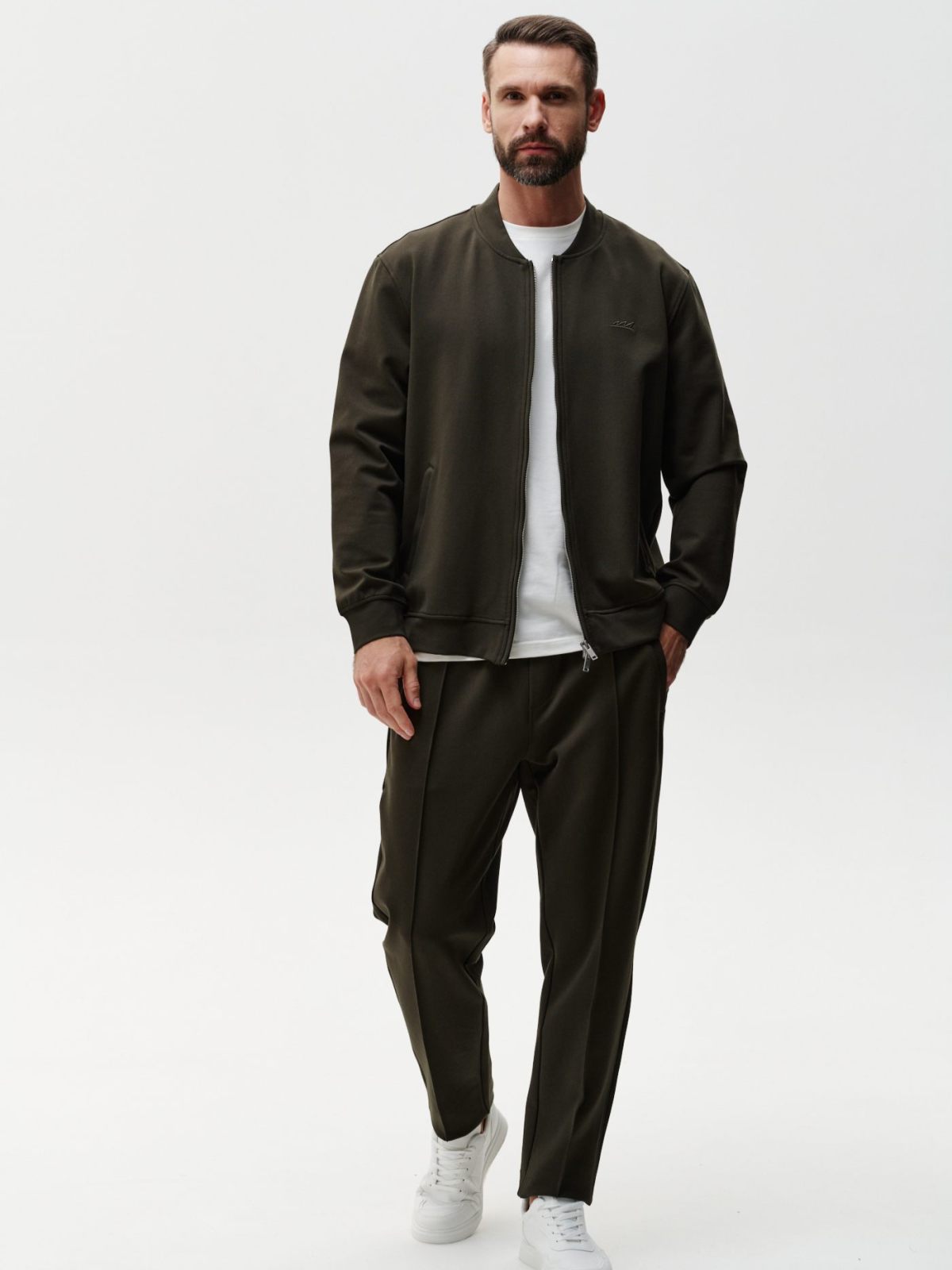 Брюки со стрелками "Генрих" прямого кроя из коллекции Classic в строгом темно-оливковом цвете. Материал - джерси, приятный на ощупь, гладкий, прочный и структурный, отлично держит форму. За счет добавления нейлона в состав материал слегка тянется. Брюки имеют два боковых кармана на молнии, два задних кармана на магнитной кнопке и шнурок в поясе для регулировки посадки. К брюкам в ассортименте представлены два джемпера 3M5CL31E1-15DRK/GRN10 и 3M5CL32E1-15DRK/GRN13. Лаконичный, комфортный костюм в стиле sport casual.
