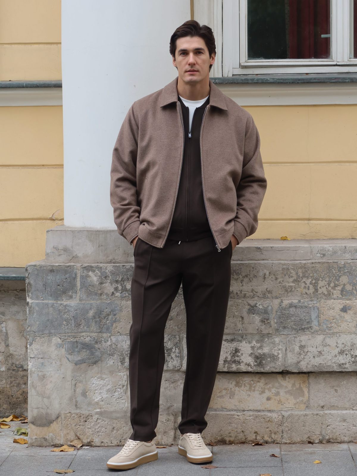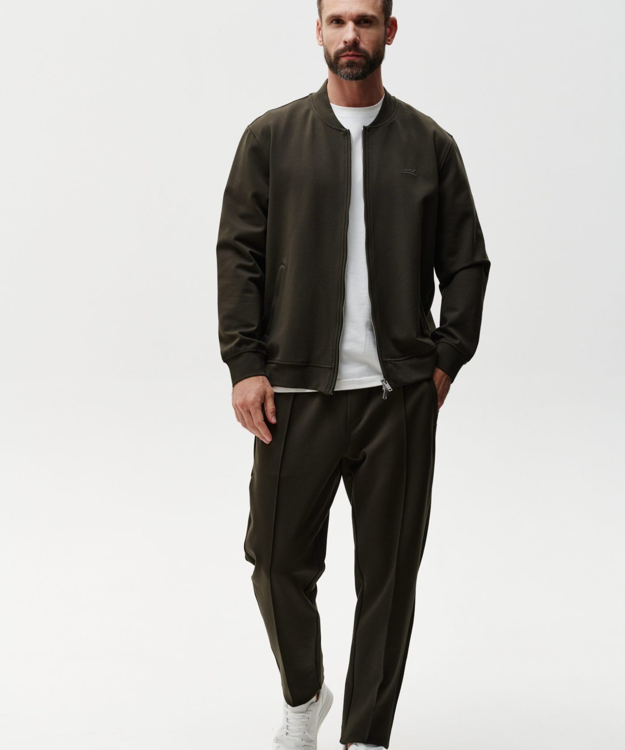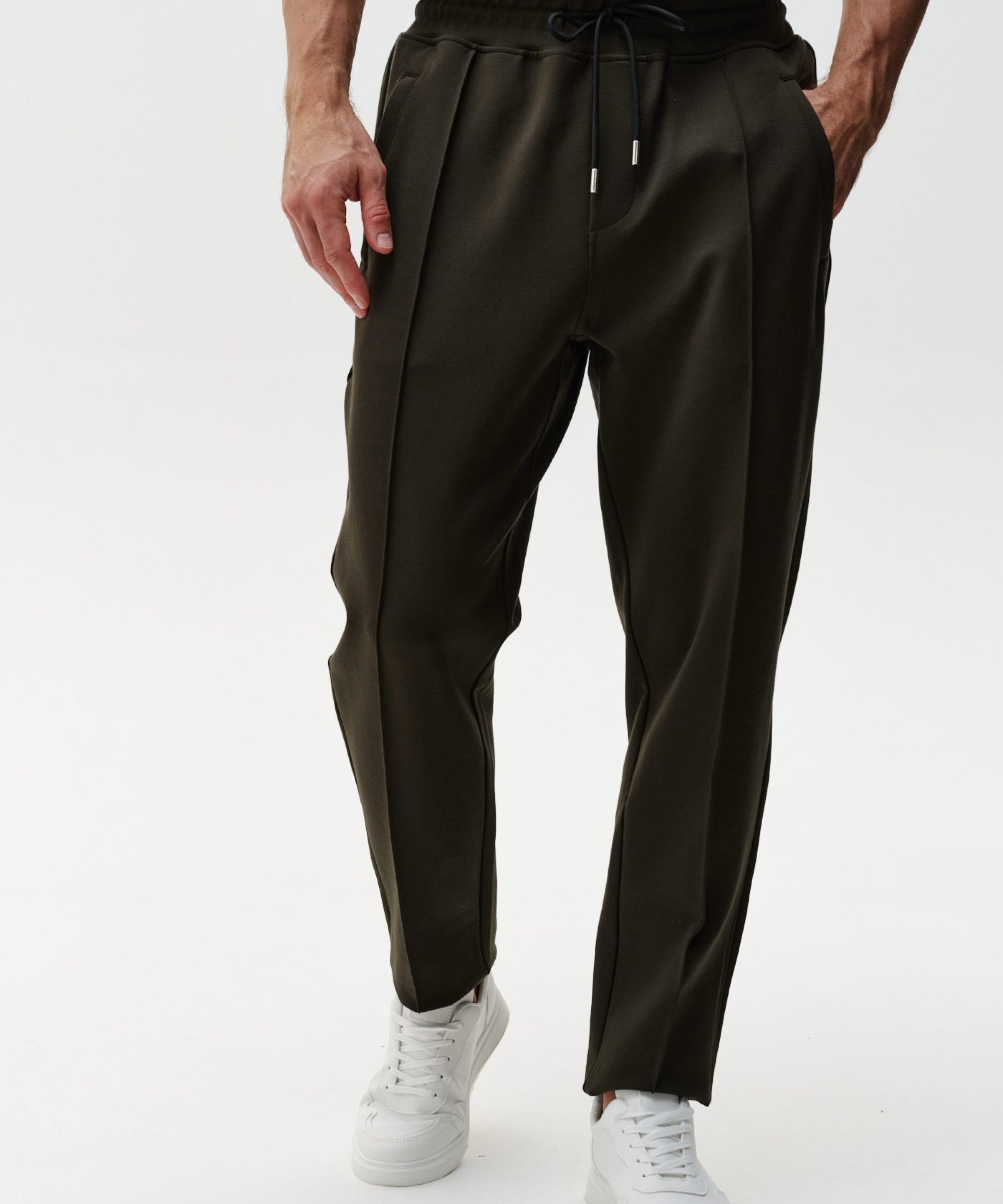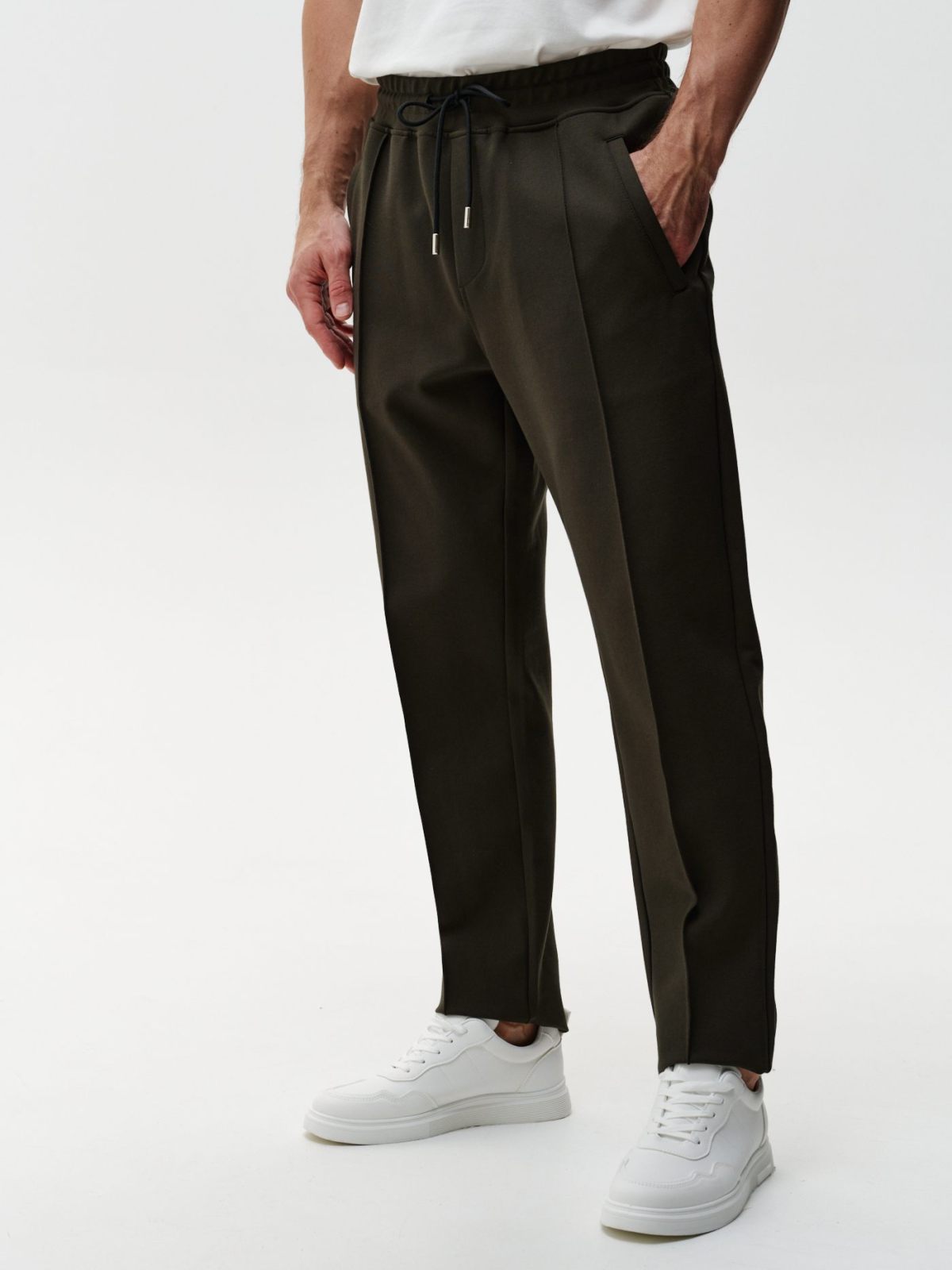 Брюки со стрелками "Генрих" прямого кроя из коллекции Classic в строгом темно-оливковом цвете. Материал - джерси, приятный на ощупь, гладкий, прочный и структурный, отлично держит форму. За счет добавления нейлона в состав материал слегка тянется. Брюки имеют два боковых кармана на молнии, два задних кармана на магнитной кнопке и шнурок в поясе для регулировки посадки. К брюкам в ассортименте представлены два джемпера 3M5CL31E1-15DRK/GRN10 и 3M5CL32E1-15DRK/GRN13. Лаконичный, комфортный костюм в стиле sport casual.