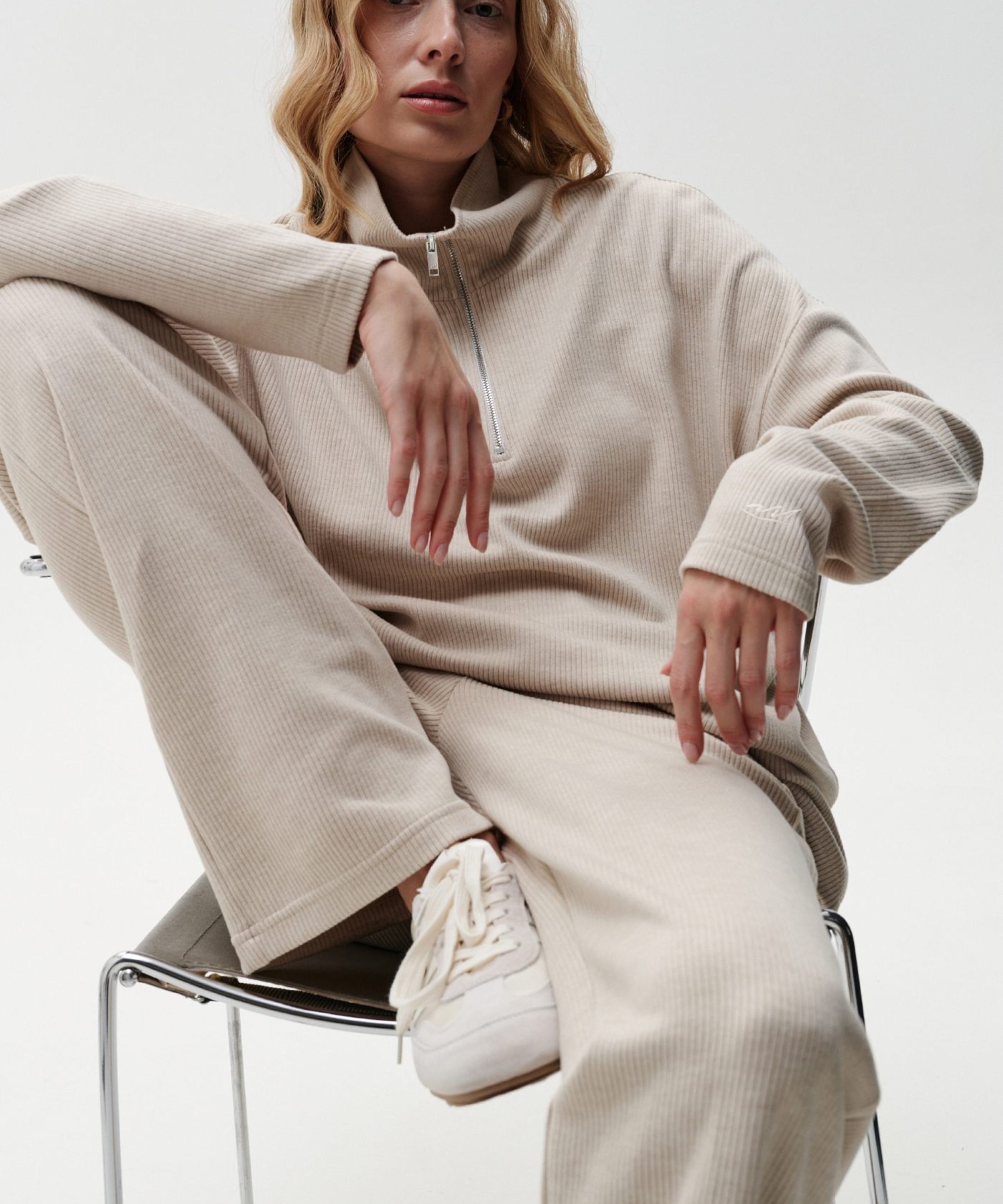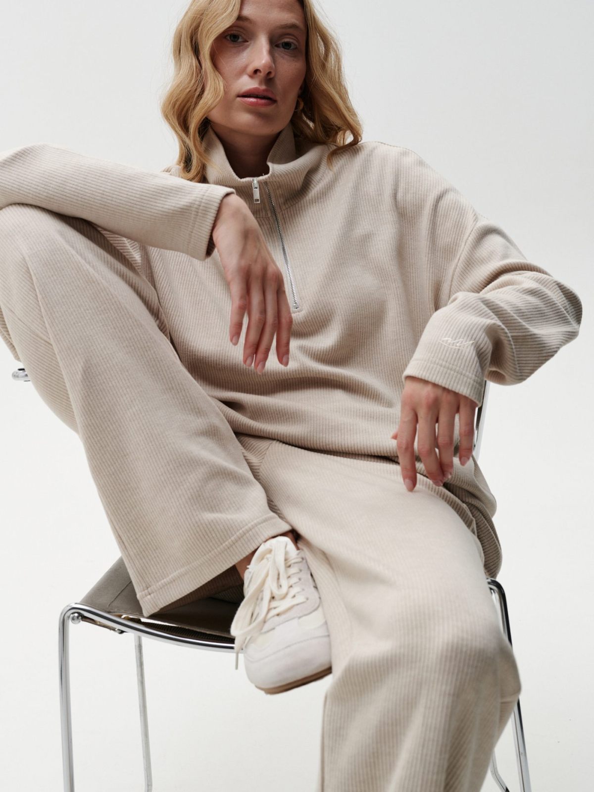 Джемпер "Мария" свободного кроя с воротником-стойкой на молнии из коллекции Softwear выполнен из материала, в составе которого, преимущественно, вискоза и нейлон, за счет чего материал гладкий и приятный на ощупь, слегка тянется, но при этом выглядит фактурно. Расслабленный силуэт, спущенное плечо, пастельный нежный цвет полностью отражают эстетику коллекции Softwear. На левом рукаве расположена тональная вышивка с логотипом бренда. К джемперу в ассортименте представлены широкие брюки "Мария" 2W4SW84E1 и велосипедки 2W4SW93W. Невероятно комфортный, мягкий и стильный костюм на каждый день. Важно: материал имеет низкую пиллингуемость, но частое соприкосновение с аксессуарами может привести к образованию пилли.