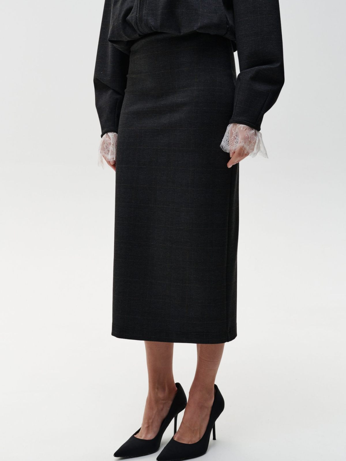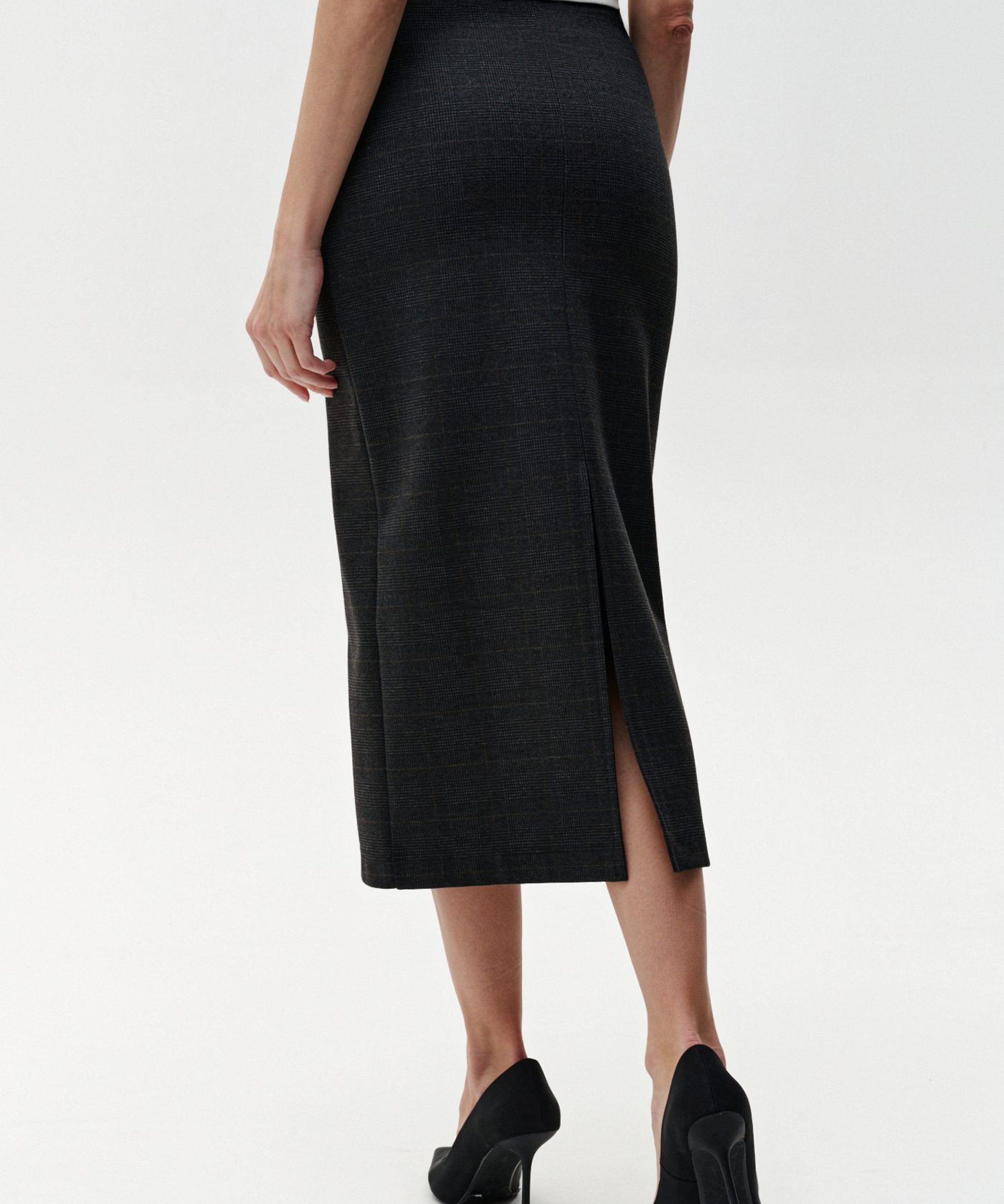 Удлиненная юбка-карандаш "Моника" из коллекции Office Core в трендовой приглушенной клетке. Материал - джерси, приятный на ощупь, гладкий, прочный и структурный, отлично держит форму. Пояс на резинке. Сзади имеется лаконичный разрез, что добавляет комфорта при ходьбе. Данная модель относится к костюму тройке "Моника", в который так же входят худи 2W3OC34E1-15MLT69 и жилетка 1W2OC21W-15MLT69. Костюм одинаково хорош как для офиса, так и для повседневной носки.