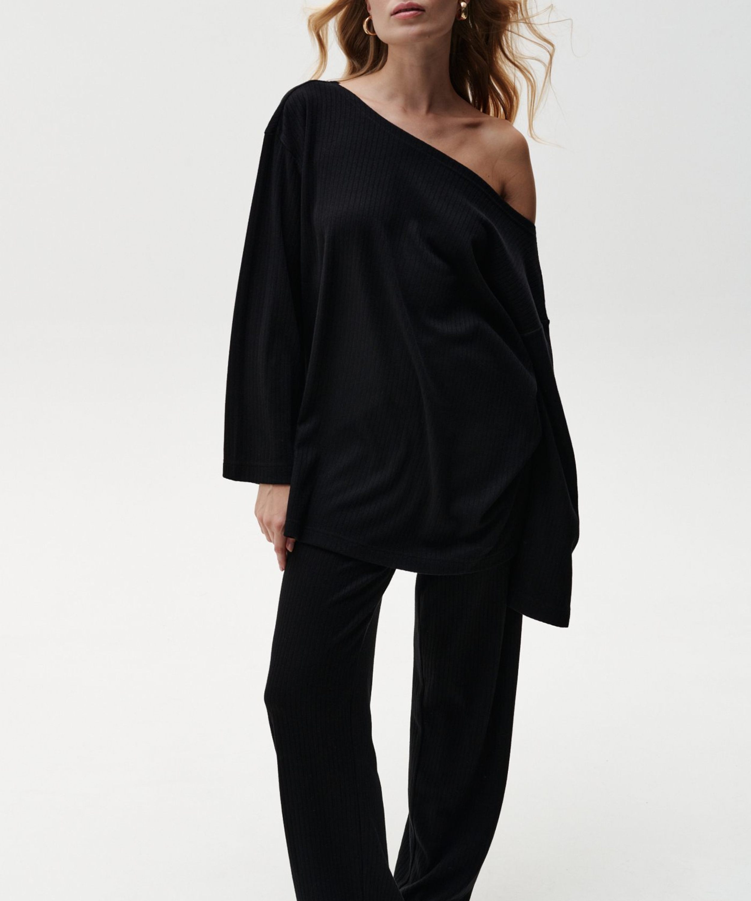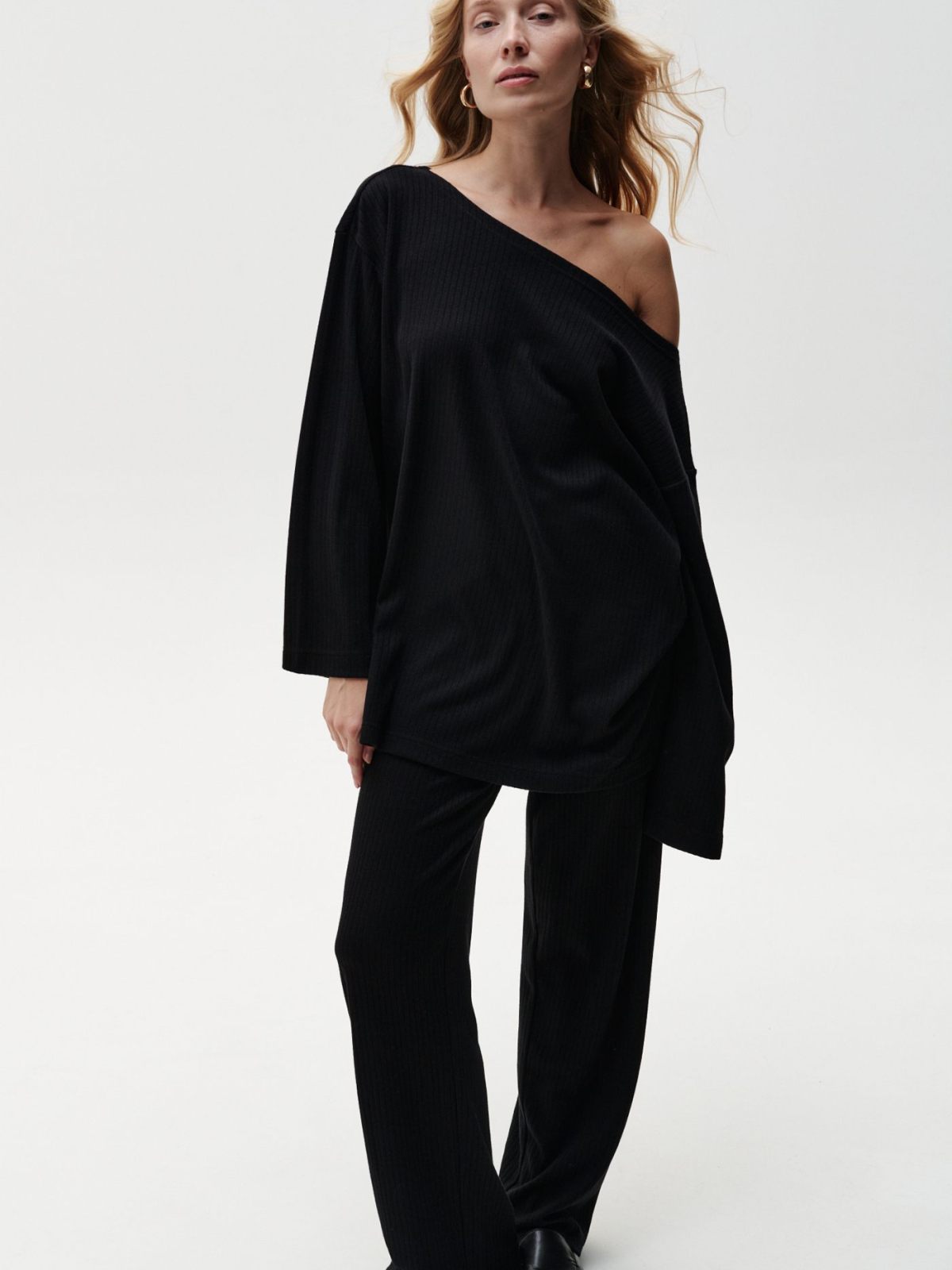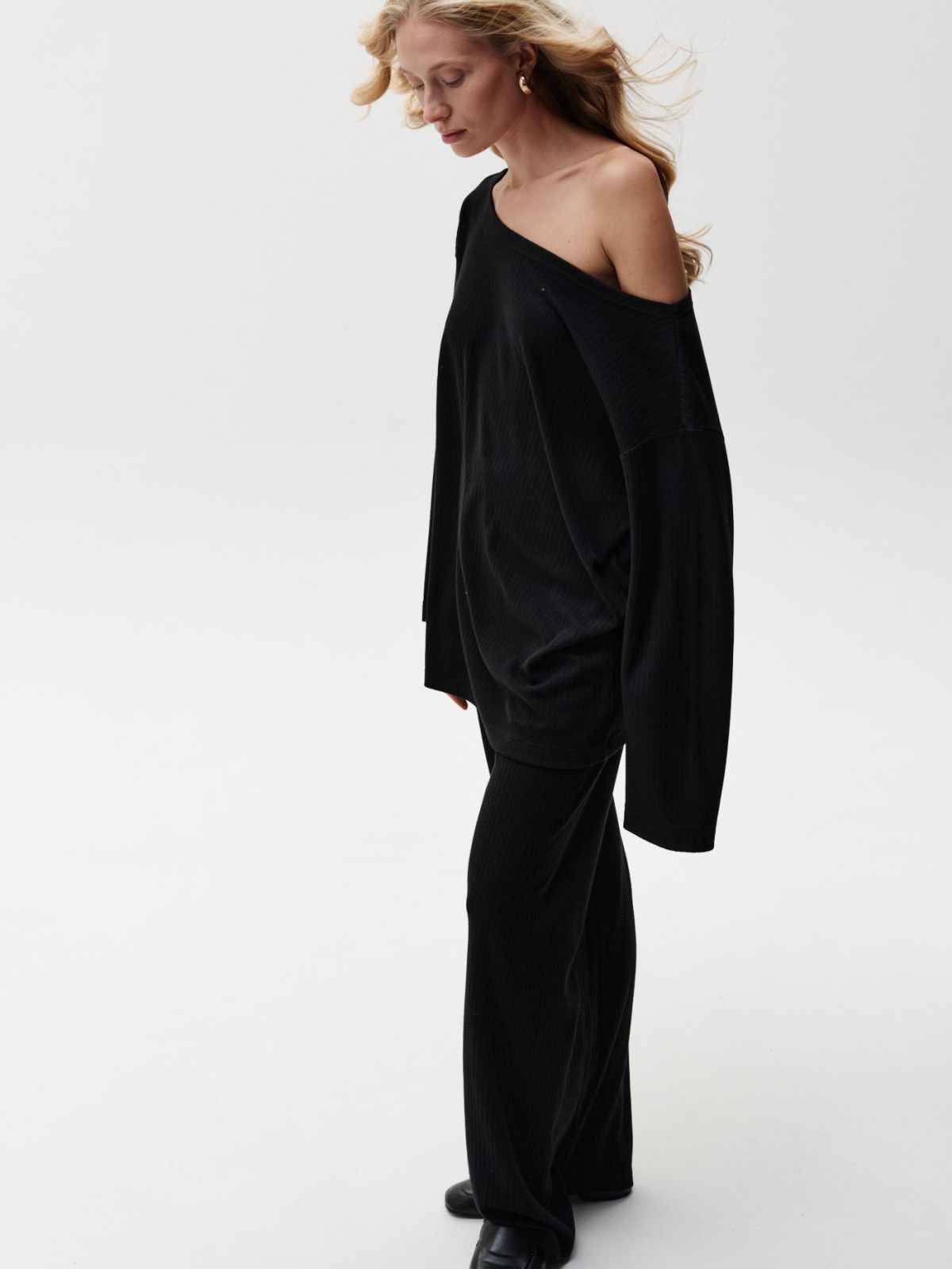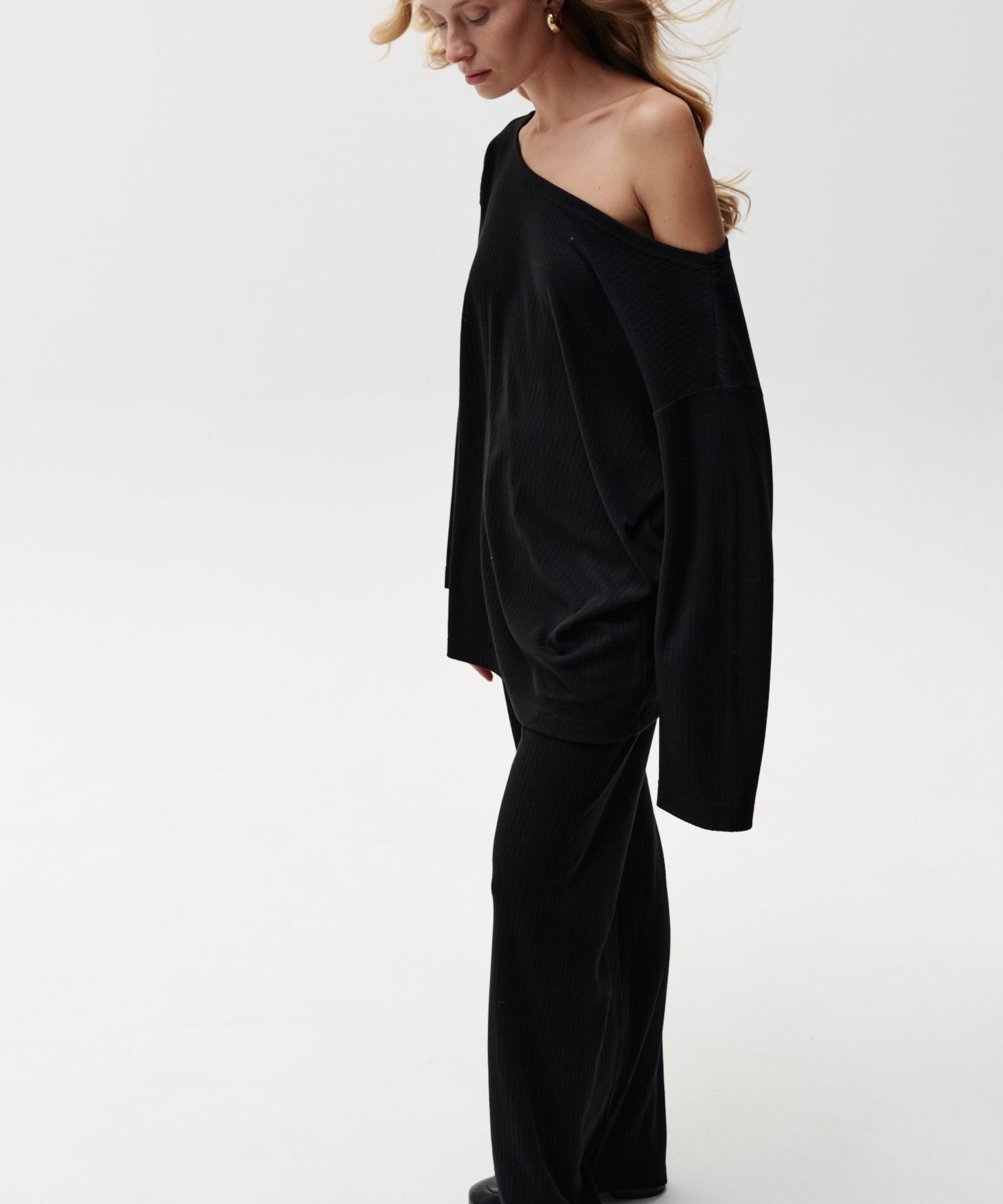 Широкие брюки "Грей" из коллекции Softwear выполнены из мягкого материала, в составе которого, преимущественно, вискоза. Лаконичный строгий черный цвет, интересный крой, приятный к телу материал. В ассортименте к брюкам представлены два верха на выбор: лонгслив 2W4SW48E1-25BLK71 и худи 2W4SW36E1-25BLK72. Уютный комфортный костюм для вашего динамичного ритма в течение дня. Важно: материал имеет низкую пиллингуемость, но частое соприкосновение с аксессуарами может привести к образованию пилли.