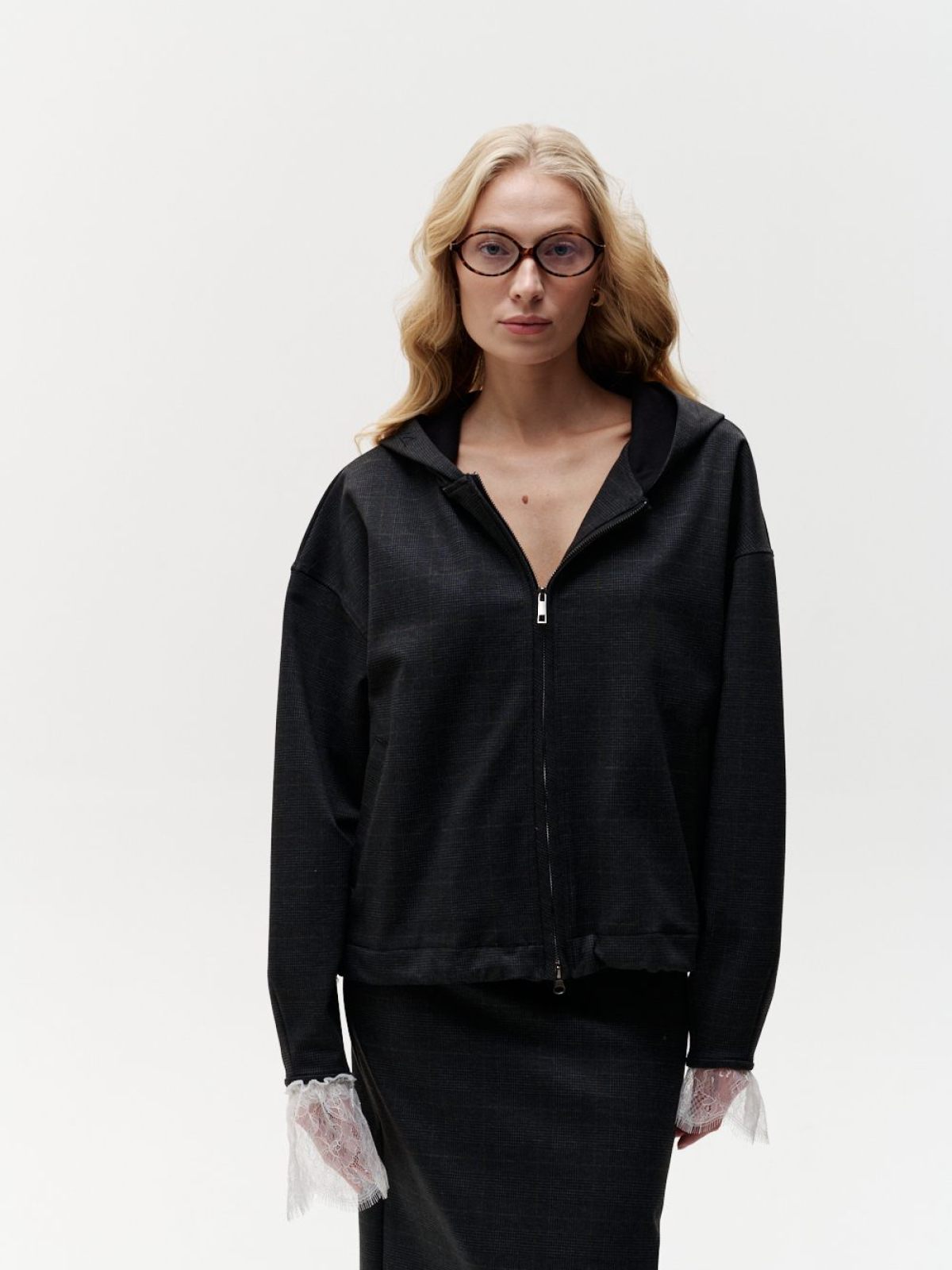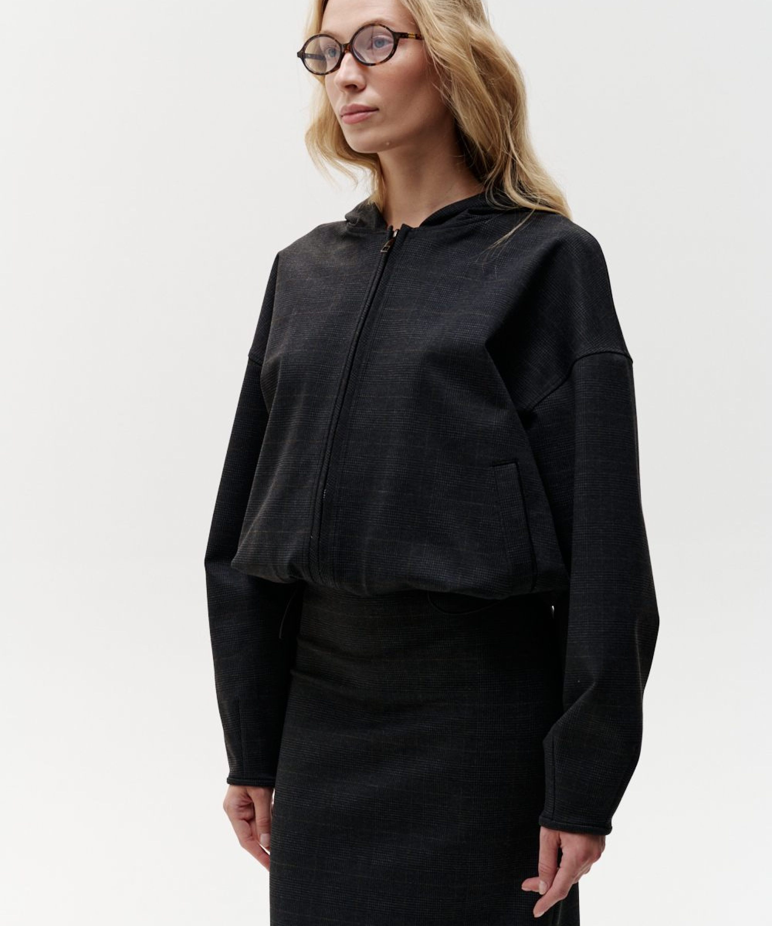 Худи "Моника" из коллекции Office Core в трендовой приглушенной клетке. Материал - джерси, приятный на ощупь, гладкий, прочный и структурный, отлично держит форму. Худи имеет два боковых кармана, корд-систему по низу для стилизации и регулировки, лаконичную тональную вышивку на капюшоне с логотипом бренда и двухзамковую брендированную молнию. Данная модель относится к костюму тройке "Моника", в который так же входят юбка-карандаш 1W3OC123W-15MLT69 и жилетка 1W2OC21W-15MLT69. Костюм одинаково хорош как для офиса, так и для повседневной носки.