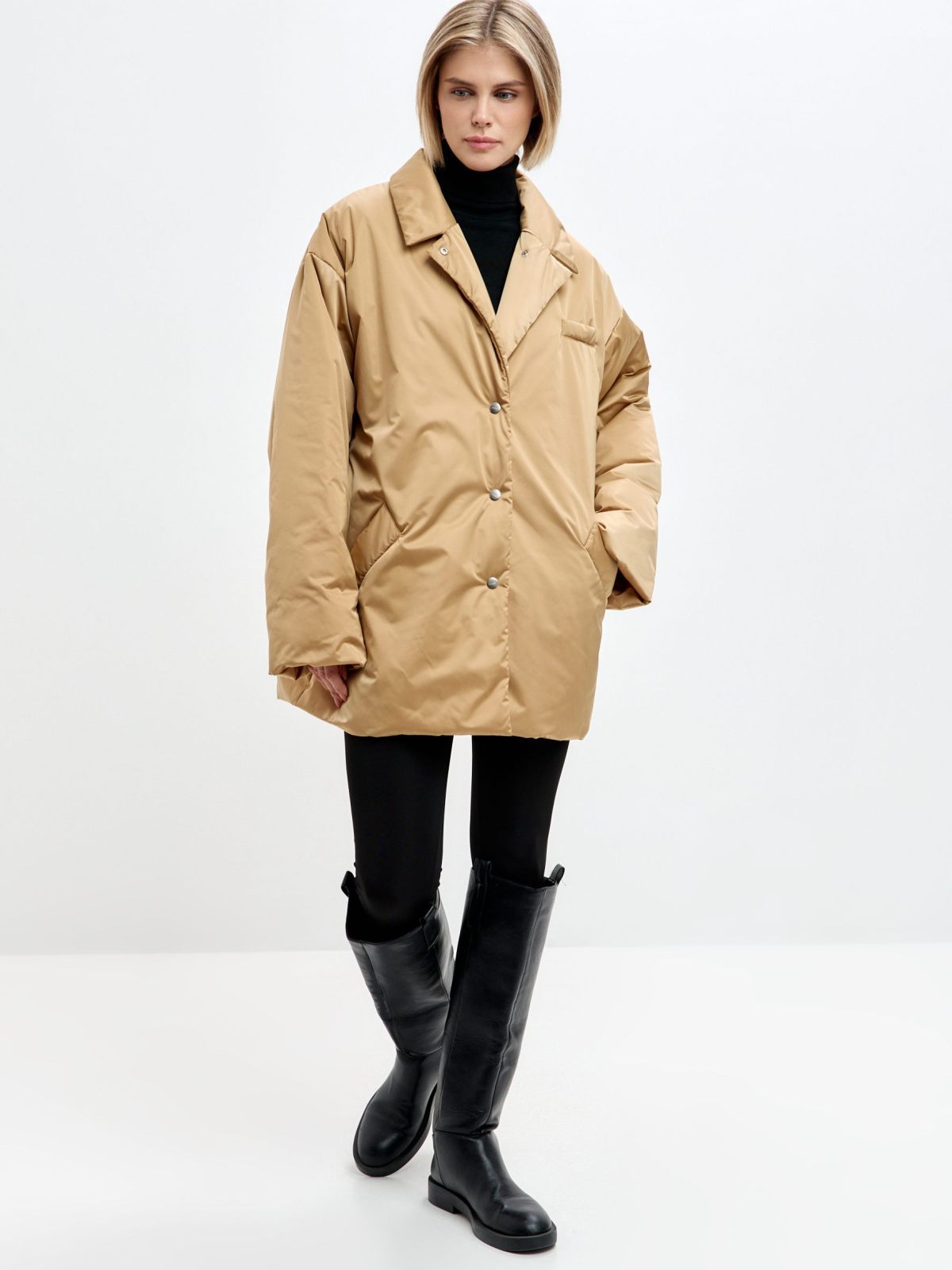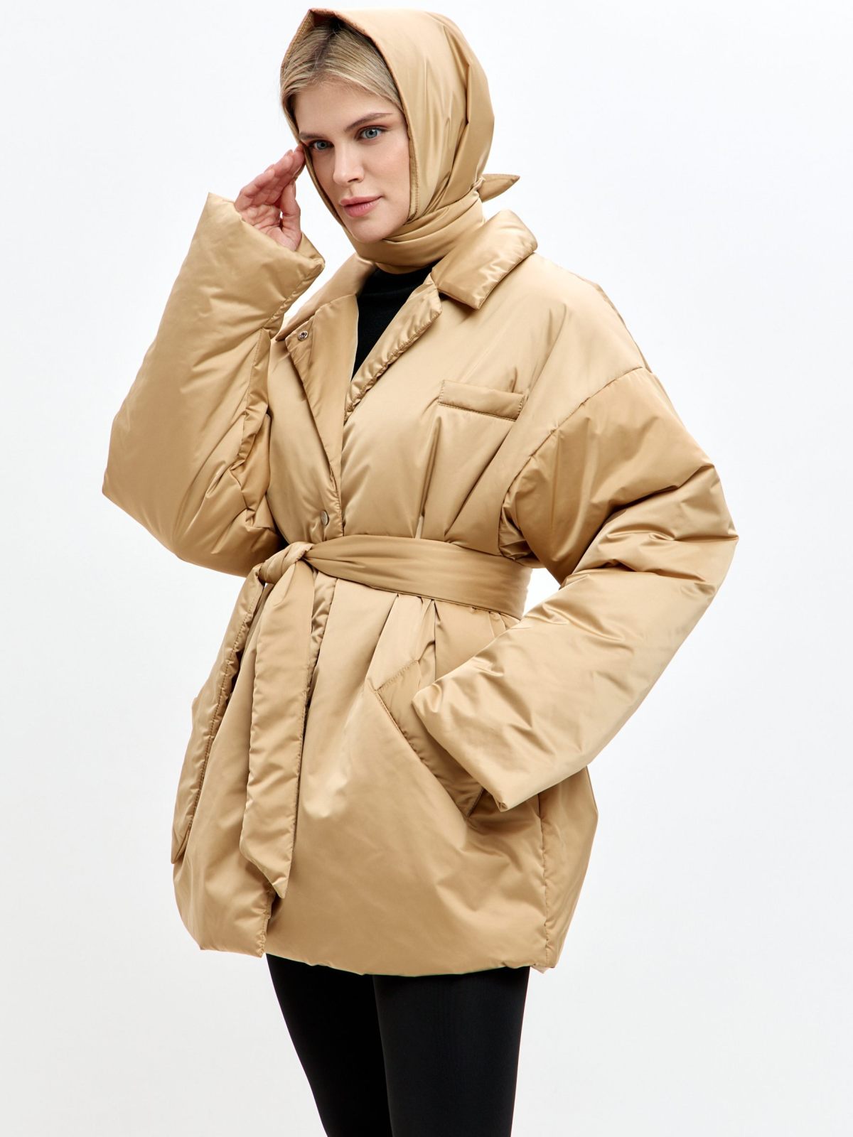 Утепленное пальто Oversize "Ксю" на кнопках и поясе. Пальто не имеет шлевок, что позволяет носить его без пояса, но в то же время на поясе есть кнопка, с помощью которой можно прикрепить его к пальто, чтобы не потерять. Пальто рассчитано на городскую зиму с температурой до -17гр. Утеплитель Тинсулейт очень легкий, воздушный и эластичный, за счет чего пальто кажется легким и мягким, как облачко, но при этом инновационные свойства данного утеплителя делают его очень теплым, его преимущество - это максимум тепла и минимум веса. Не вызывает аллергии, подходит людям с чувствительной кожей. Пальто имеет два больших кармана. В ассортименте к пальто представлены утепленные косынки 1W8PR143W. Комплекты выполнены в трех трендовых оттенках: ледяной голубой, ртуть и золото.