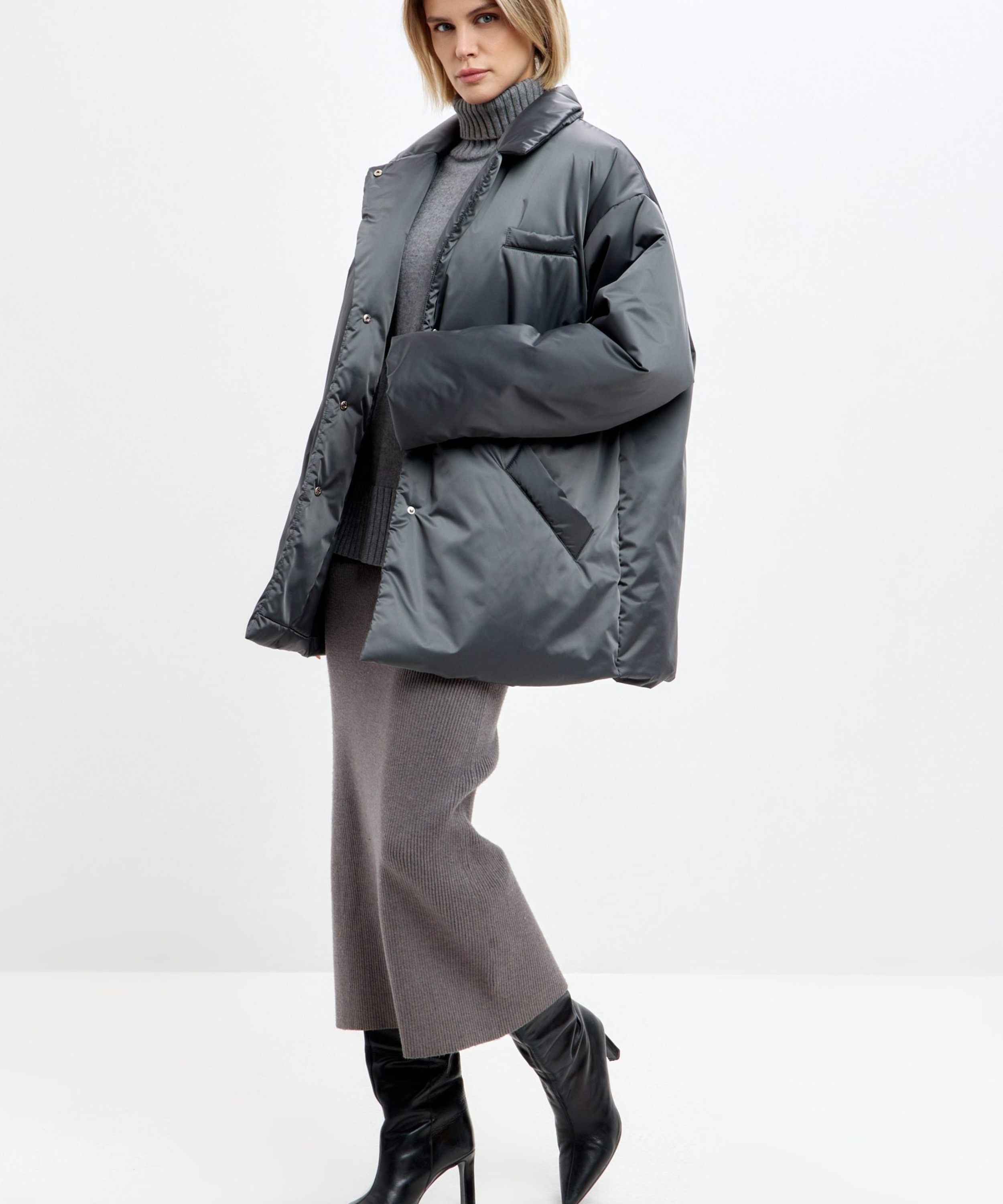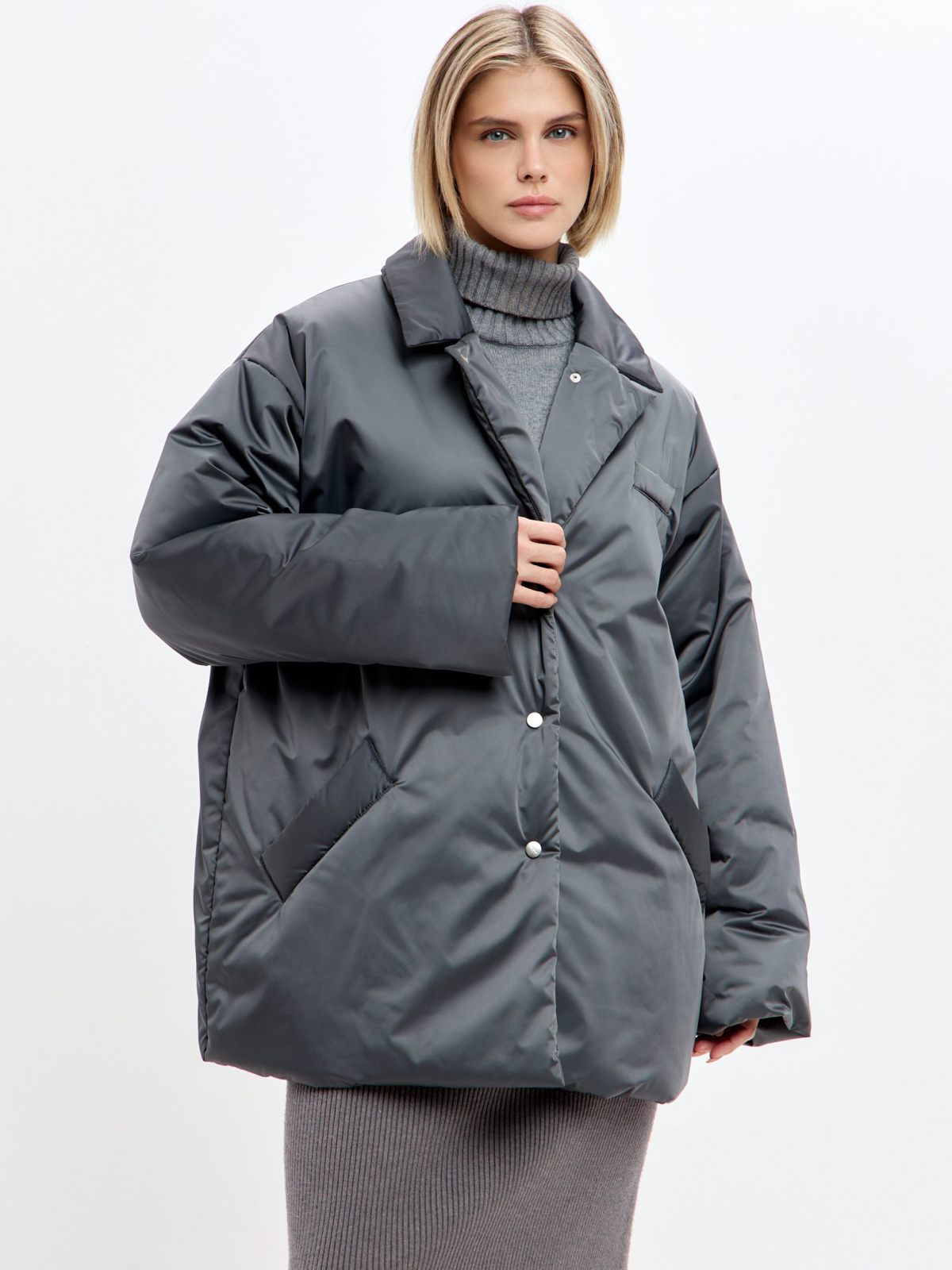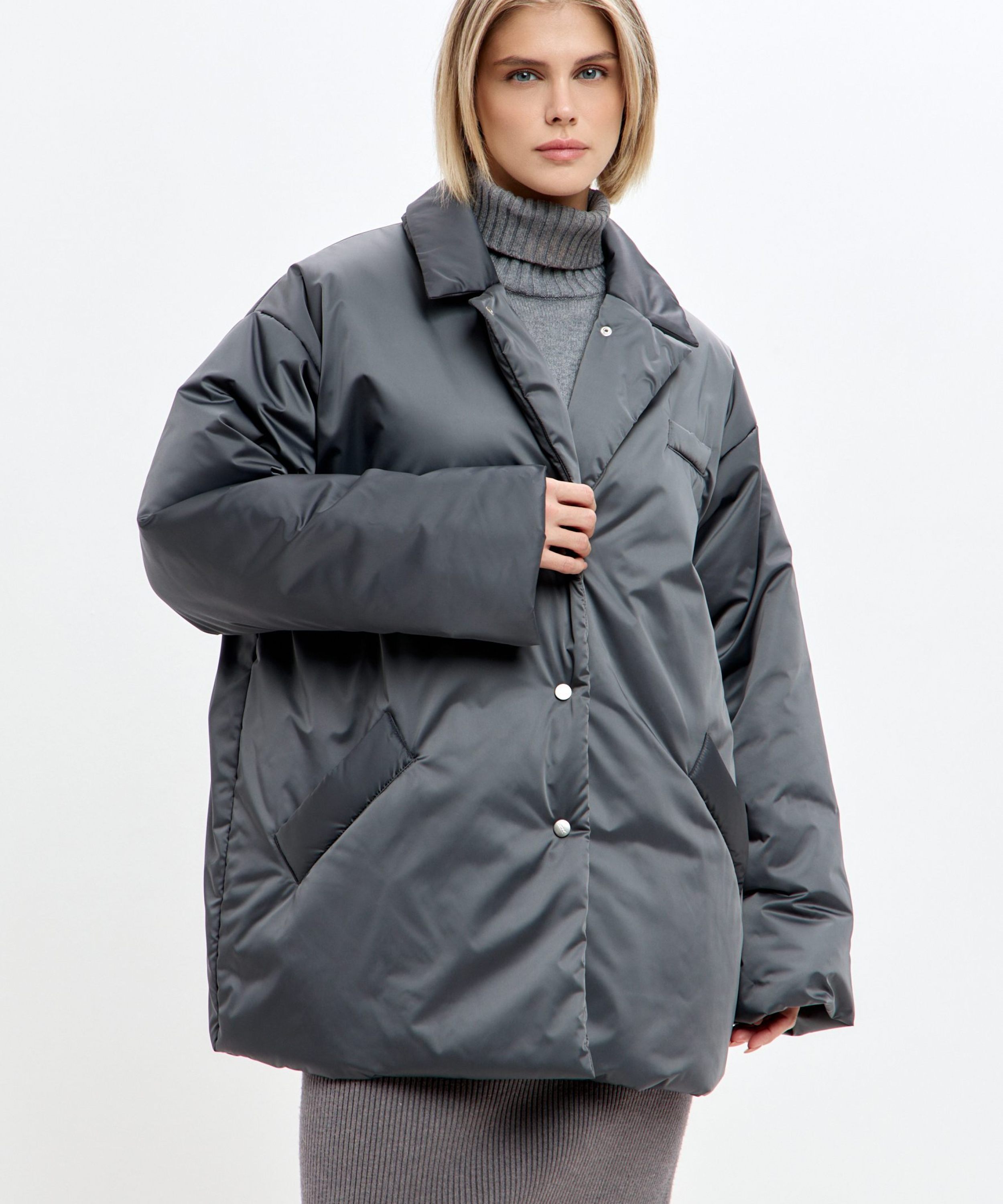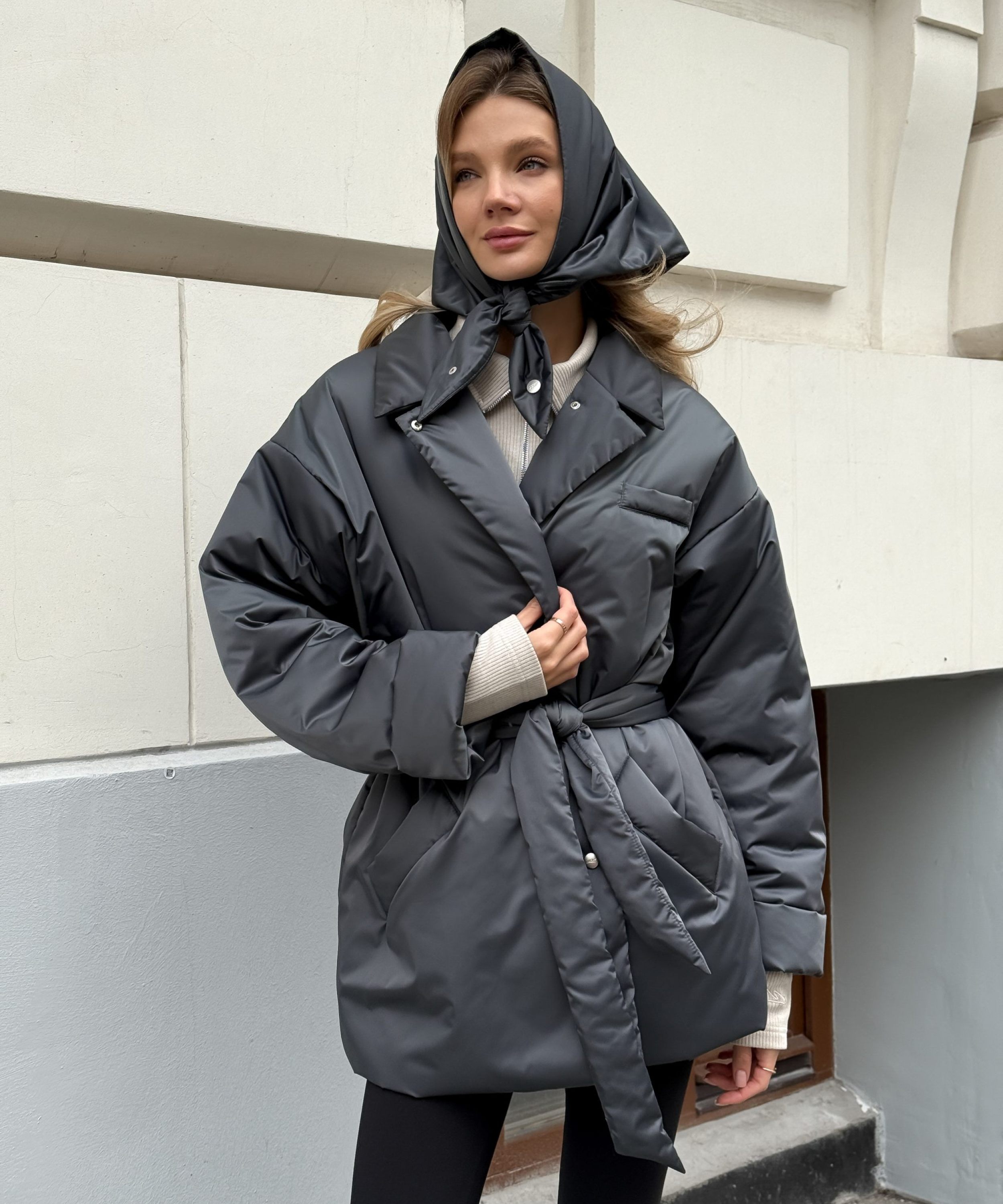 Утепленное пальто Oversize "Ксю" на кнопках и поясе. Пальто не имеет шлевок, что позволяет носить его без пояса, но в то же время на поясе есть кнопка, с помощью которой можно прикрепить его к пальто, чтобы не потерять. Пальто рассчитано на городскую зиму с температурой до -17гр. Утеплитель Тинсулейт очень легкий, воздушный и эластичный, за счет чего пальто кажется легким и мягким, как облачко, но при этом инновационные свойства данного утеплителя делают его очень теплым, его преимущество - это максимум тепла и минимум веса. Не вызывает аллергии, подходит людям с чувствительной кожей. Пальто имеет два больших кармана. В ассортименте к пальто представлены утепленные косынки 1W8PR143W. Комплекты выполнены в трех трендовых оттенках: ледяной голубой, ртуть и золото.