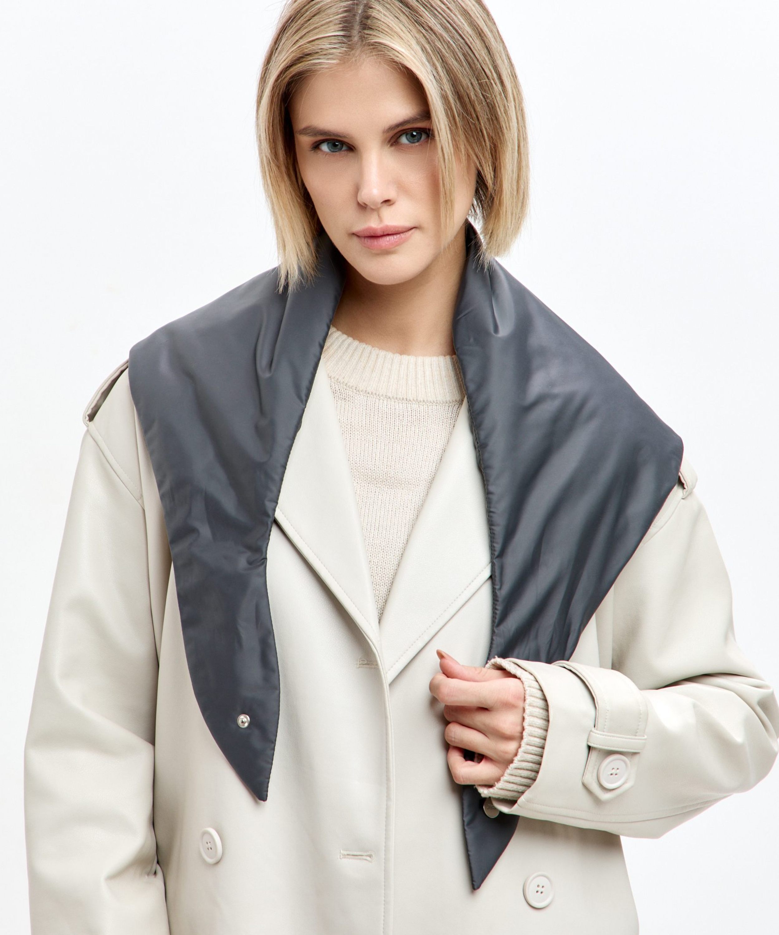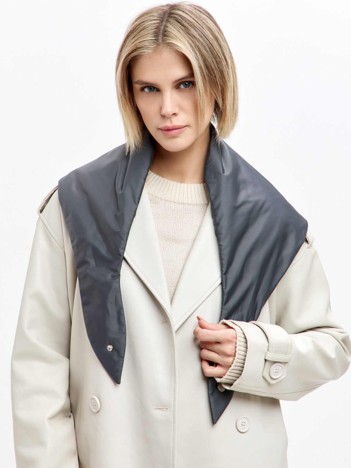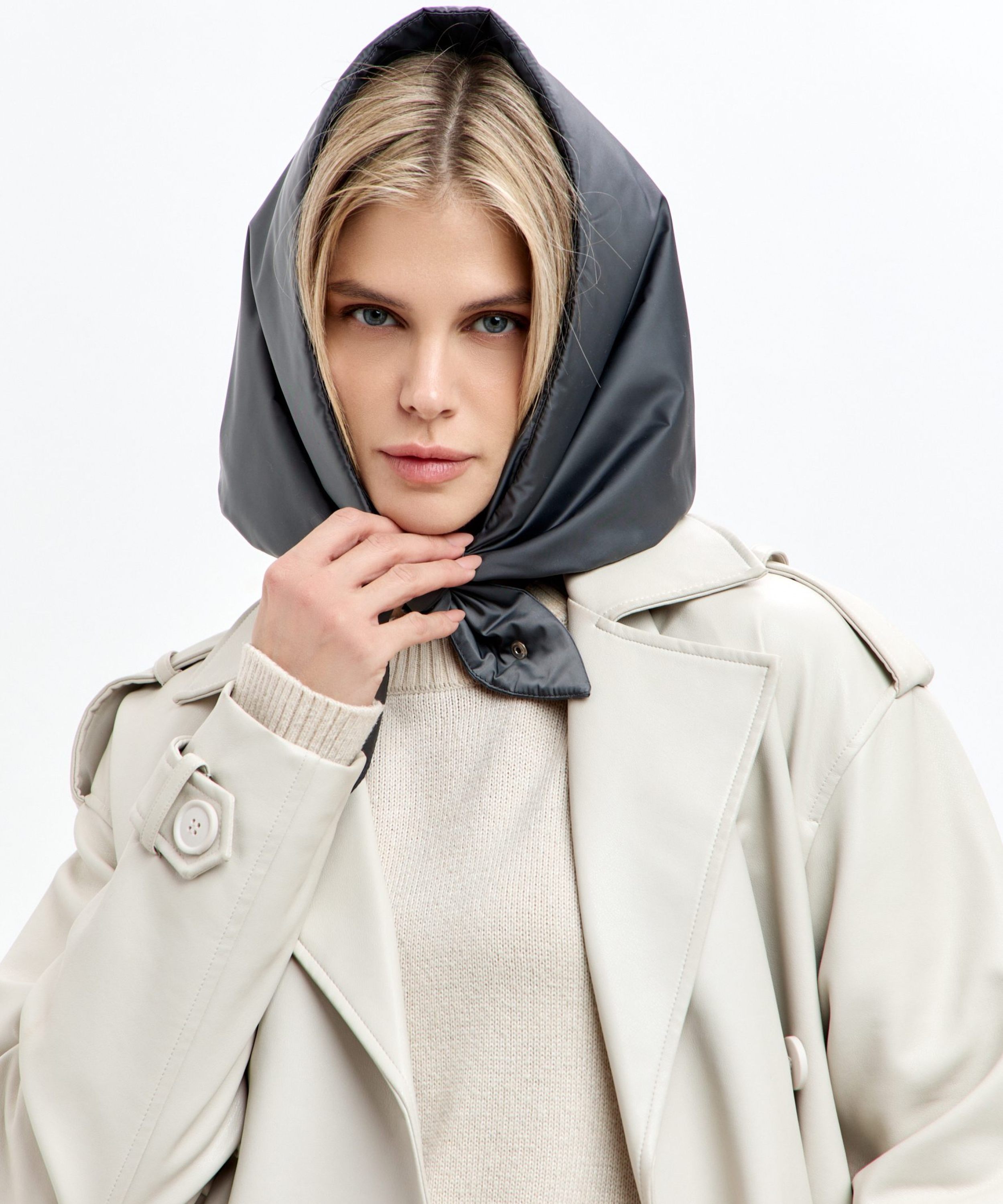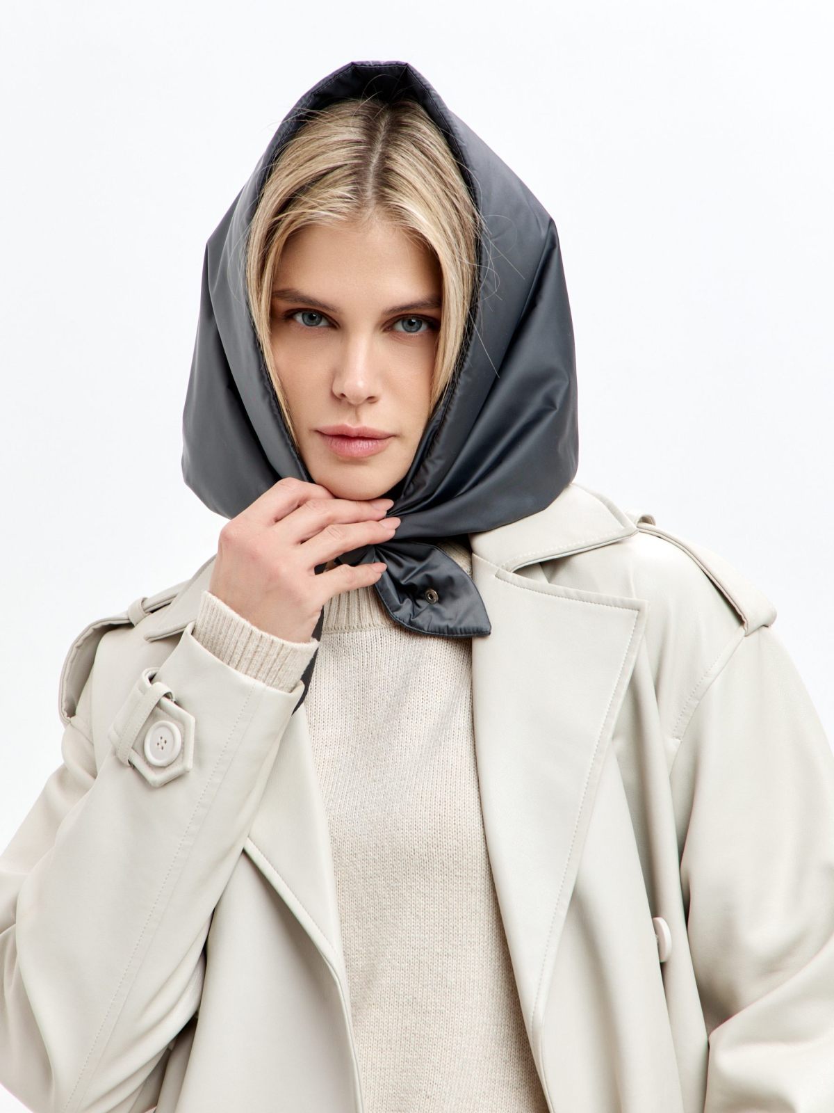 Утепленная косынка на кнопке "Ксю". Косынку можно просто завязать спереди на игривый узел, а можно обернуть вокруг шеи и застегнуть на кнопку, чтобы обеспечить защиту от ветра. Утеплитель Сиберия Микро обладает хорошей теплоизоляцией, воздухопроницаемостью, легкостью и тонкостью, поэтому несмотря на то, что косынка утепленная, она тонкая и легкая. Не вызывает аллергии, подходит людям с чувствительной кожей. В ассортименте к косынке представлены пальто 1W8PR110W. Комплекты выполнены в трех трендовых оттенках: ледяной голубой, ртуть и золото.
