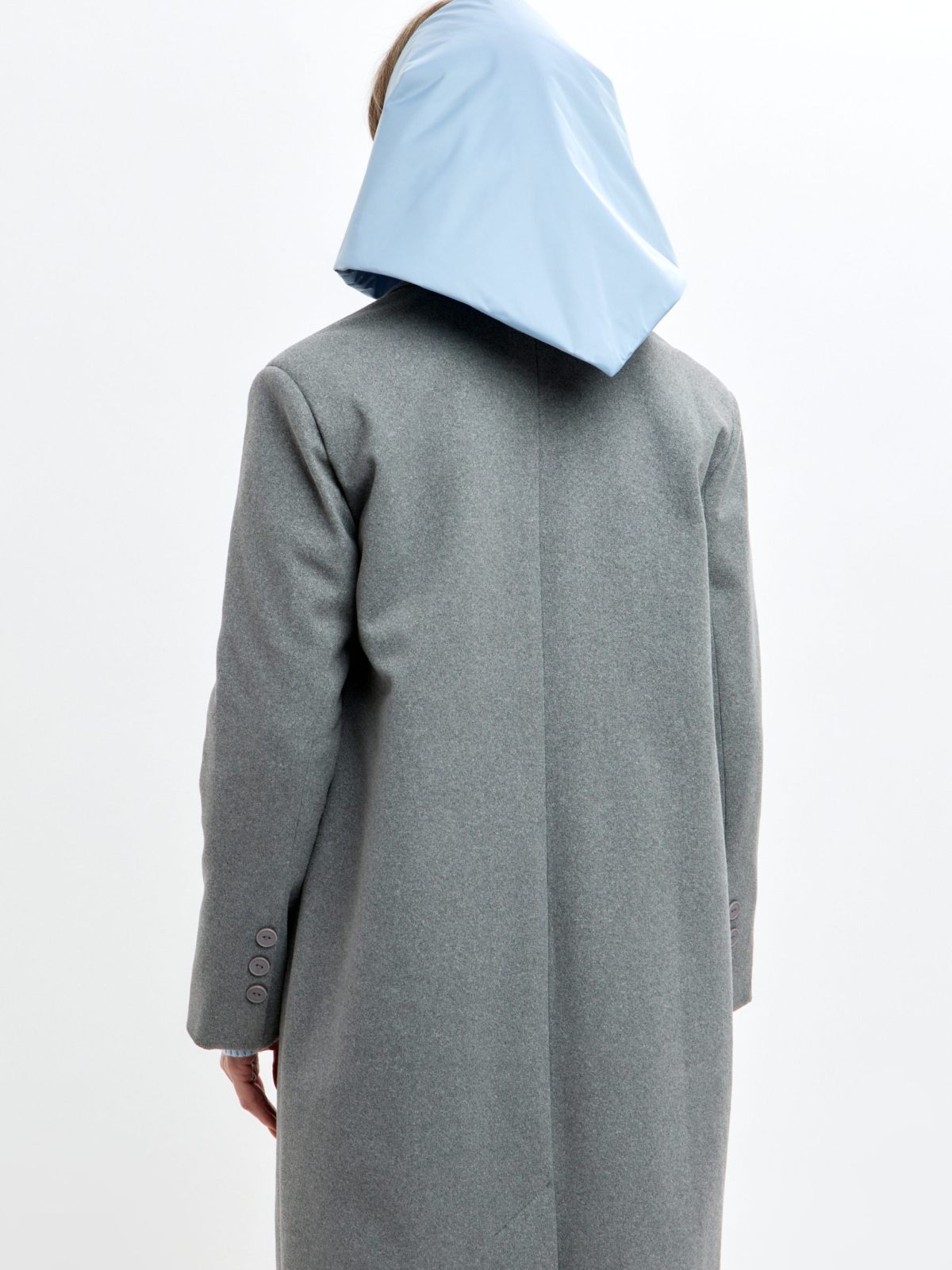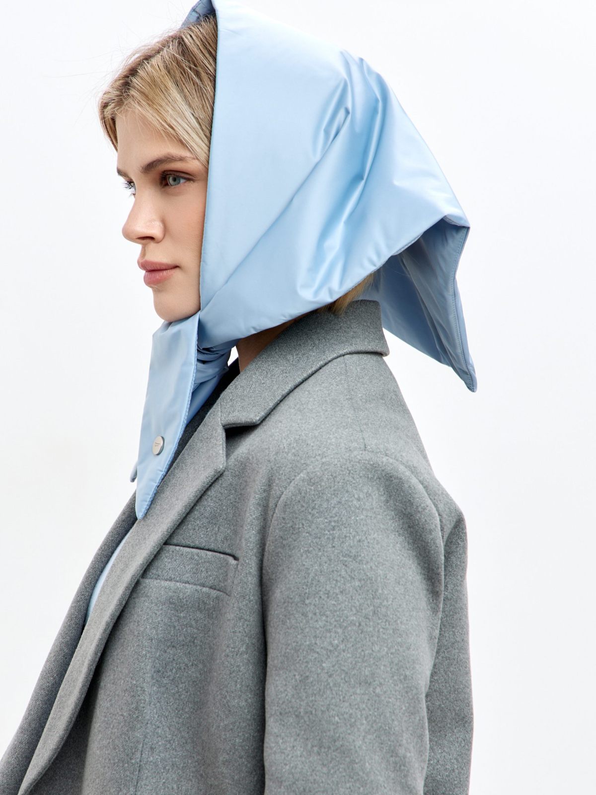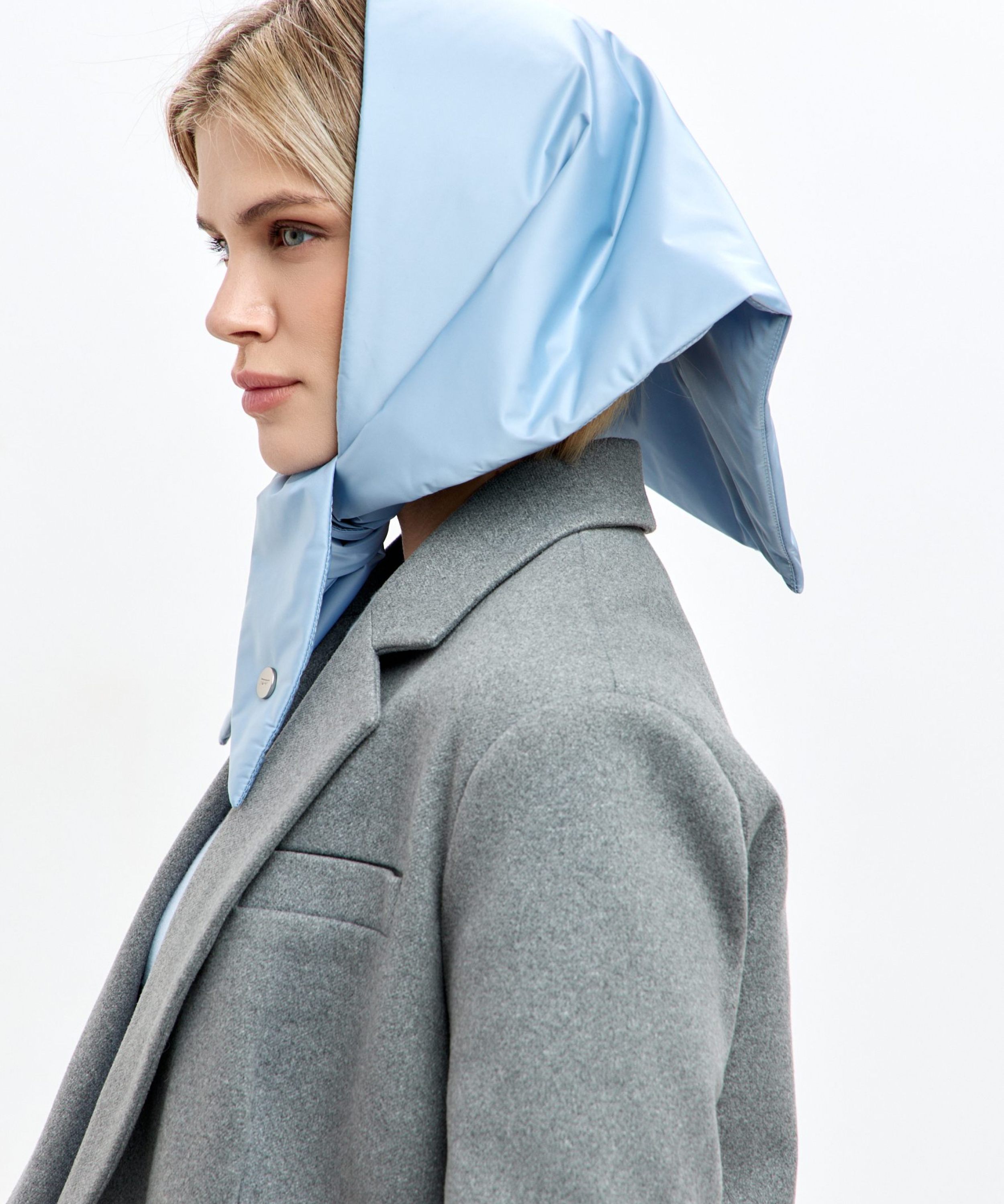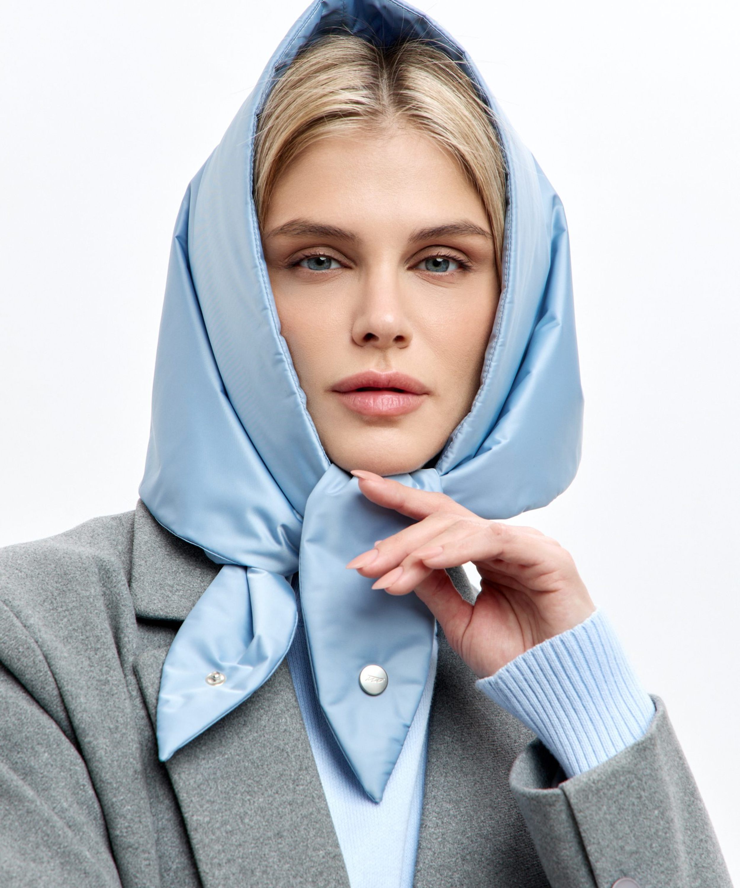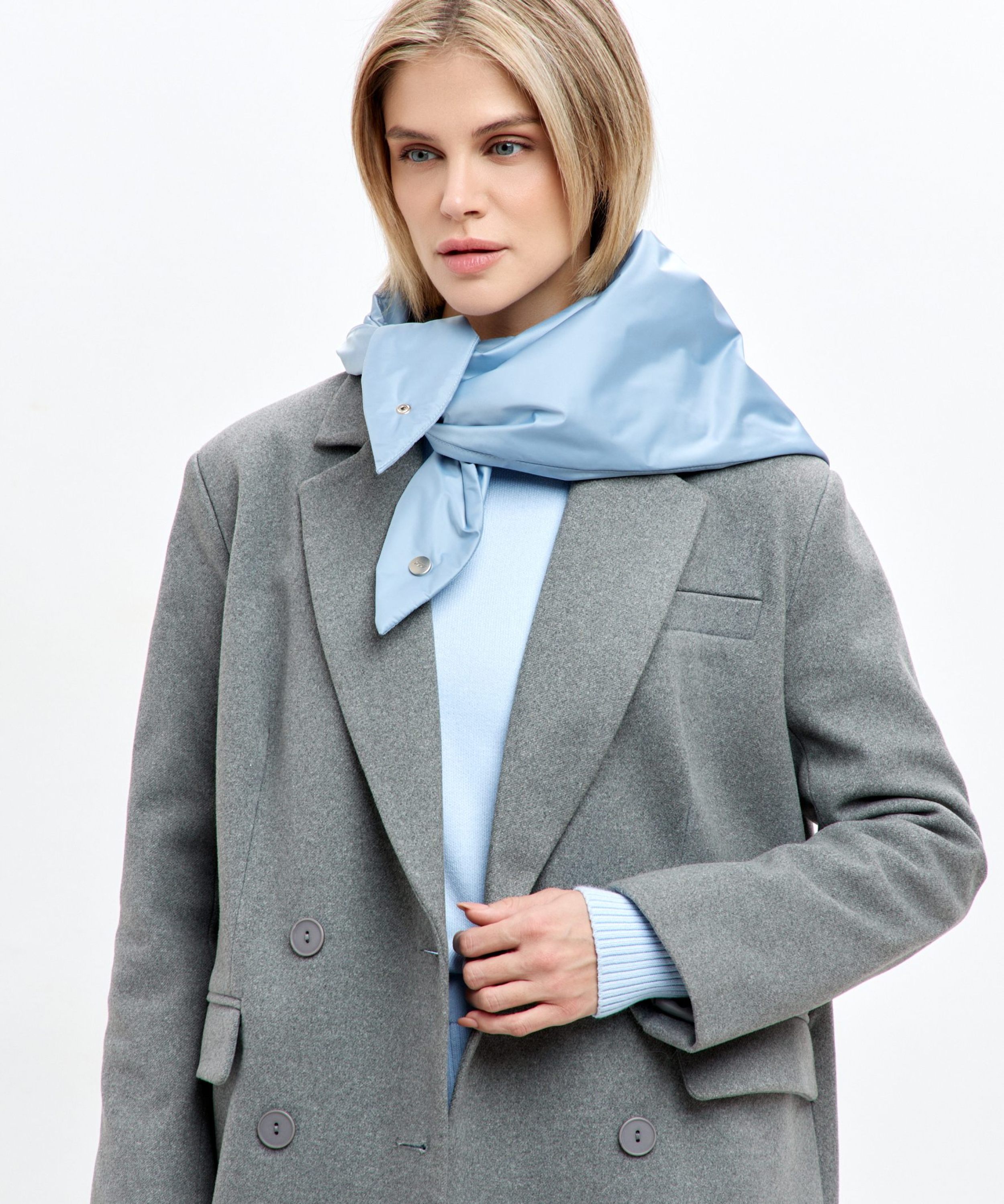 Утепленная косынка на кнопке "Ксю". Косынку можно просто завязать спереди на игривый узел, а можно обернуть вокруг шеи и застегнуть на кнопку, чтобы обеспечить защиту от ветра. Утеплитель Сиберия Микро обладает хорошей теплоизоляцией, воздухопроницаемостью, легкостью и тонкостью, поэтому несмотря на то, что косынка утепленная, она тонкая и легкая. Не вызывает аллергии, подходит людям с чувствительной кожей. В ассортименте к косынке представлены пальто 1W8PR110W. Комплекты выполнены в трех трендовых оттенках: ледяной голубой, ртуть и золото.