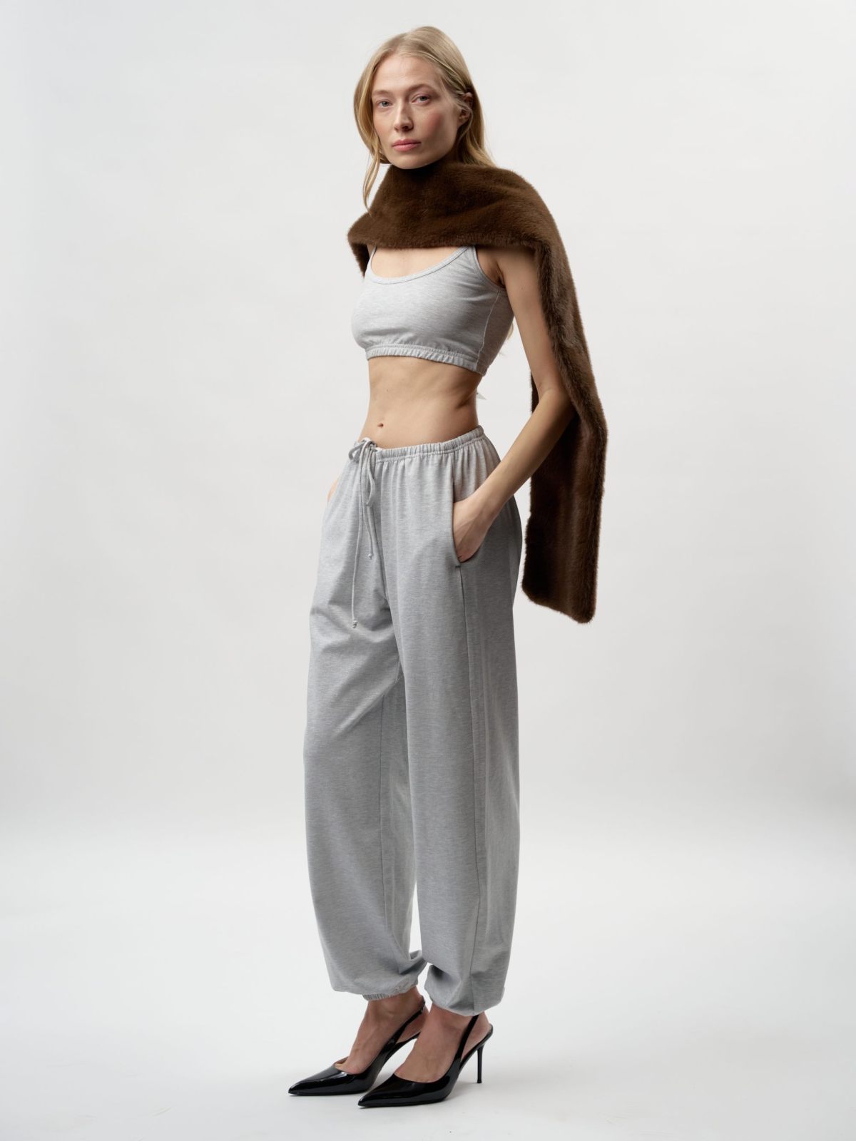 Широкие брюки-джоггеры "Лиза" из коллекции Classic выполнены из материала с большим содержанием хлопка. За счет добавления тонких нитей эластана изделие слегка тянется, что обеспечивает отличную посадку. Пояс на тонкой эластичной резинке. Брюки имеют два боковых кармана. Легкие комфортные стильные брюки - незаменимая вещь вашего гардероба, которую легко сочетать с другими вещами. К брюкам в ассортименте представлены топы 3W5CL71W-10DRK/GRN98 и 3W5CL71W-10GRY/MLG98.