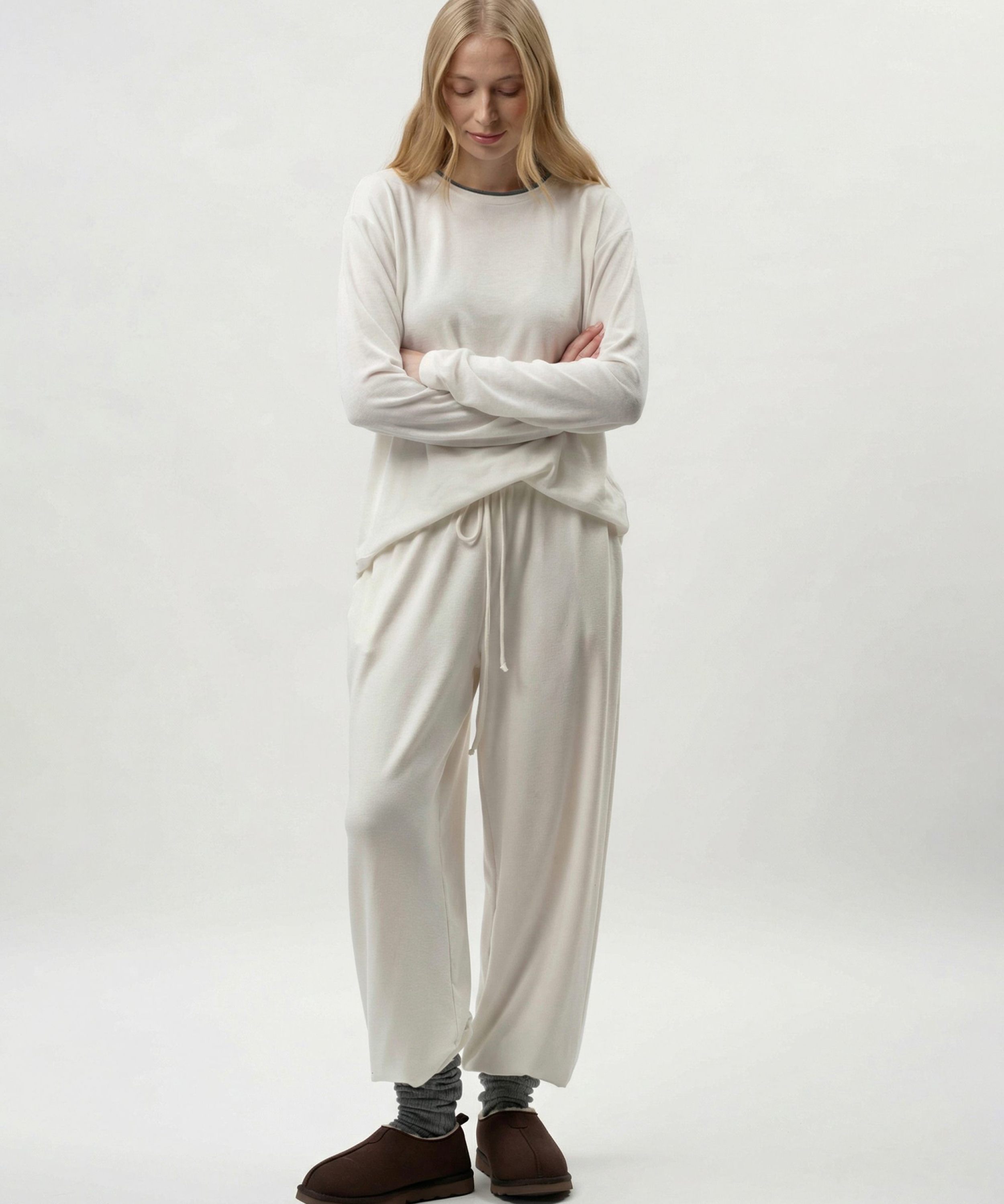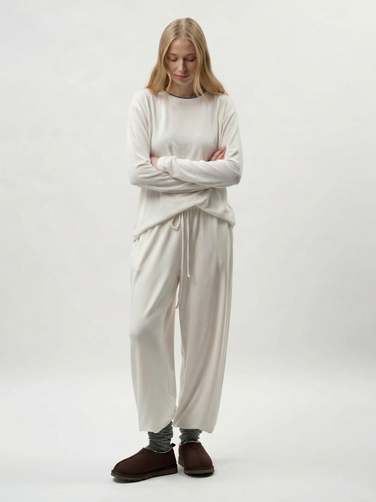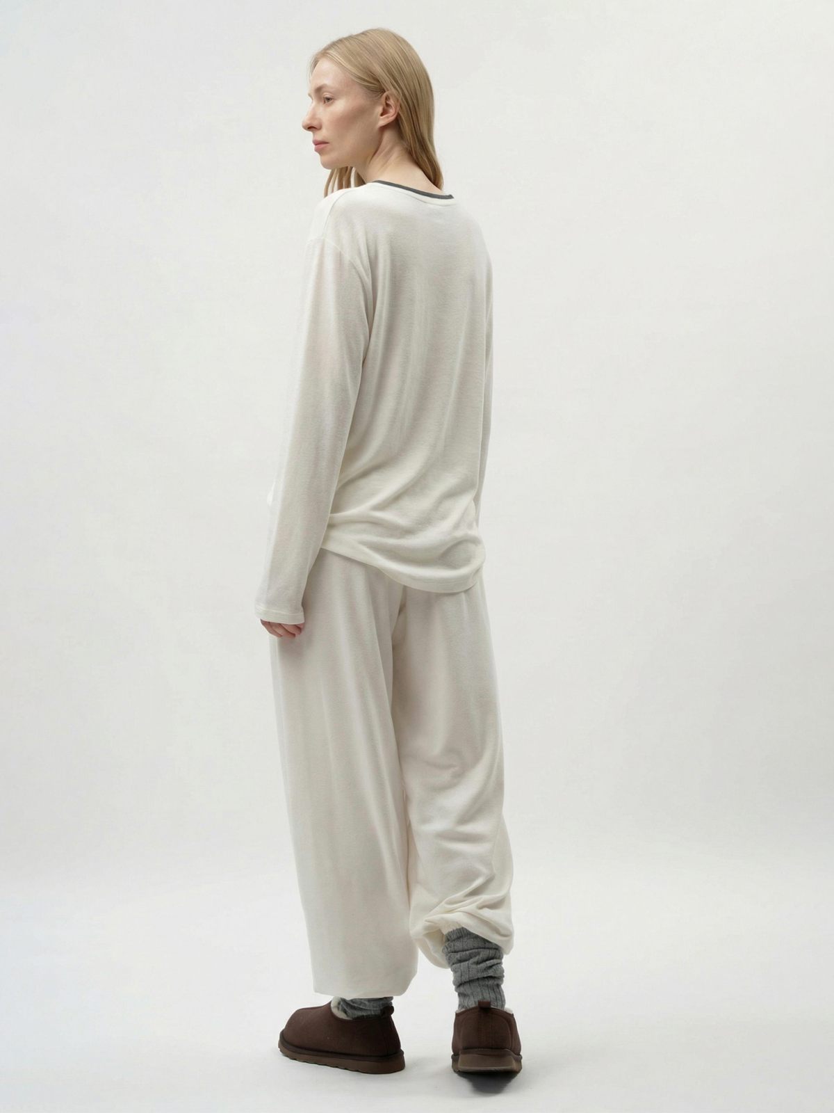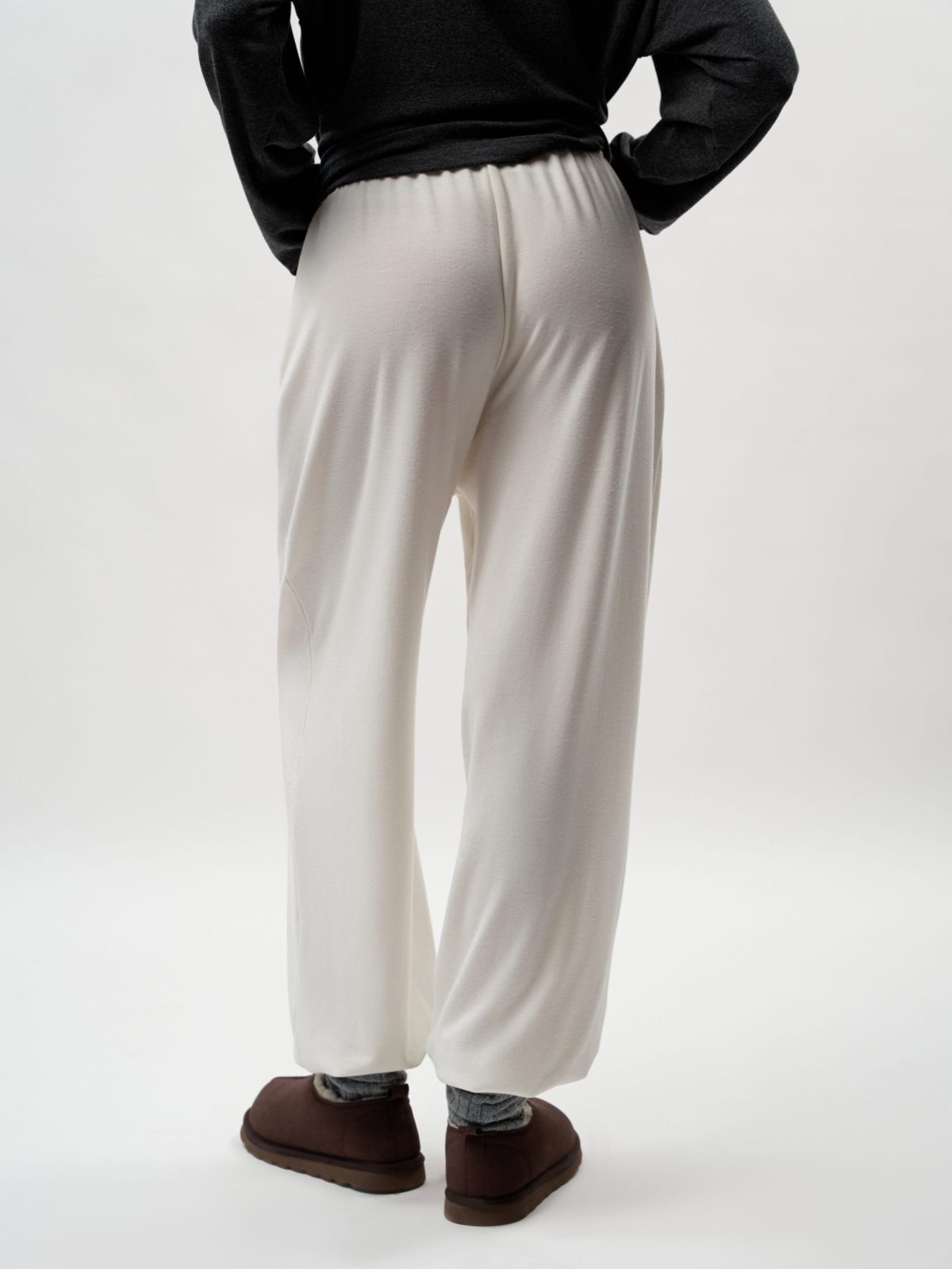 Брюки на резинке "Лиза" свободного кроя из коллекции Softwear выполнены из материала с добавлением кашемира. Такой состав делает изделие легким, мягким и теплым. Их комфортно носить как в холодное время года, так и во время смены сезонов. Пояс на узкой эластичной резинке для комфортной посадки, шнуровка из основного материала, в серой цветоверсии есть два боковых кармана, в белой - нет. Базовая, но стильная и незаменимая вещь для создания повседневных образов. В комплекте к брюкам в ассортименте представлены лонгсливы "Лиза" SBW4SW33E1-37DRK/MLG98 и SBW4SW33E1-37ECR98. Можно выбрать однотонный костюм, а можно комбинировать разные цвета в одном комплекте. Важно: материал имеет низкую пиллингуемость, но частое соприкосновение с аксессуарами может привести к образованию пилли. Рекомендуем воспользоваться специальной щеткой или машинкой для их удаления.