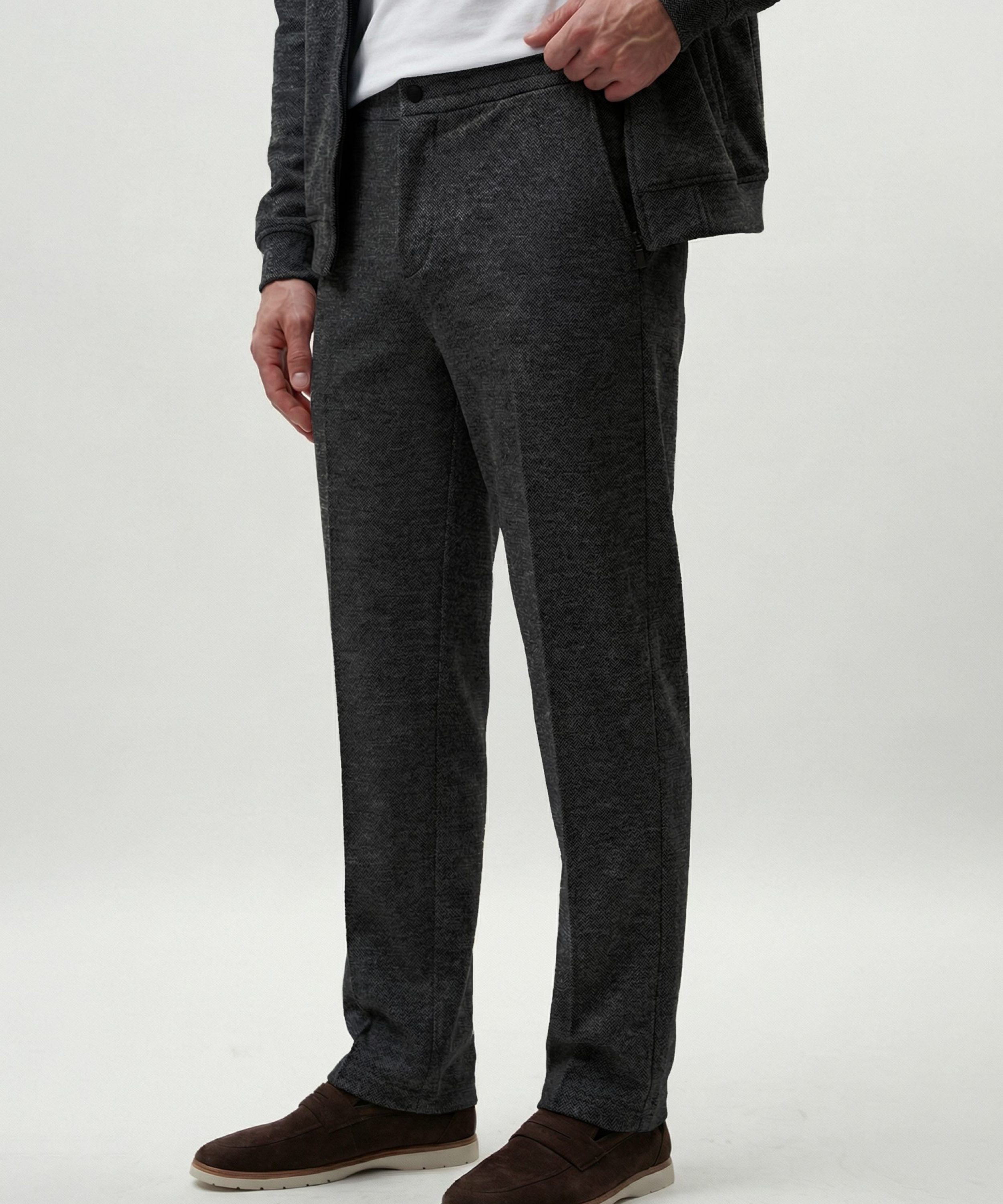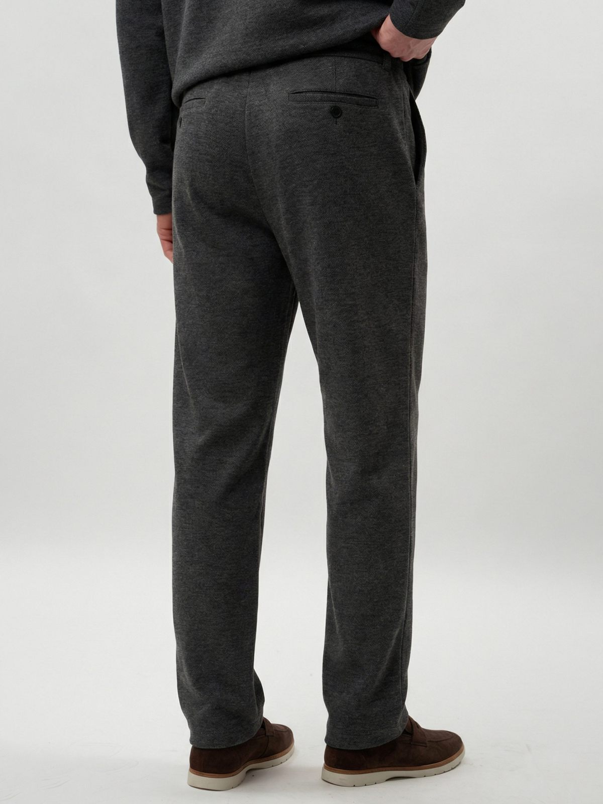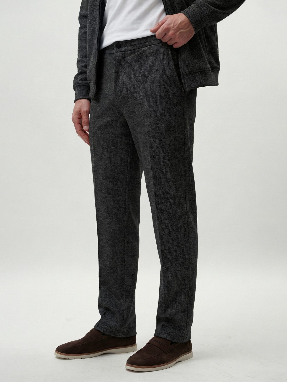Брюки прямого кроя из коллекции Softwear выполнены из мягкого и теплого материала, в составе которого, преимущественно, вискоза, за счет чего материал гладкий и приятный на ощупь, слегка тянется, но при этом выглядит фактурно. Брюки имеют два боковых кармана на молнии, два задних кармана на кнопках, пояс на резинке и кнопке. К брюкам в ассортименте представлен джемпер "Эхо" SBM4SW31E1-25DRK/MLG86 и SBM4SW31E1-25CHO86. Важно: материал имеет низкую пиллингуемость, но частое соприкосновение с аксессуарами может привести к образованию пилли.