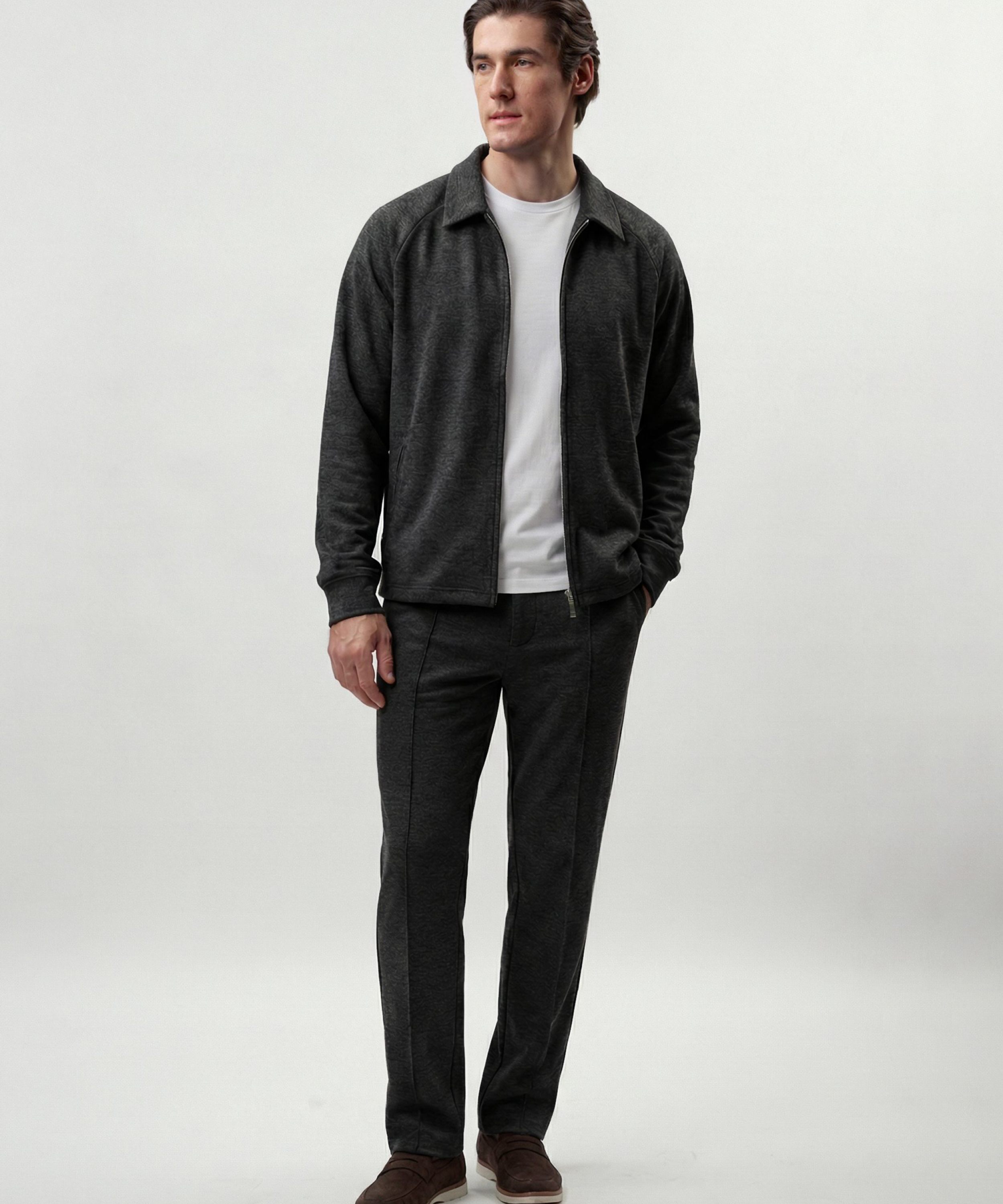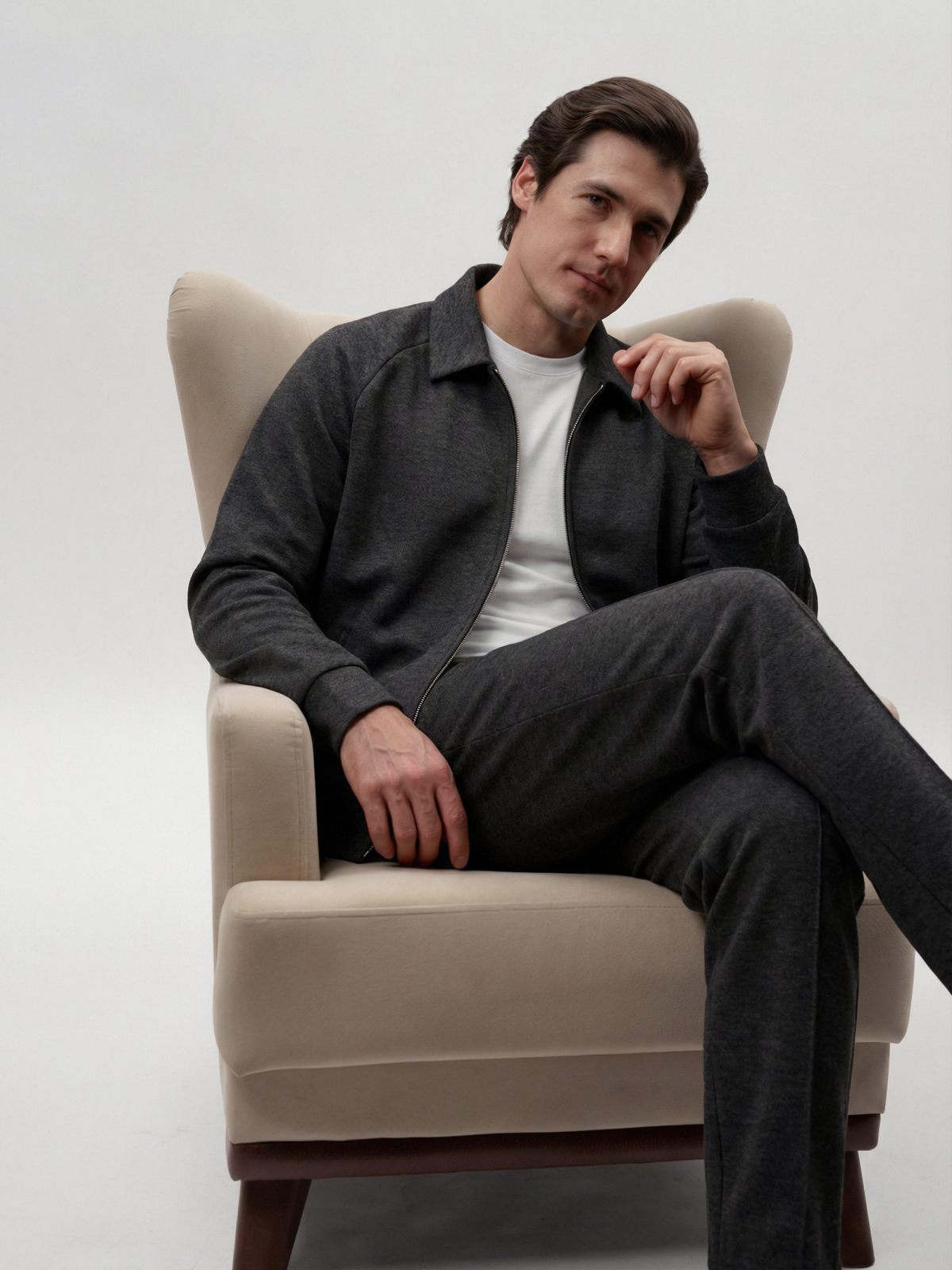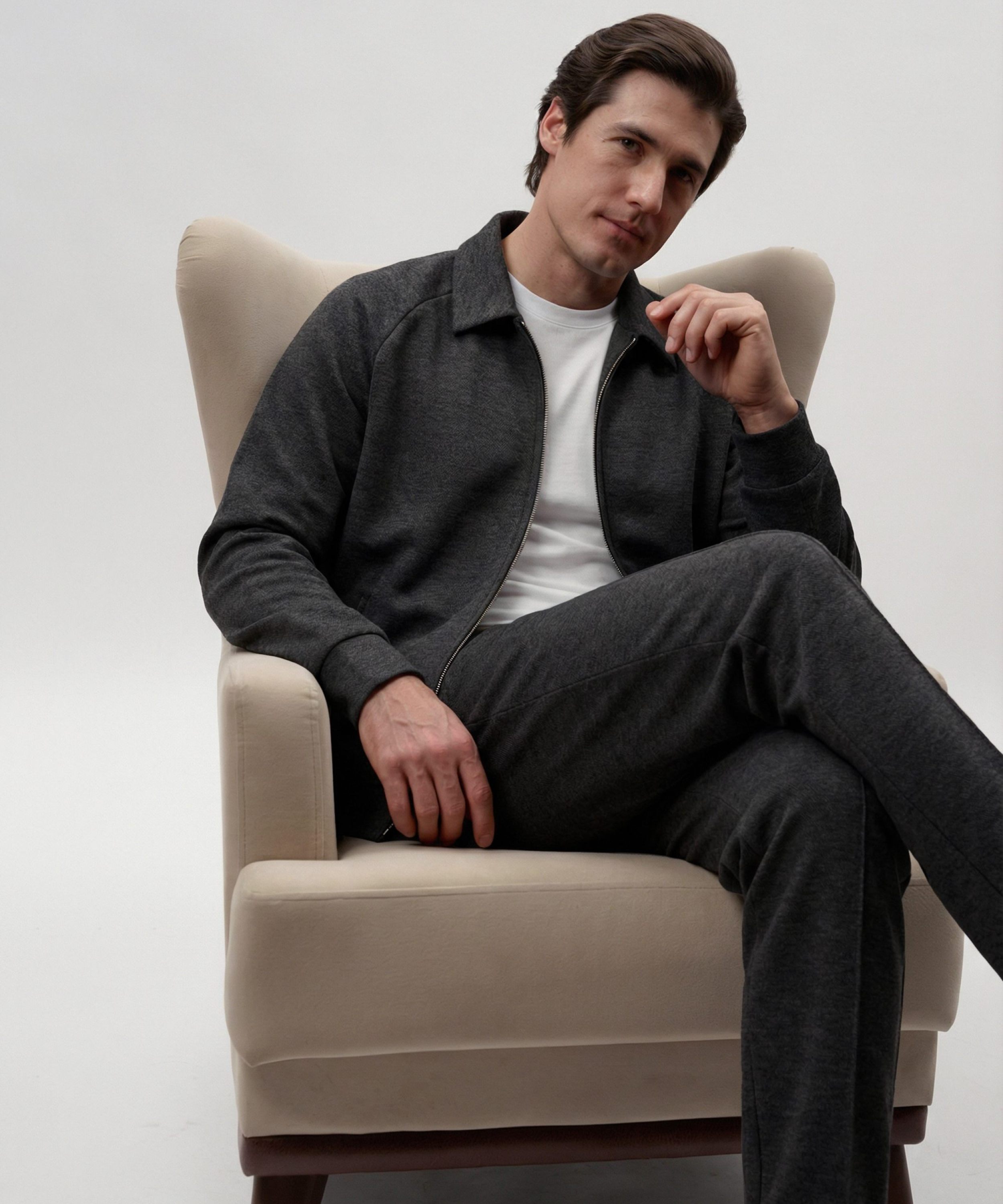 Брюки прямого кроя из коллекции Softwear выполнены из мягкого и теплого материала, в составе которого, преимущественно, вискоза, за счет чего материал гладкий и приятный на ощупь, слегка тянется, но при этом выглядит фактурно. Брюки имеют два боковых кармана на молнии, два задних кармана на кнопках, пояс на резинке и кнопке. К брюкам в ассортименте представлен джемпер "Эхо" SBM4SW31E1-25DRK/MLG86 и SBM4SW31E1-25CHO86. Важно: материал имеет низкую пиллингуемость, но частое соприкосновение с аксессуарами может привести к образованию пилли.