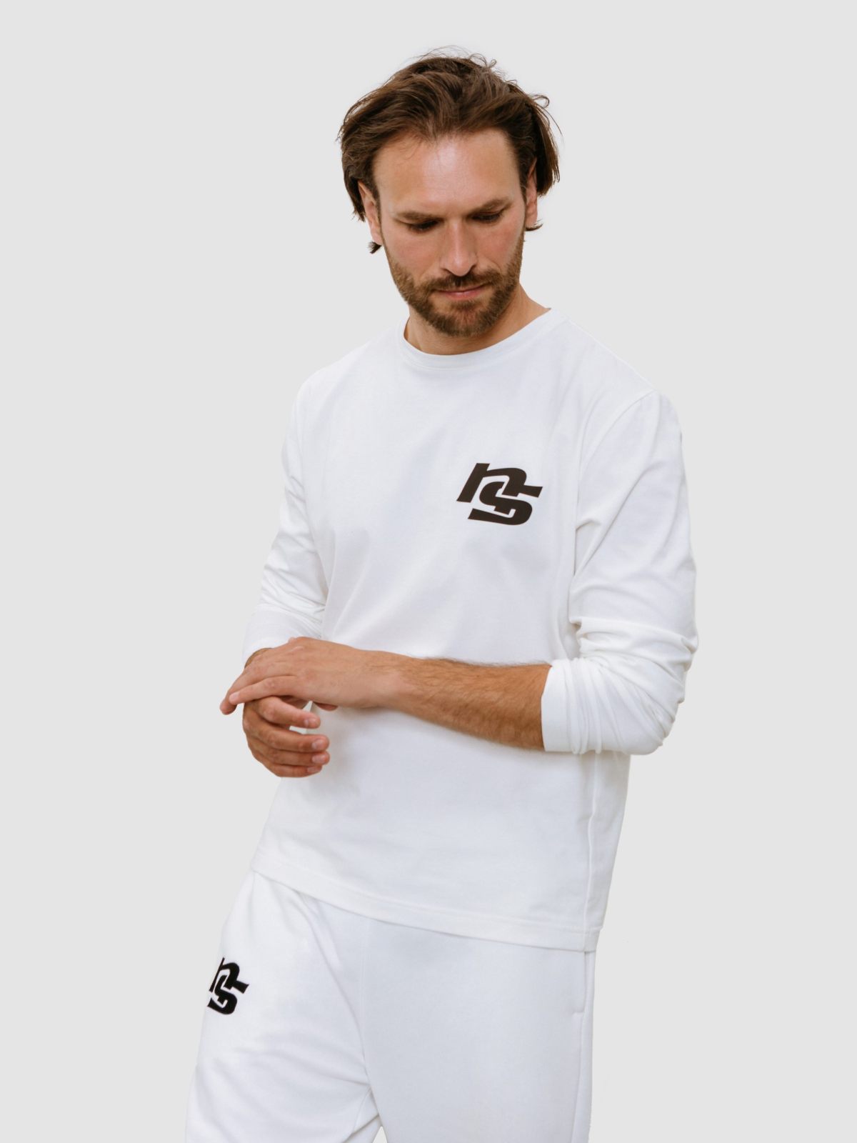 Классический мужской лонгслив прямого силуэта. В составе 95% хлопка и 5% эластана, что обеспечивает отличную посадку и долговечность изделия. На груди расположен стильный контрастный принт-логотип. Представлен в классических цветах - черном и белом. Лонгслив прекрасно дополнит ваш спортивный образ, легко может сочетаться с джинсами и брюками.