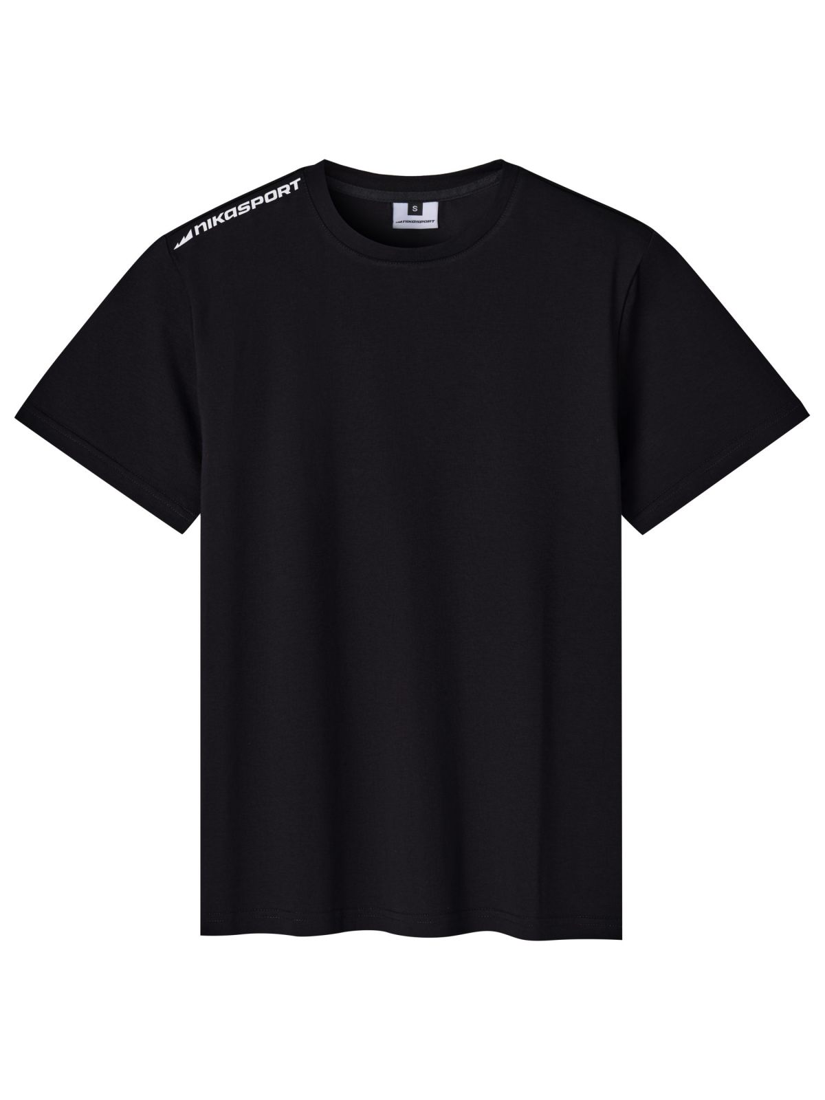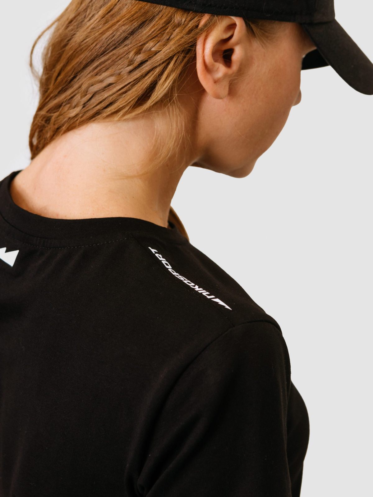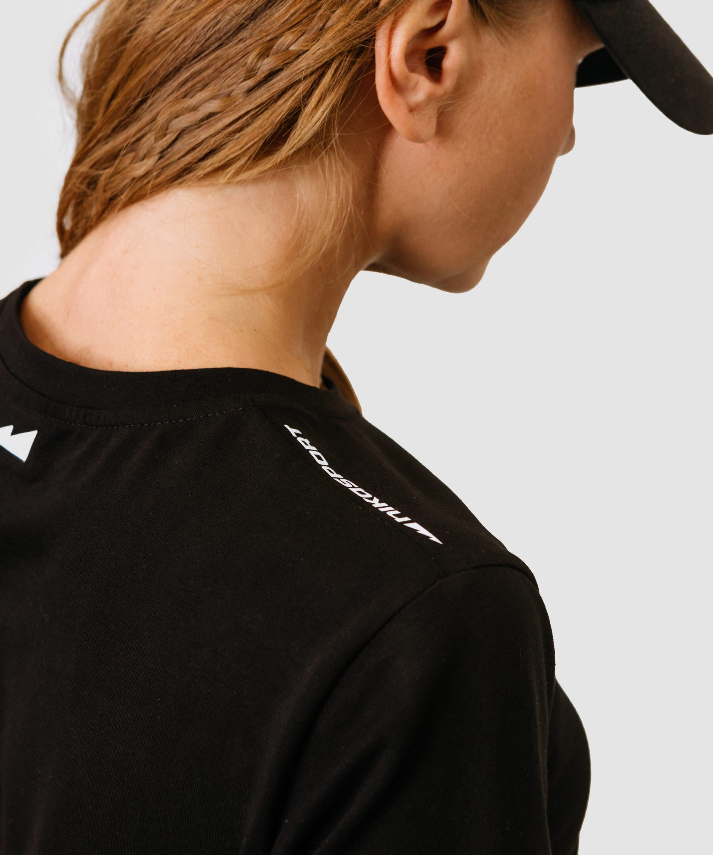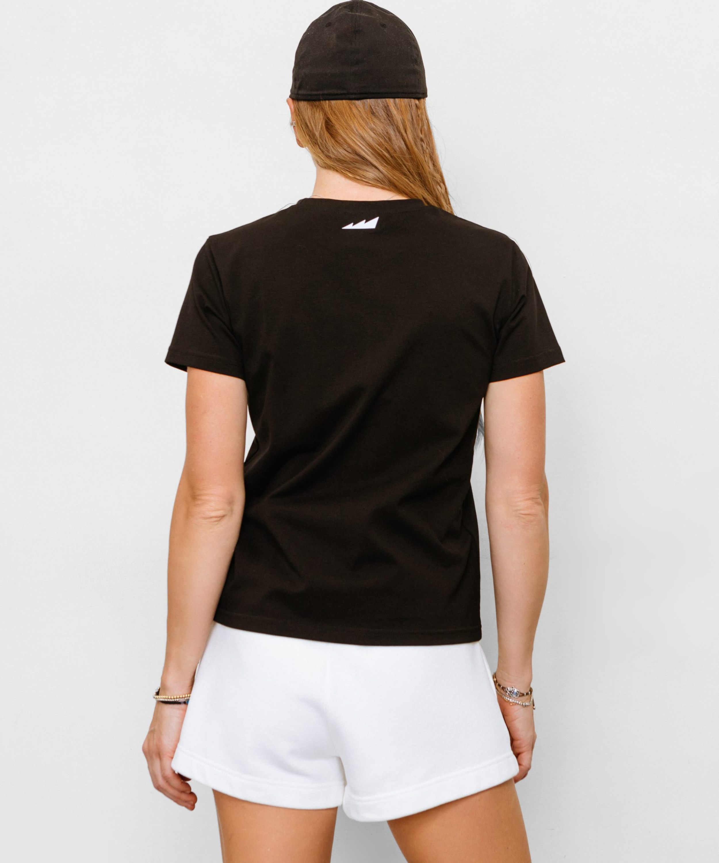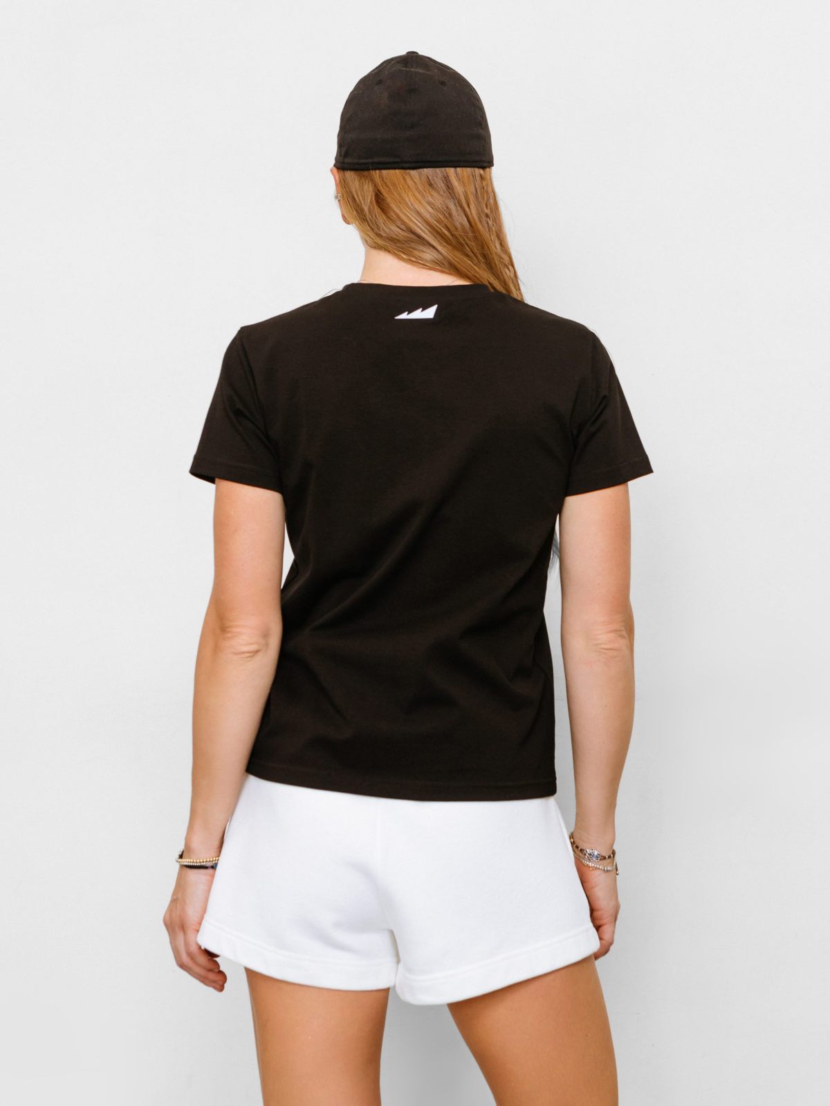 Женская футболка классического силуэта Regular. Выполнена из материала, в составе которого 95% хлопка и 5% эластана, что обеспечивает отличную посадку и долговечность изделия. На спине расположен стильный принт-логотип, а также акцент-принт на плече. Модель представлена в универсальном черном цвете. Легко сочетается как со спортивной так и с повседневной одеждой для создания ваших стильных образов.
