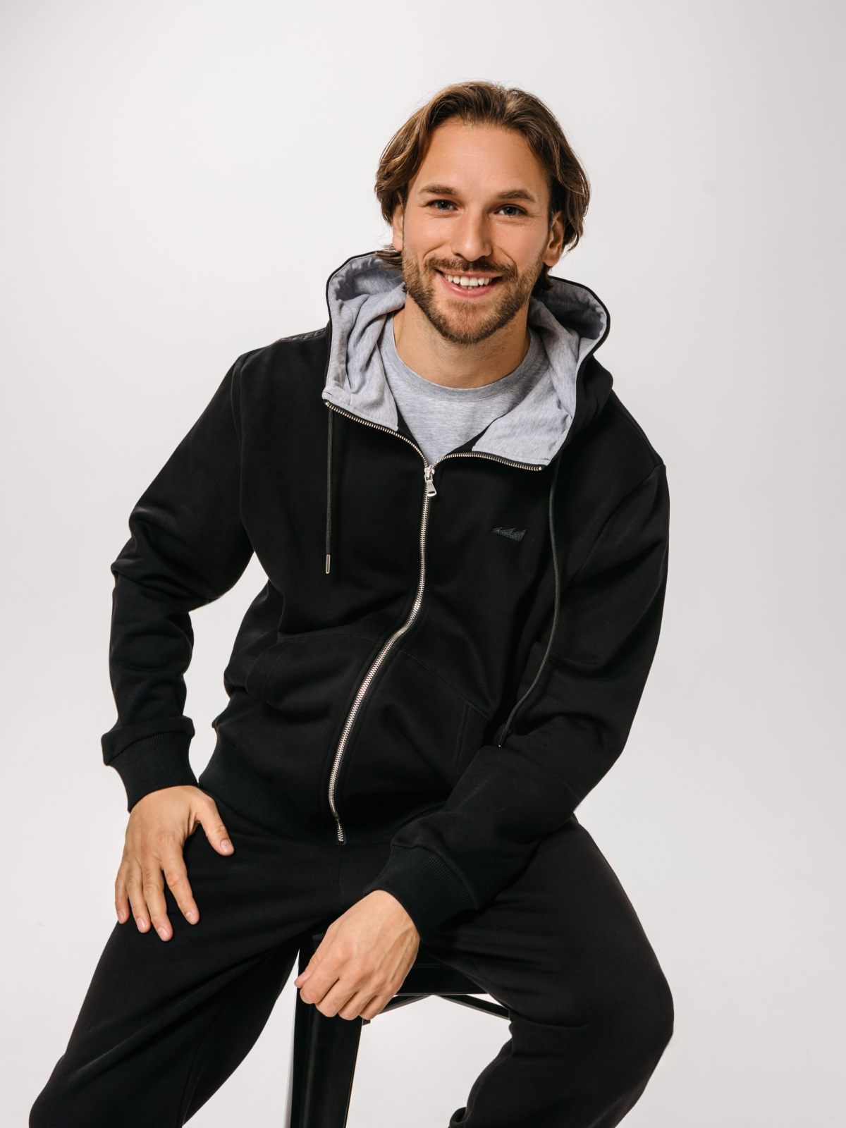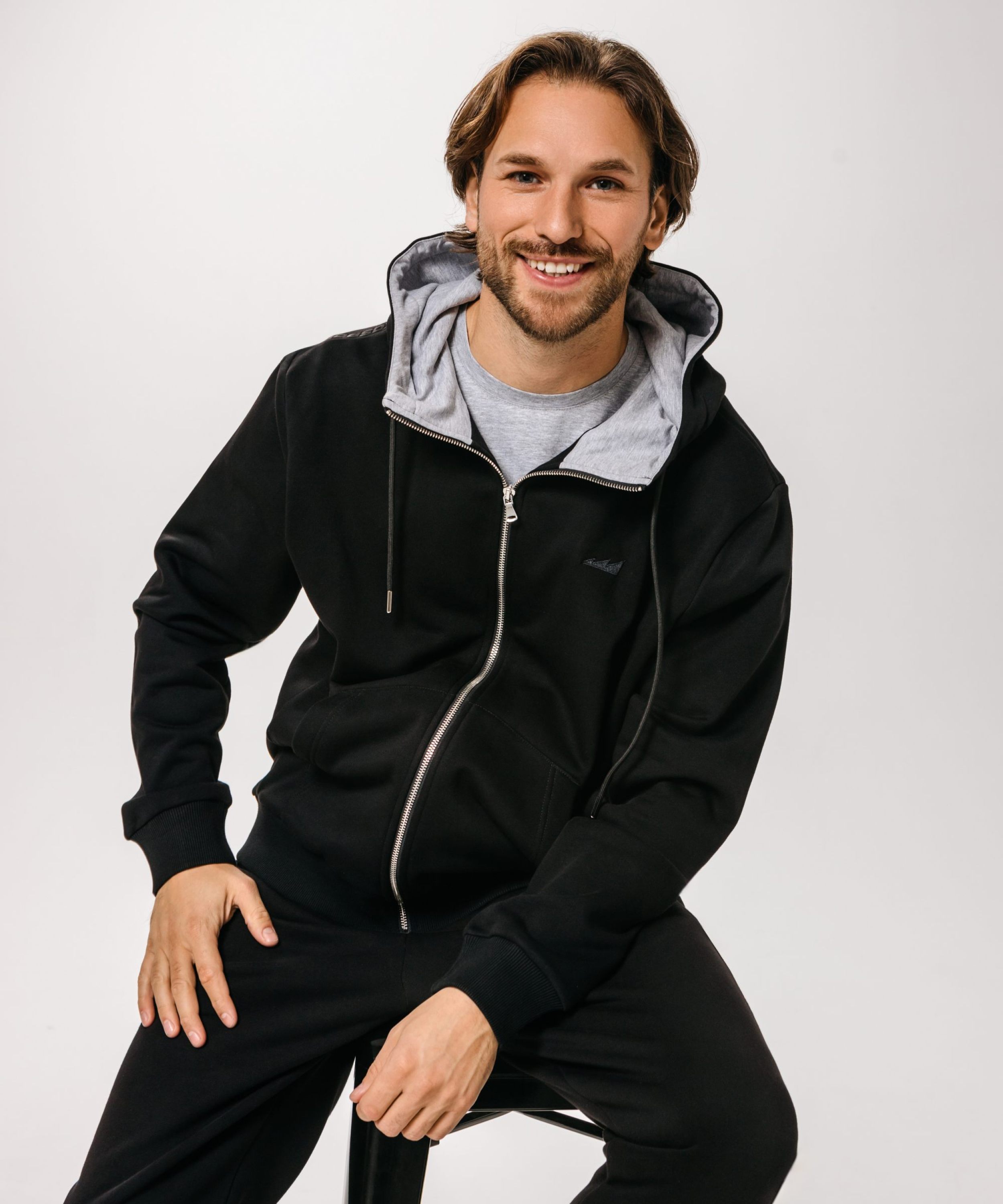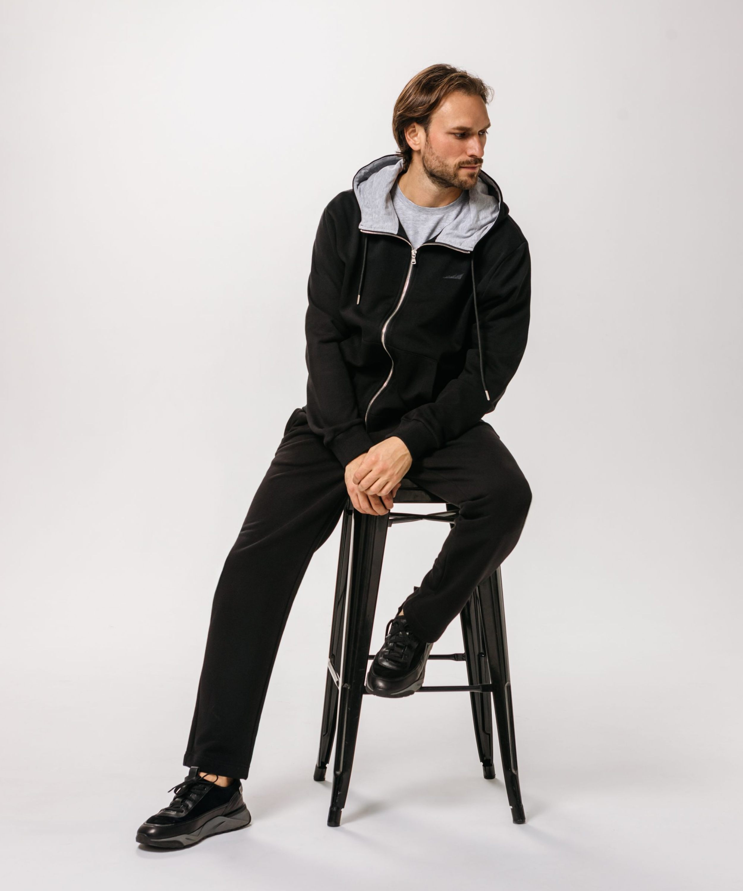 Классическая мужская толстовка, в составе 80% хлопка и 20% полиэстера, что обеспечивает отличную посадку и долговечность изделия. Прямой силуэт, аккуратная тональная вышивка-лого на груди и контрастная подкладка капюшона создают спокойный и уютный повседневный образ. Представлен в универсальном черном цвете. Легко сочетается с джинсами и брюками.