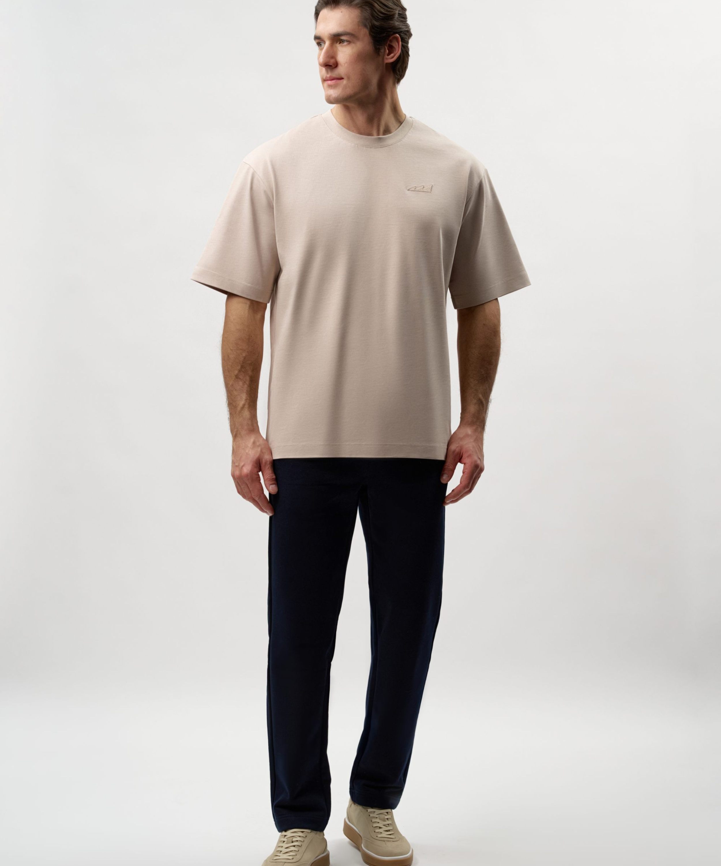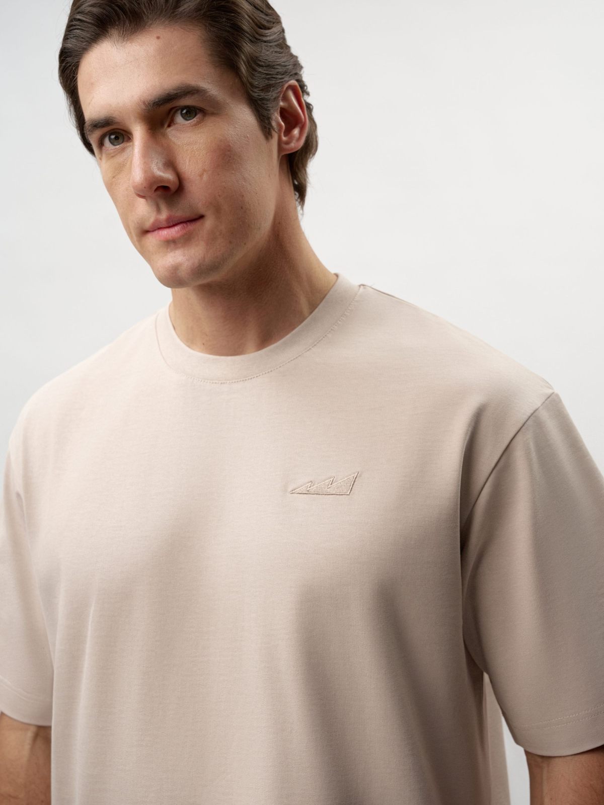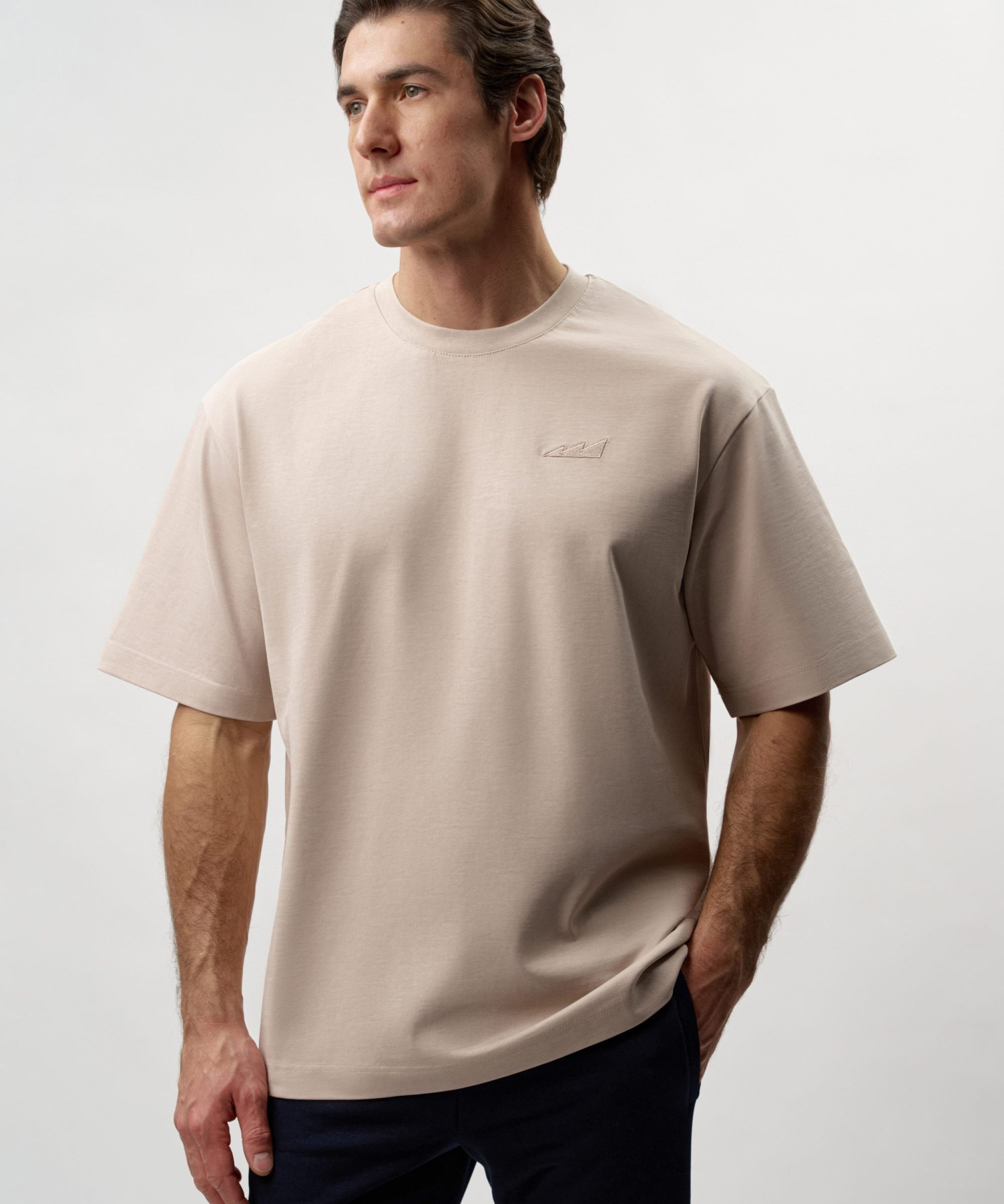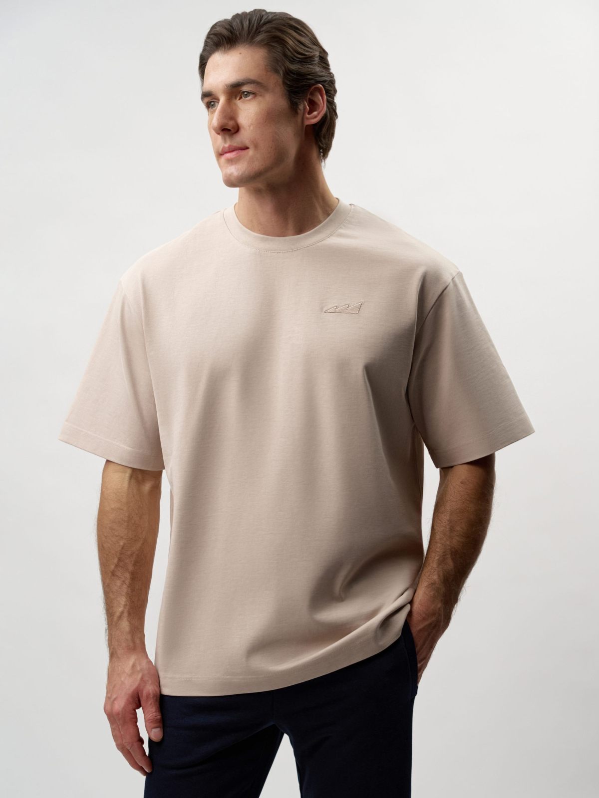 Мужская футболка oversize силуэта. Сделана из плотного хлопка, который держит форму и обеспечивает отличную посадку. У футболки прямой крой, спущенная линия плеча, широкие рукава и тональный логотип-вышивка на передней части изделия слева. Базовая вещь, которая дополнит ваш гардероб и будет прекрасно сочетаться как со спортивной одеждой, так и с классикой, джинсами и другими предметами гардероба.