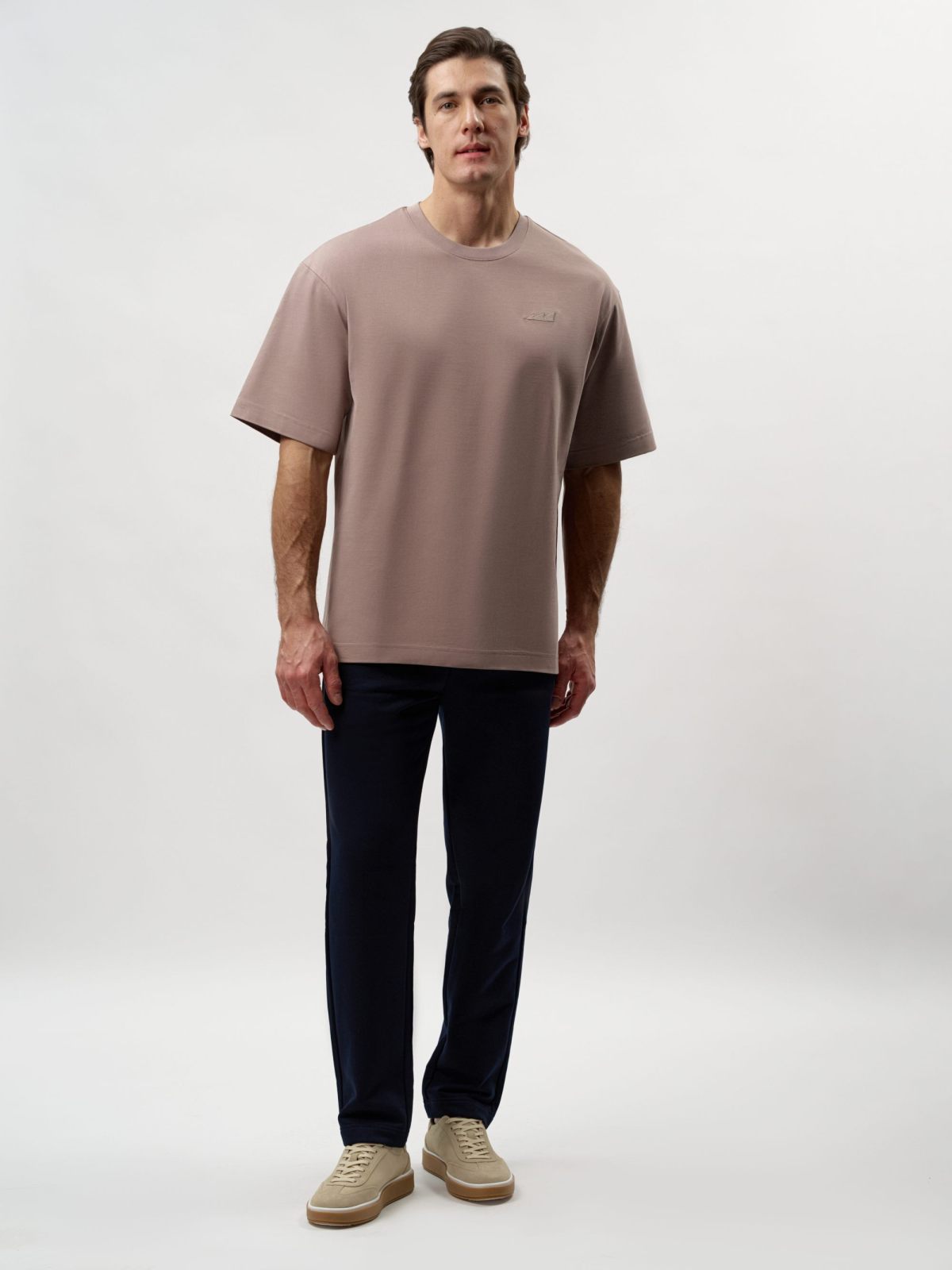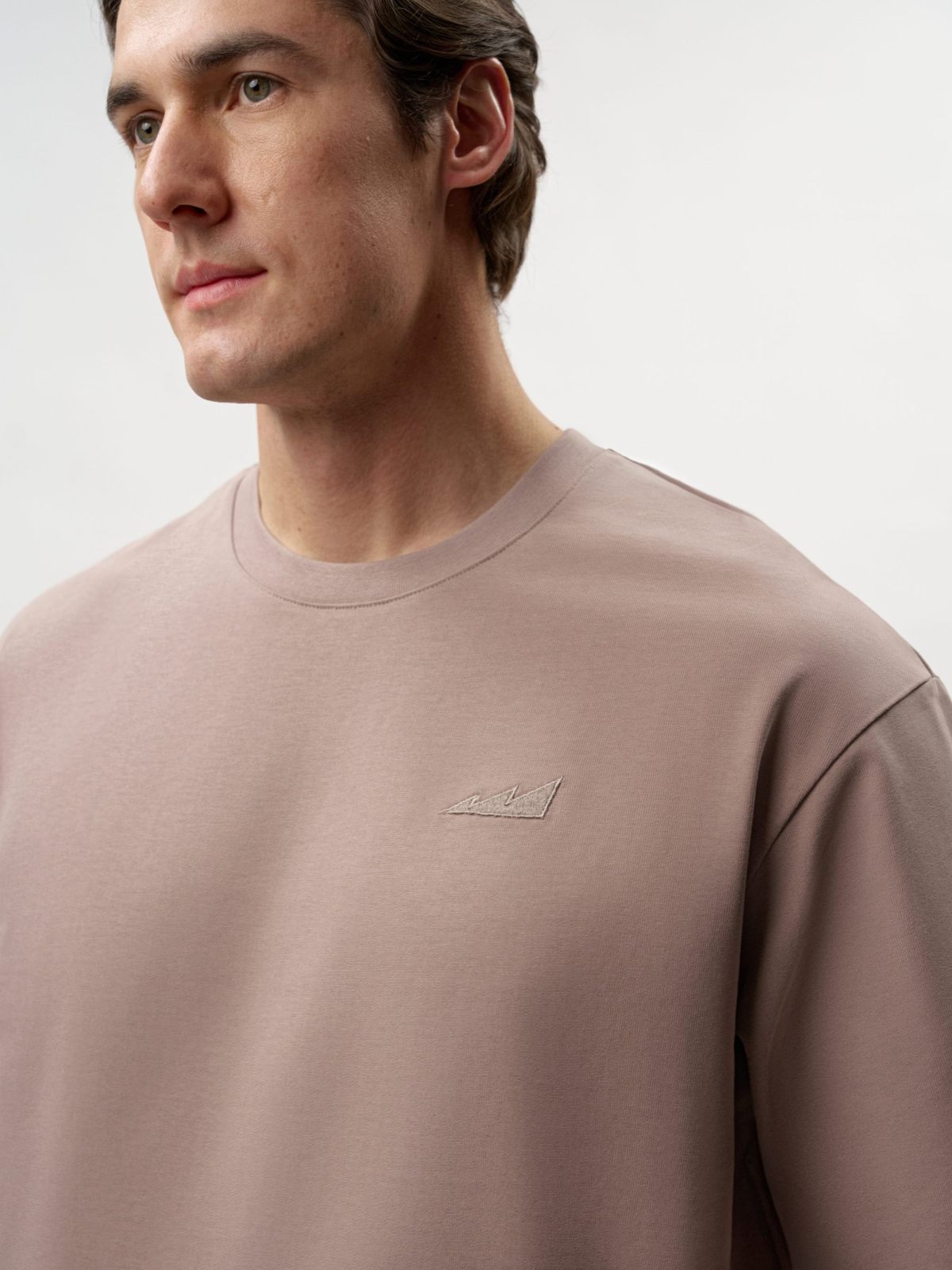 Мужская футболка oversize силуэта. Сделана из плотного хлопка, который держит форму и обеспечивает отличную посадку. У футболки прямой крой, спущенная линия плеча, широкие рукава и тональный логотип-вышивка на передней части изделия слева. Базовая вещь, которая дополнит ваш гардероб и будет прекрасно сочетаться как со спортивной одеждой, так и с классикой, джинсами и другими предметами гардероба.