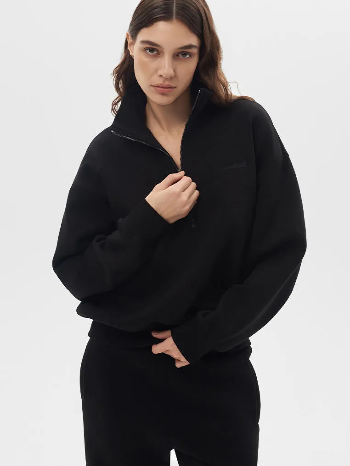 Утепленная женская толстовка свободного кроя Loose. Выполнена из футера с начесом, в составе которого 80% хлопка и 20% полиэстера, что обеспечивает отличную посадку и долговечность изделия. Отличительная особенность модели - воротник-стойка на молнии и тональная вышивка-логотип на груди. Представлена в 3 цветах: классический бежевой, черный и трендовый винный. Свободный силуэт не сковывает движения и позволяет создавать многослойные образы.