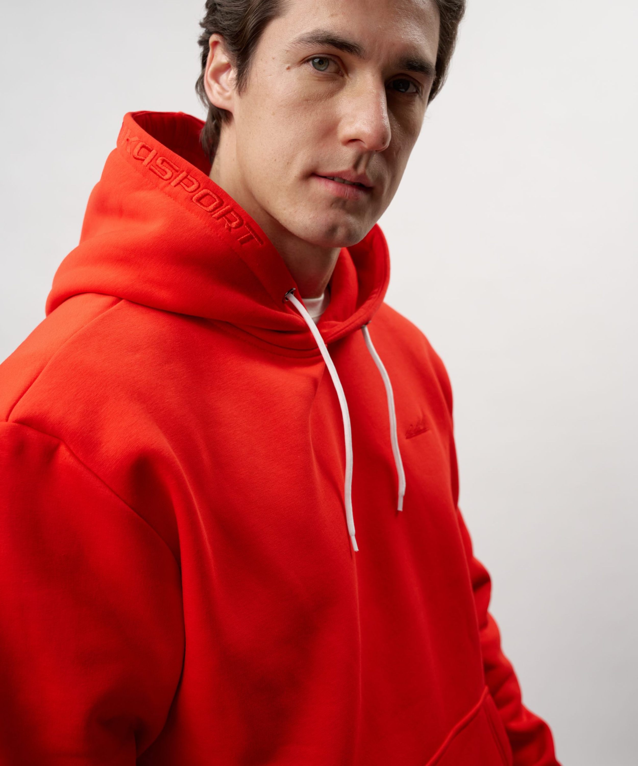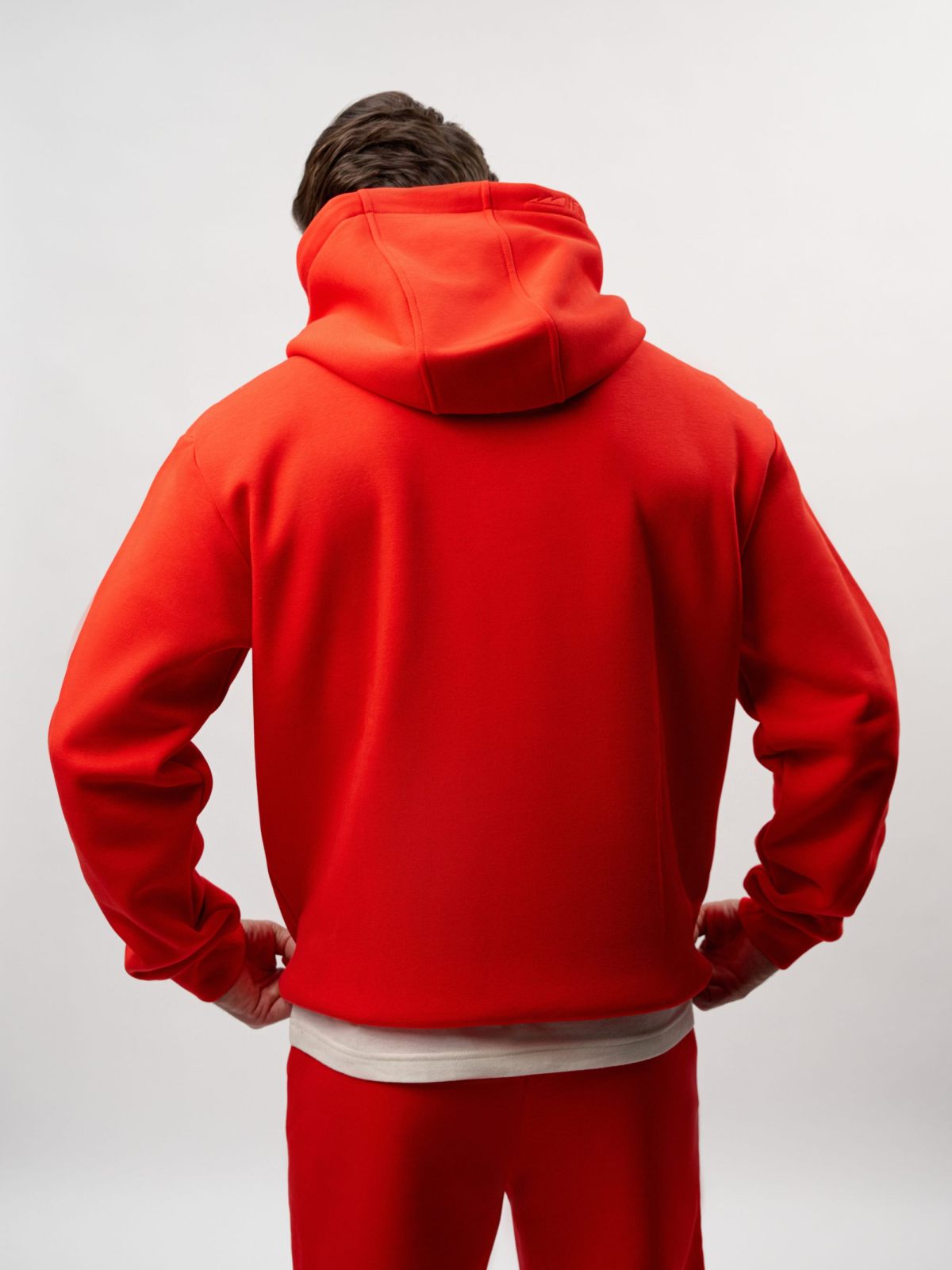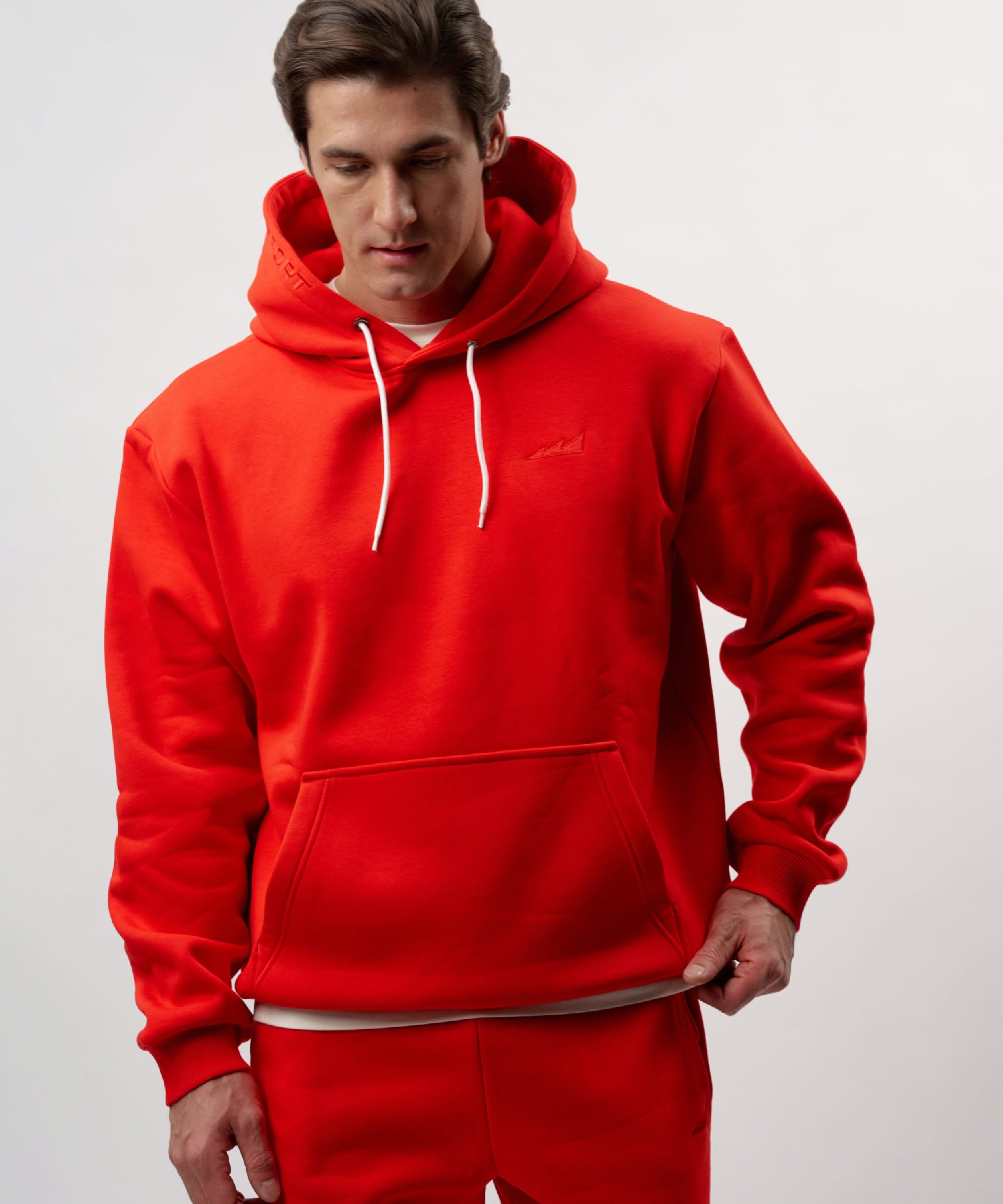 Утепленная толстовка с капюшоном, карманом-кенгуру и спущенным плечом. Выполнена из футера с начесом, в составе которого 80% хлопка и 20% полиэстера, что обеспечивает отличную посадку и долговечность изделия. Модель создана для повседневных образов в спортивном стиле. На груди и на капюшоне расположен тональный логотип-вышивка. Свободный силуэт не сковывает движения и позволяет создавать многослойные образы. Сделано в Москве.