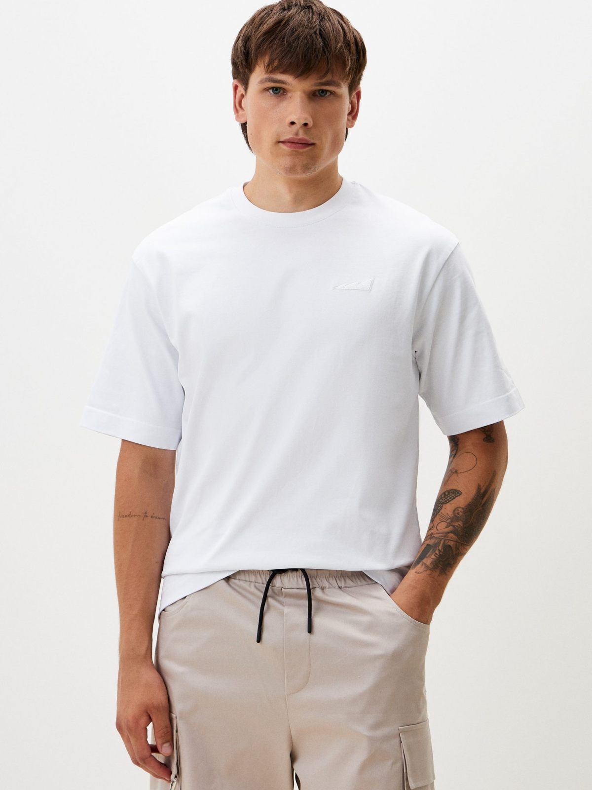 Мужская футболка oversize силуэта. Сделана из плотного хлопка, который держит форму и обеспечивает отличную посадку. У футболки прямой крой, спущенная линия плеча, широкие рукава и тональный логотип-вышивка на передней части изделия слева. Базовая вещь, которая дополнит ваш гардероб и будет прекрасно сочетаться как со спортивной одеждой, так и с классикой, джинсами и другими предметами гардероба.