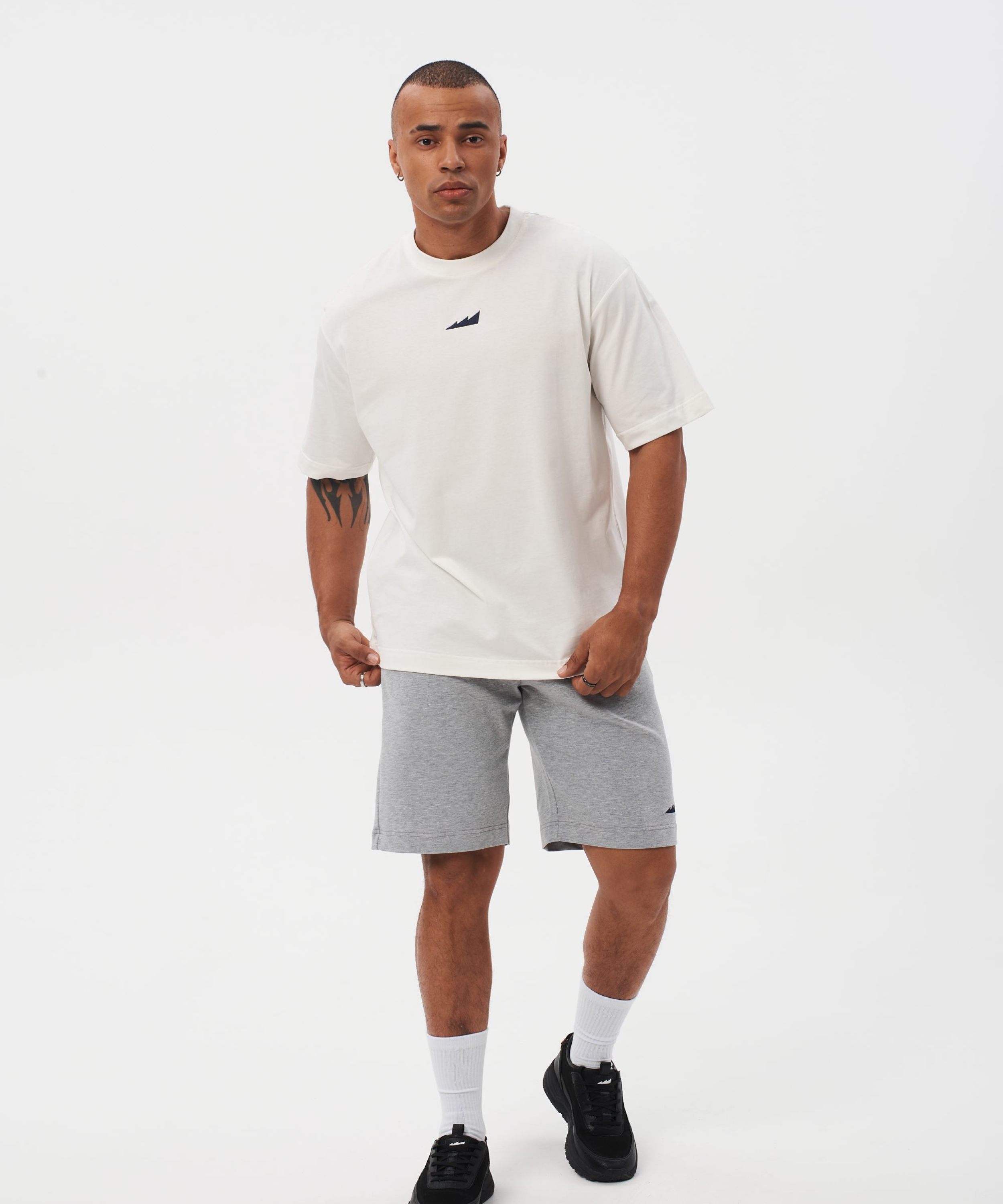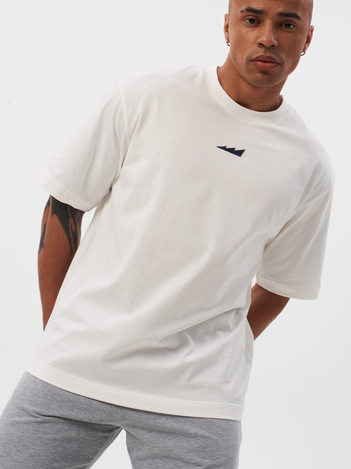 Мужская футболка oversize силуэта. Сделана из 100% плотного хлопка - гипоаллергенного материала, отлично пропускающего воздух. Спущенная линия плеча и контрастные лого-принты создают спокойный повседневный образ. Футболка представлена в классическом белом цвете и отлично сочетается как со спортивным, так и с повседневным стилем.