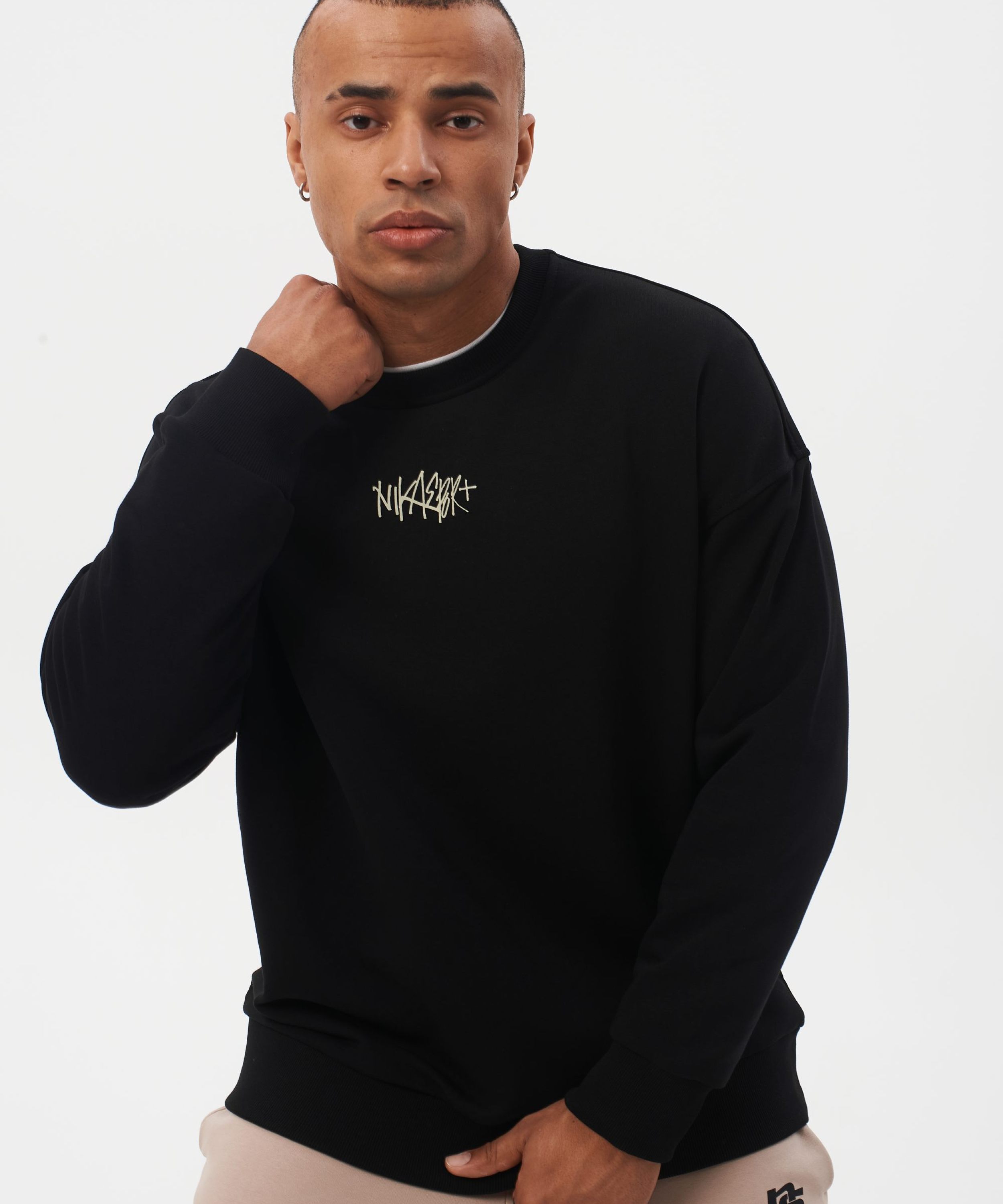 Мужской свитшот свободного силуэта. Выполнен из материала, в составе которого 90% хлопка и 10% полиэстера, что обеспечивает отличную посадку и долговечность изделия. Спущенная линия плеча и стильный графити-принт во всю спину делают свитшот заметным и молодежным. Представлен в классическом черном, а также в актуальных летних цветах - мята и ваниль. Прекрасное дополнение как к спортивному, так и к повседневному образу