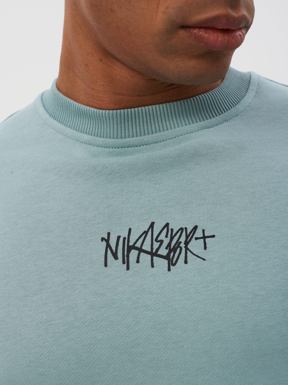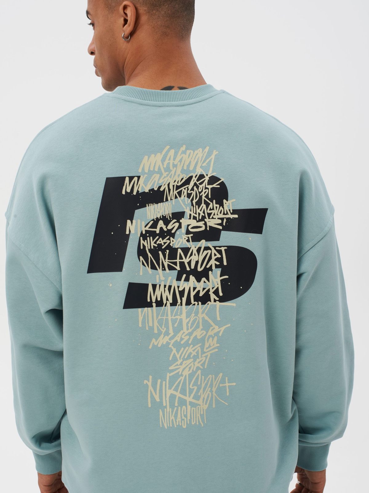 Мужской свитшот свободного силуэта. Выполнен из материала, в составе которого 90% хлопка и 10% полиэстера, что обеспечивает отличную посадку и долговечность изделия. Спущенная линия плеча и стильный граффити-принт во всю спину делают свитшот заметным и молодежным. Представлен в классическом черном, а также в актуальных летних цветах - мята и ваниль. Прекрасное дополнение как к спортивному, так и к повседневному образу